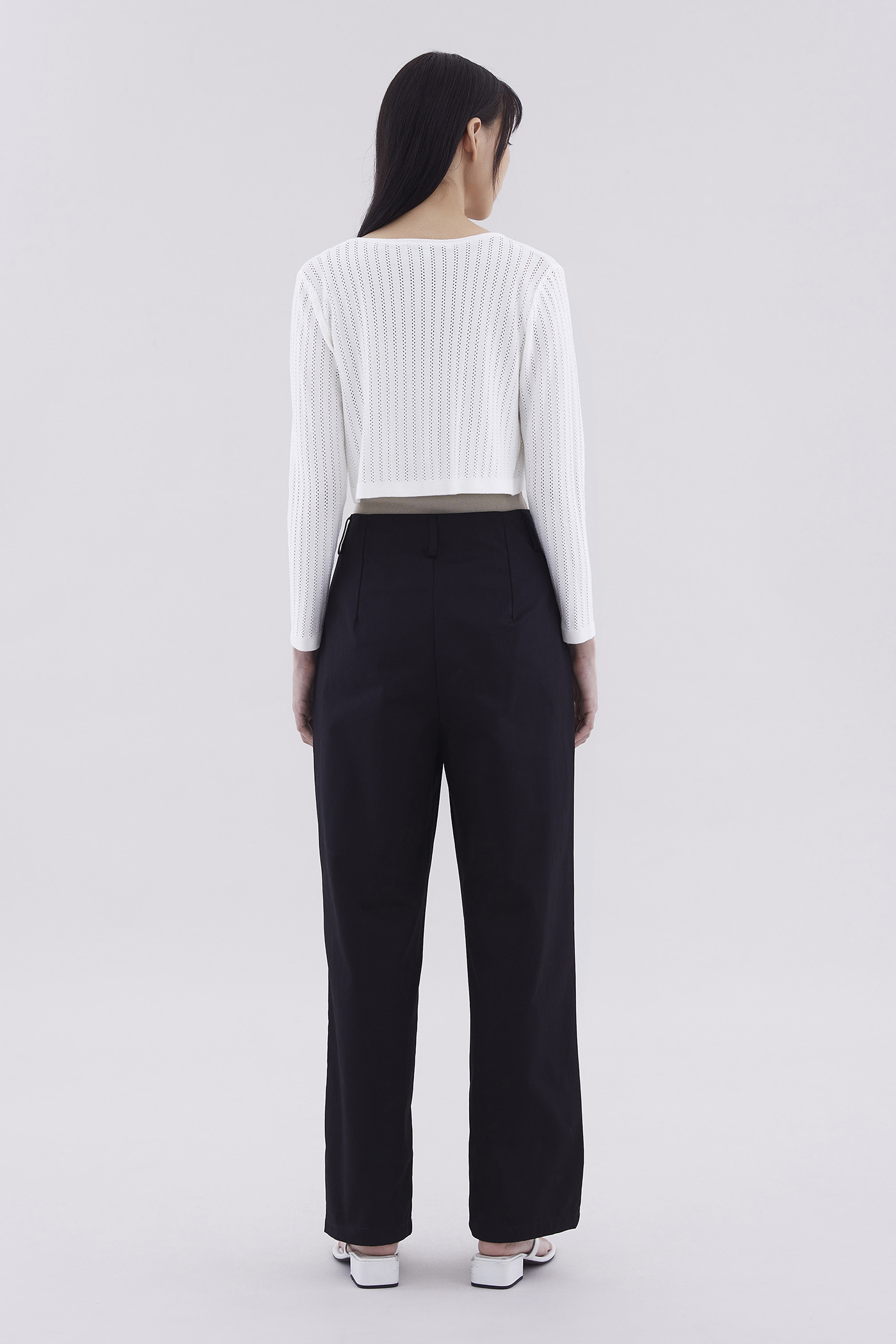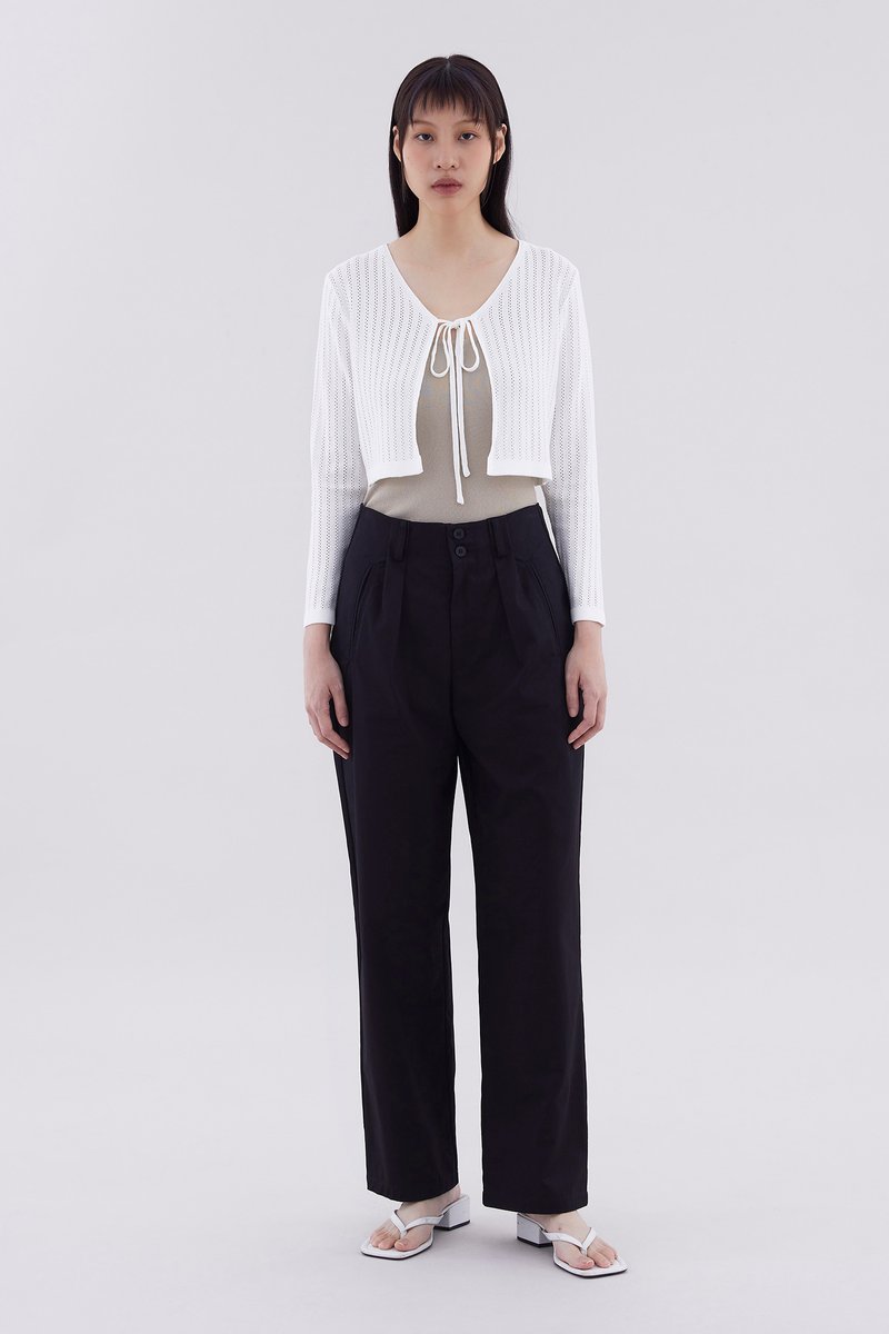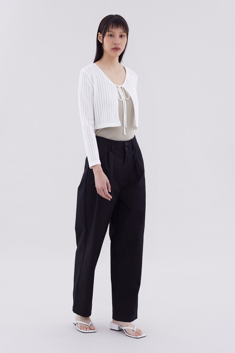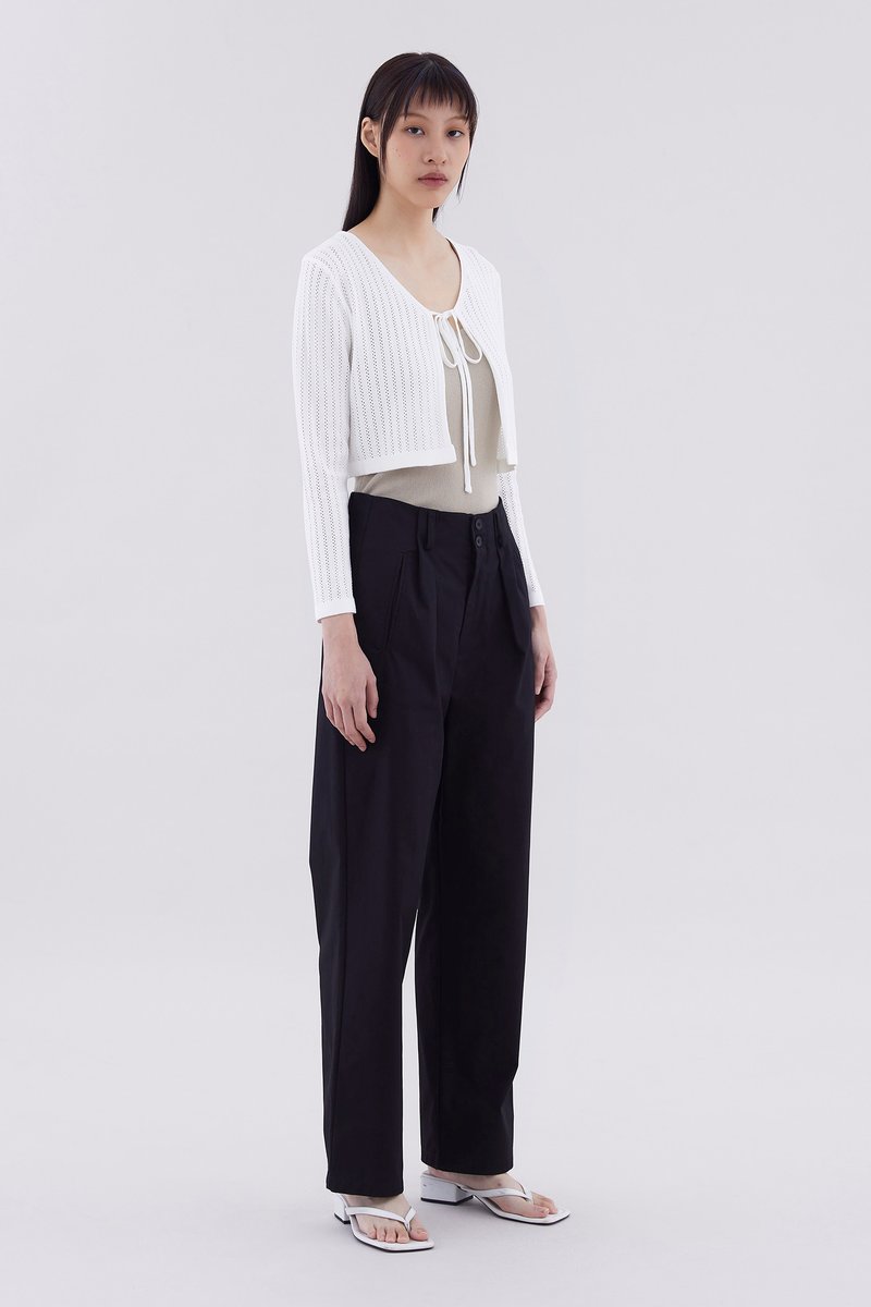 Wear the pants. Made from non-sheer and softly structured cotton, these high-rise pants feature wide straight legs, a seamless waistband with belt loops, front pleats, and a double-button and zip closure. Worn in a relaxed fit.