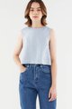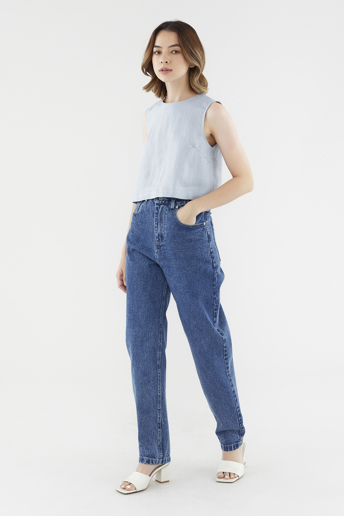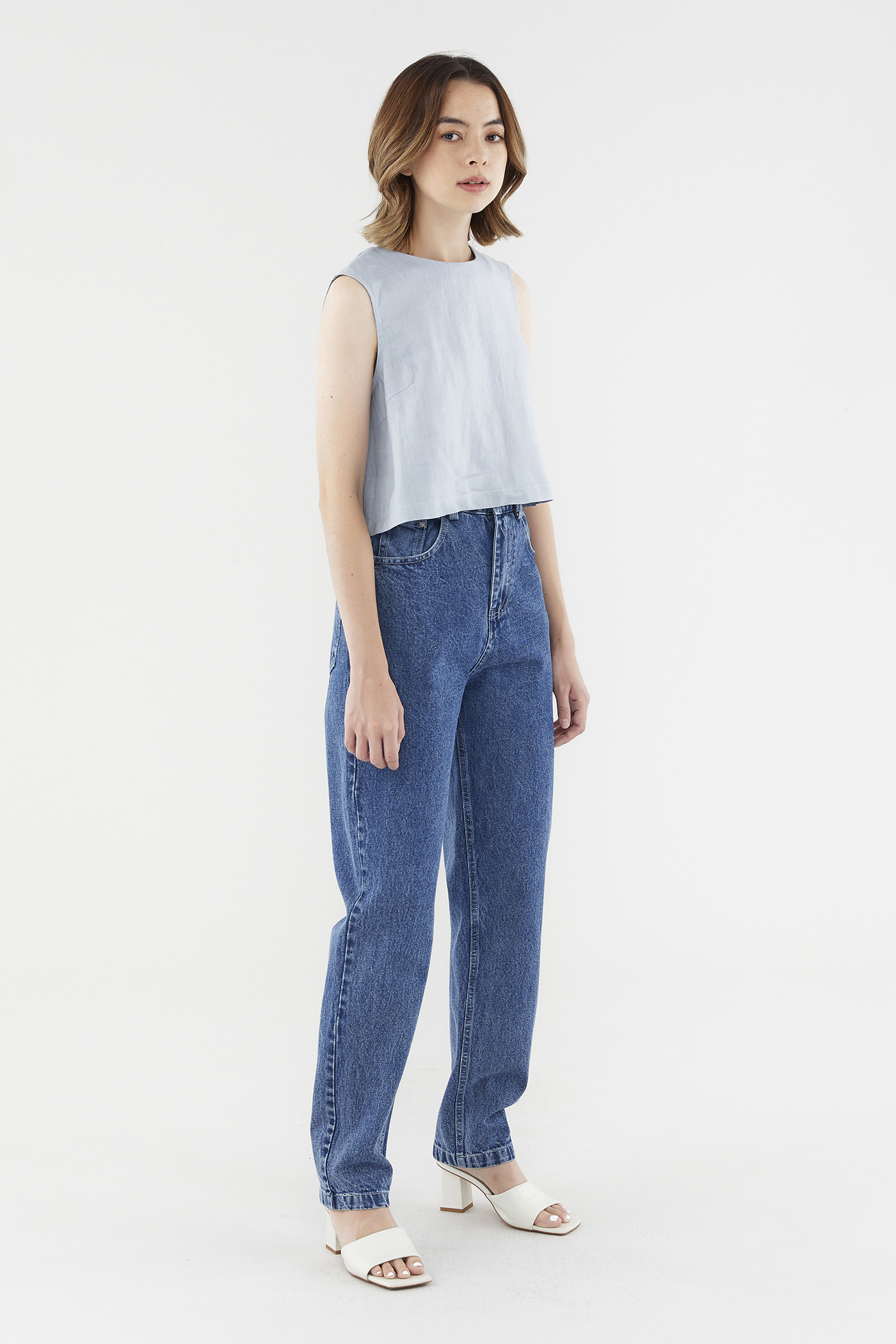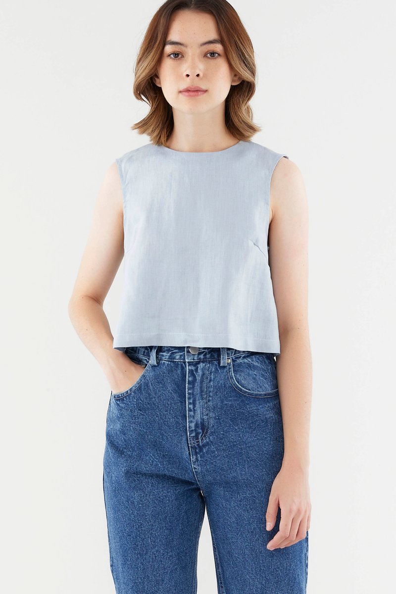 Comfort is key. Stay cool in this sleeveless, round-neckline top made from lightweight and unlined linen. Worn in a relaxed fit and cropped length. Nude undergarments are recommended for lighter colour options.