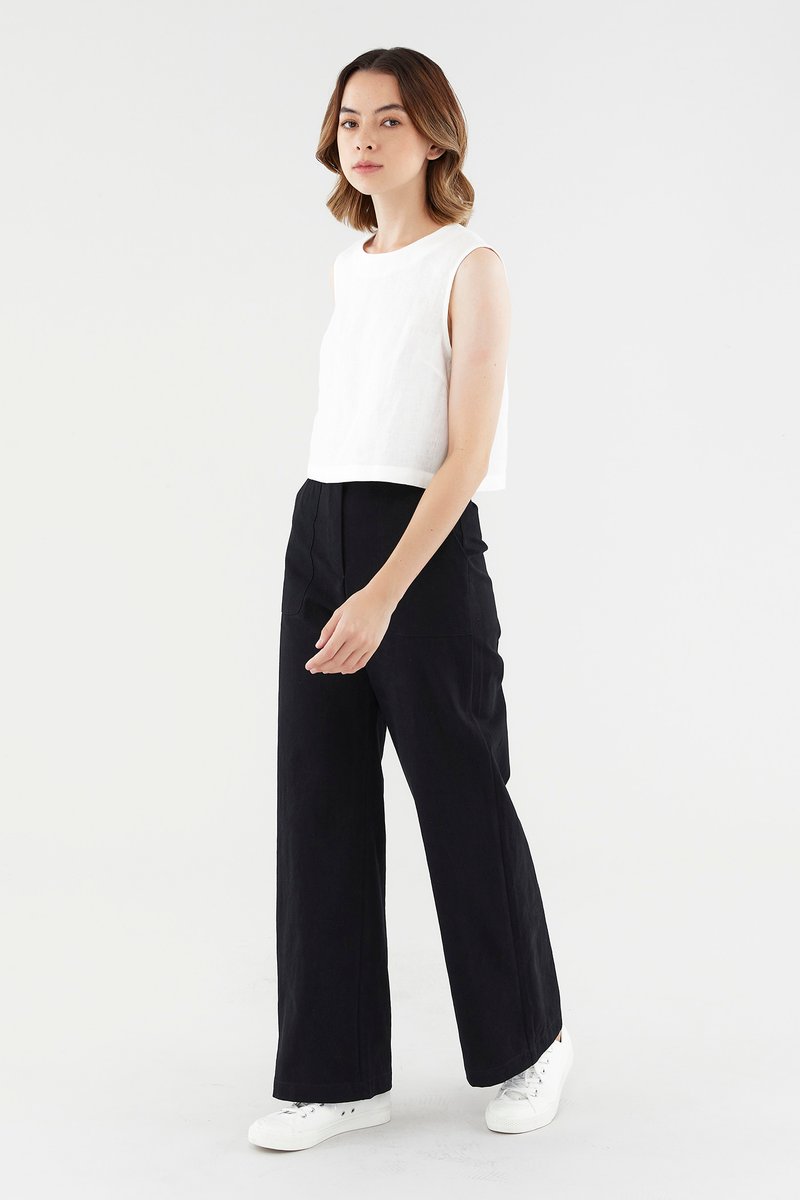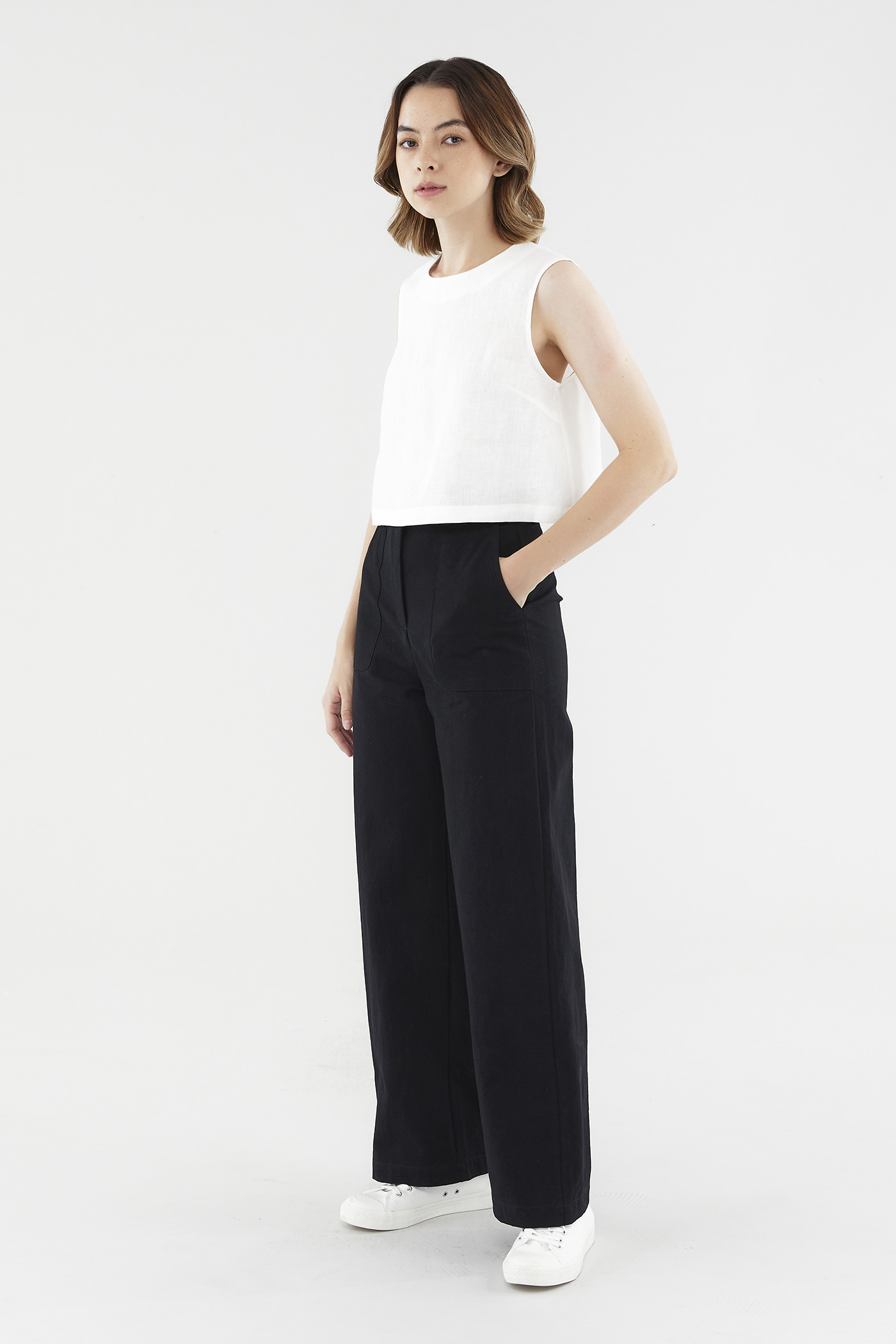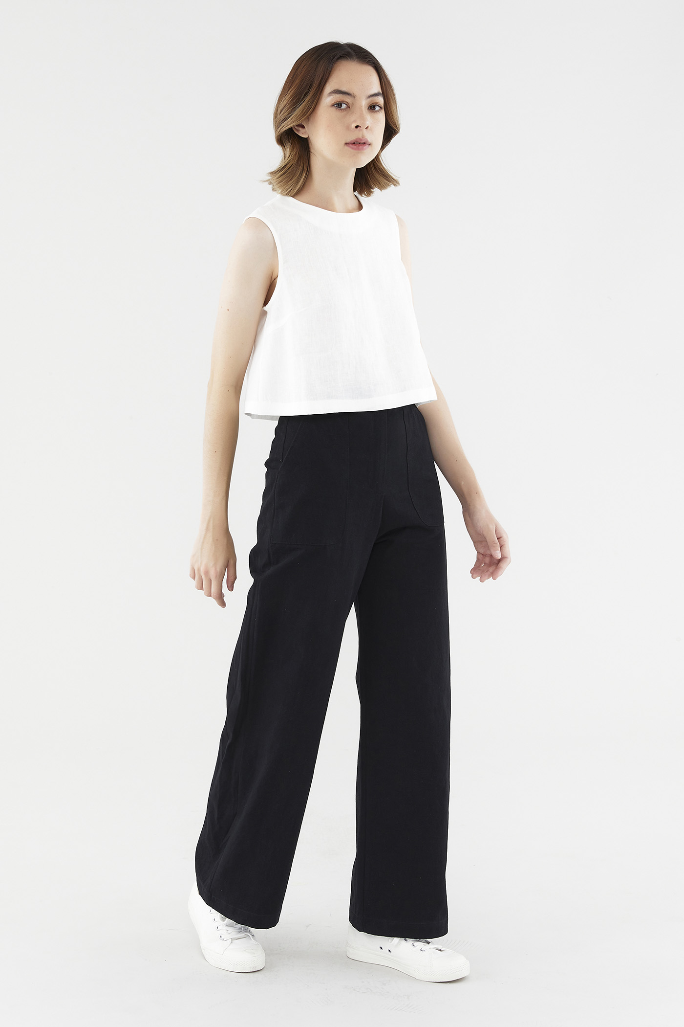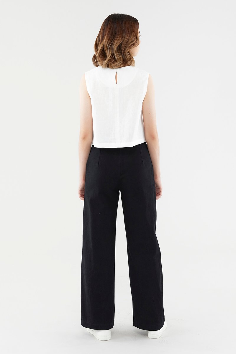 Comfort is key. Stay cool in this sleeveless, round-neckline top made from lightweight and unlined linen. Worn in a relaxed fit and cropped length. Nude undergarments are recommended for lighter colour options.