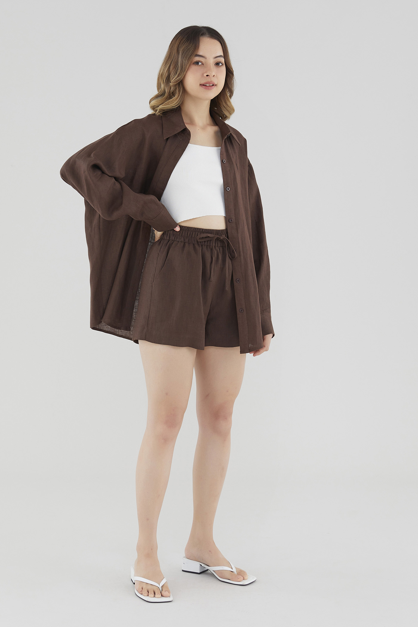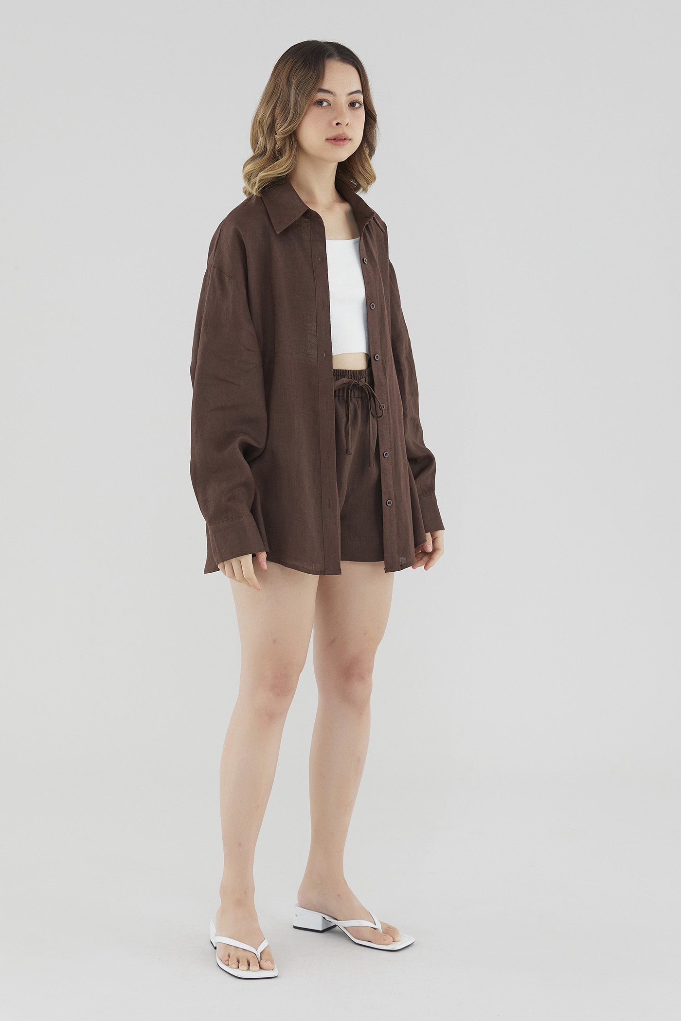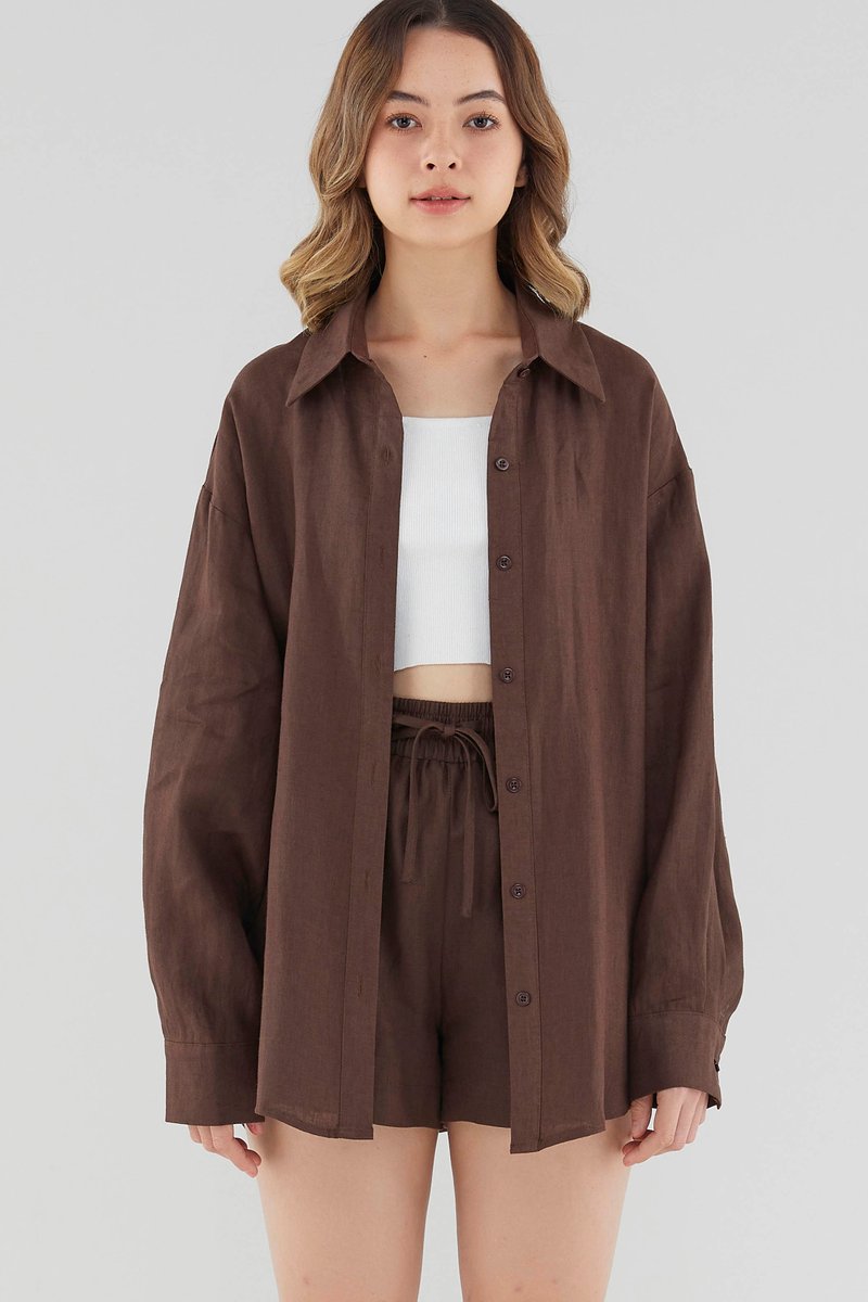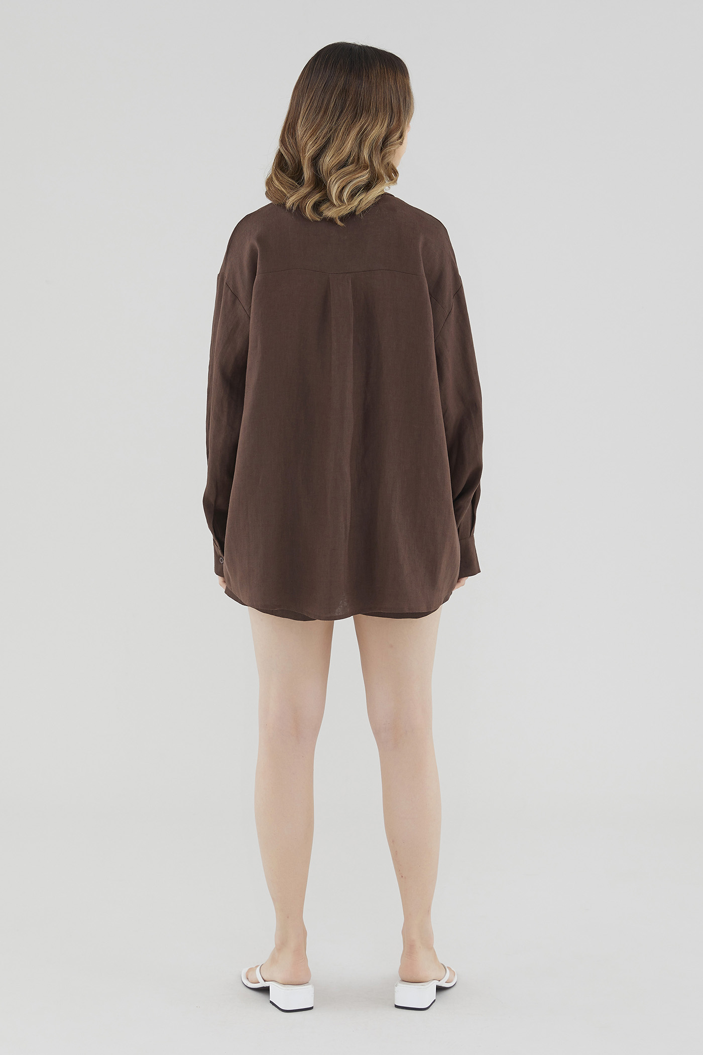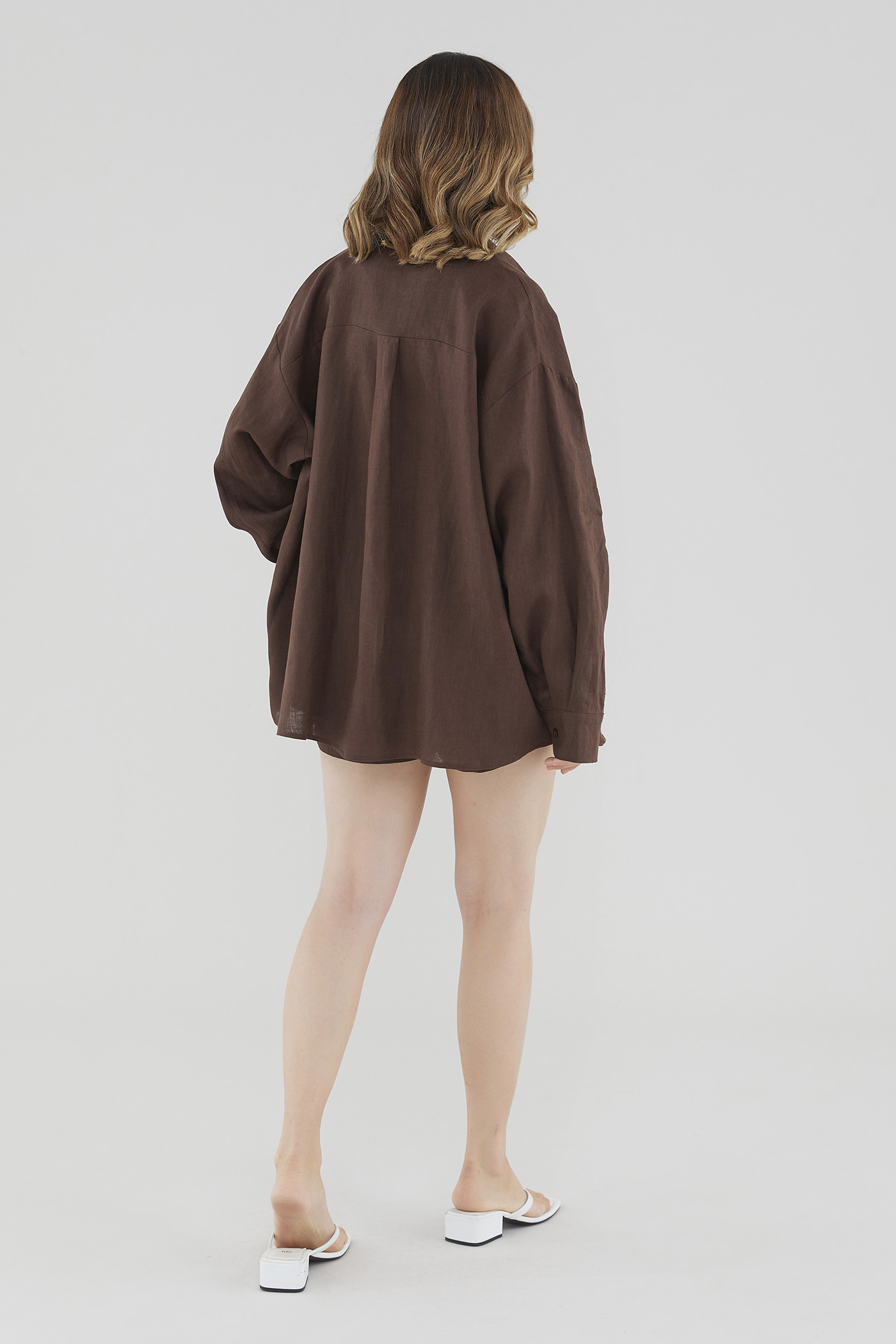 A true staple. Cut from airy and non-stretch 100% linen, this long-sleeved shirt is styled with a front button-down closure, buttoned sleeve hems and a pleat on the back. Worn in a relaxed, oversized fit.