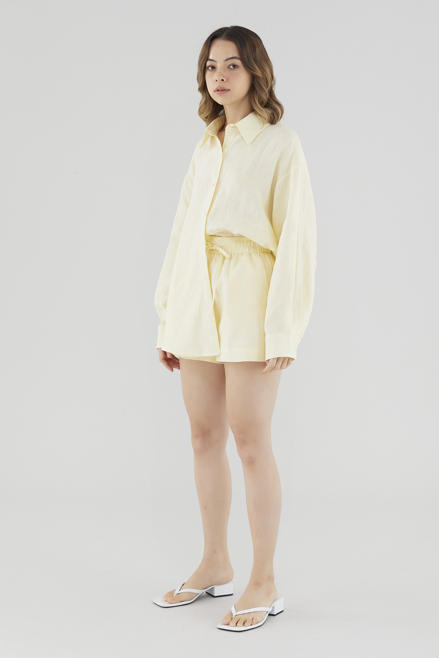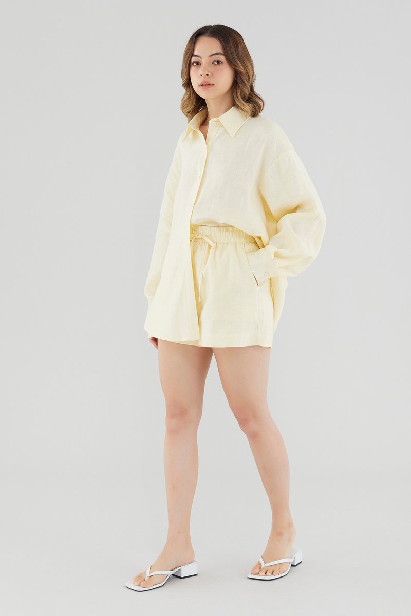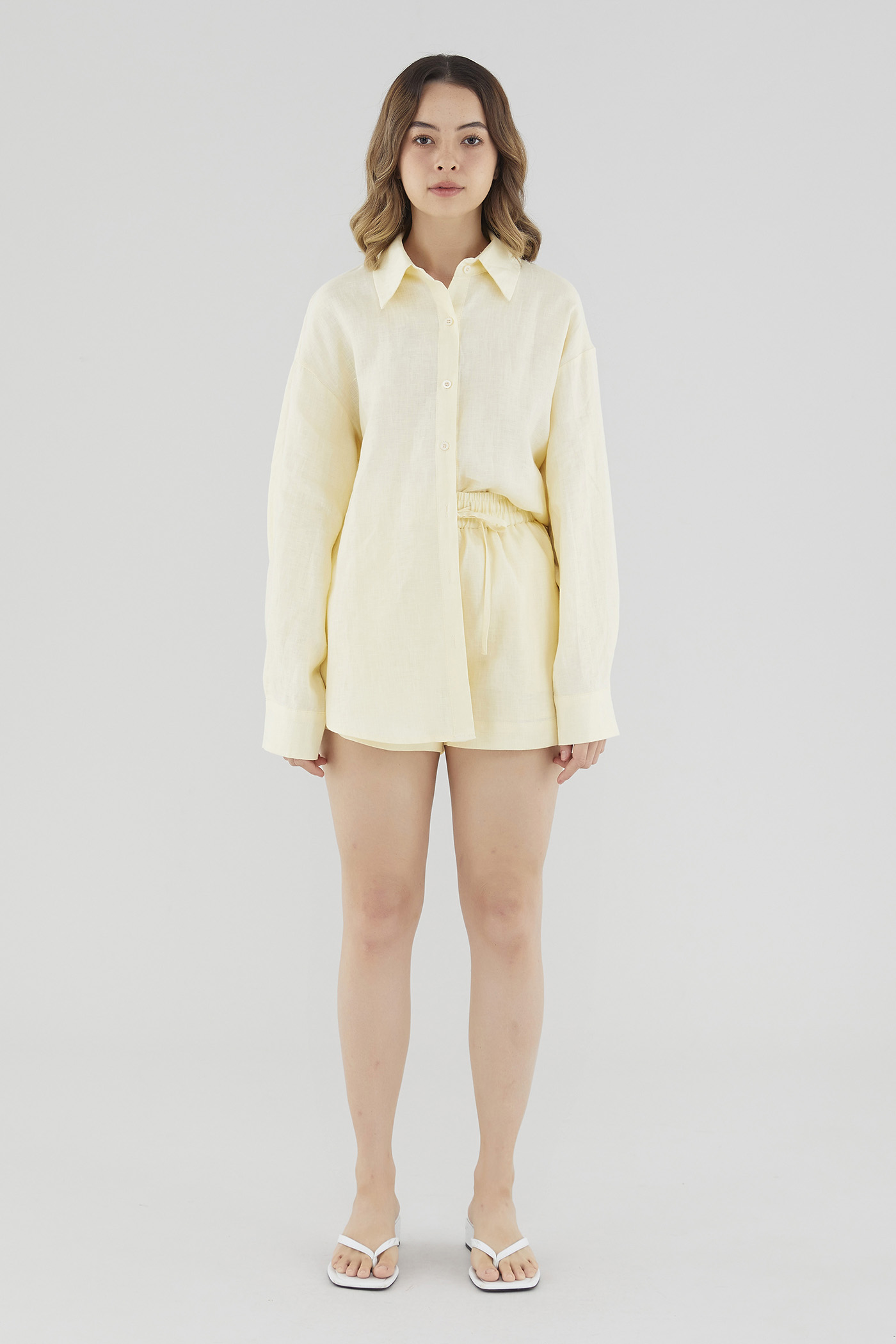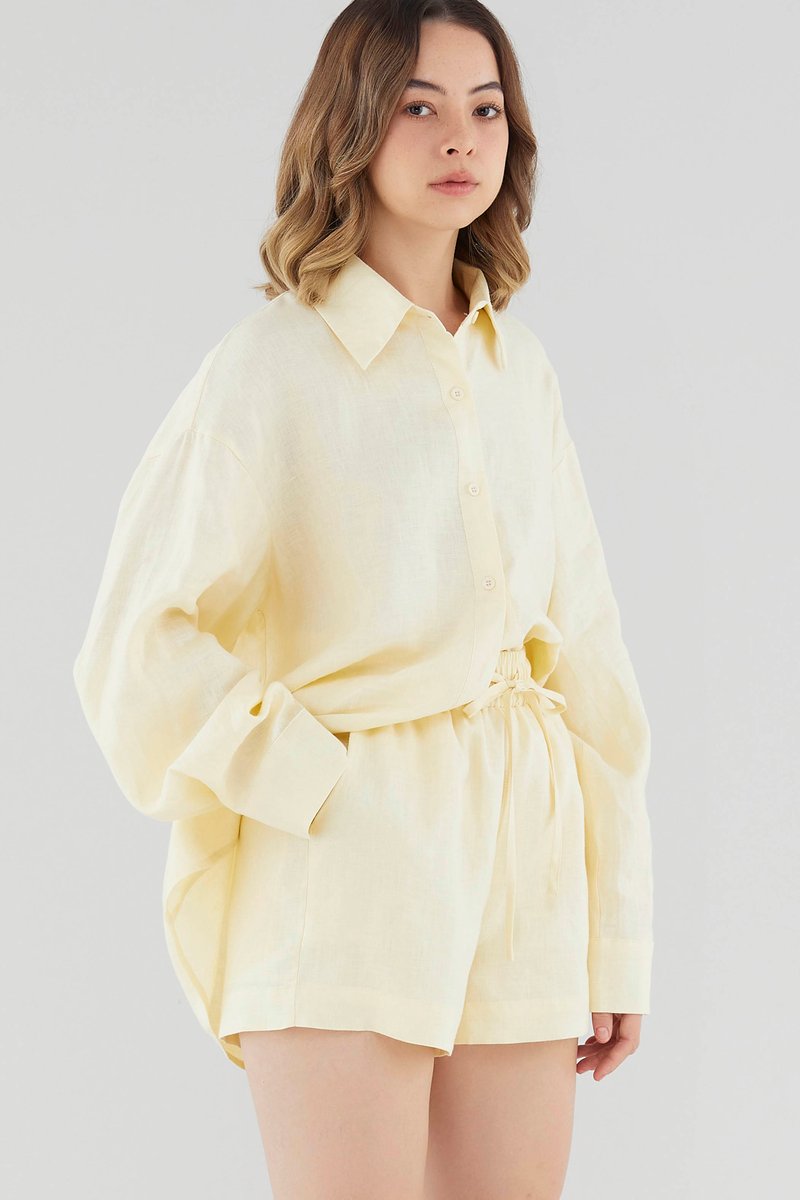 A true staple. Cut from airy and non-stretch 100% linen, this long-sleeved shirt is styled with a front button-down closure, buttoned sleeve hems and a pleat on the back. Worn in a relaxed, oversized fit.