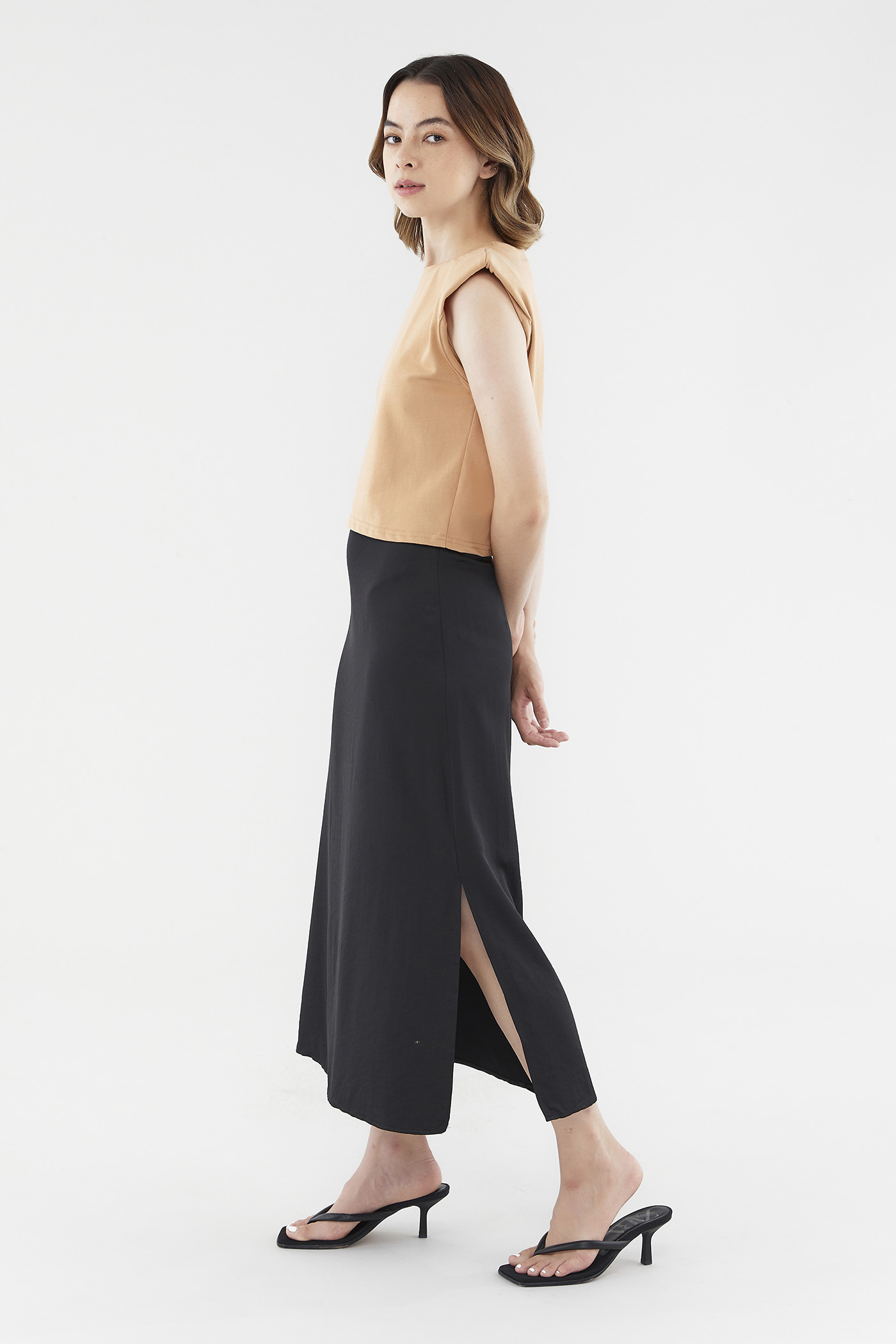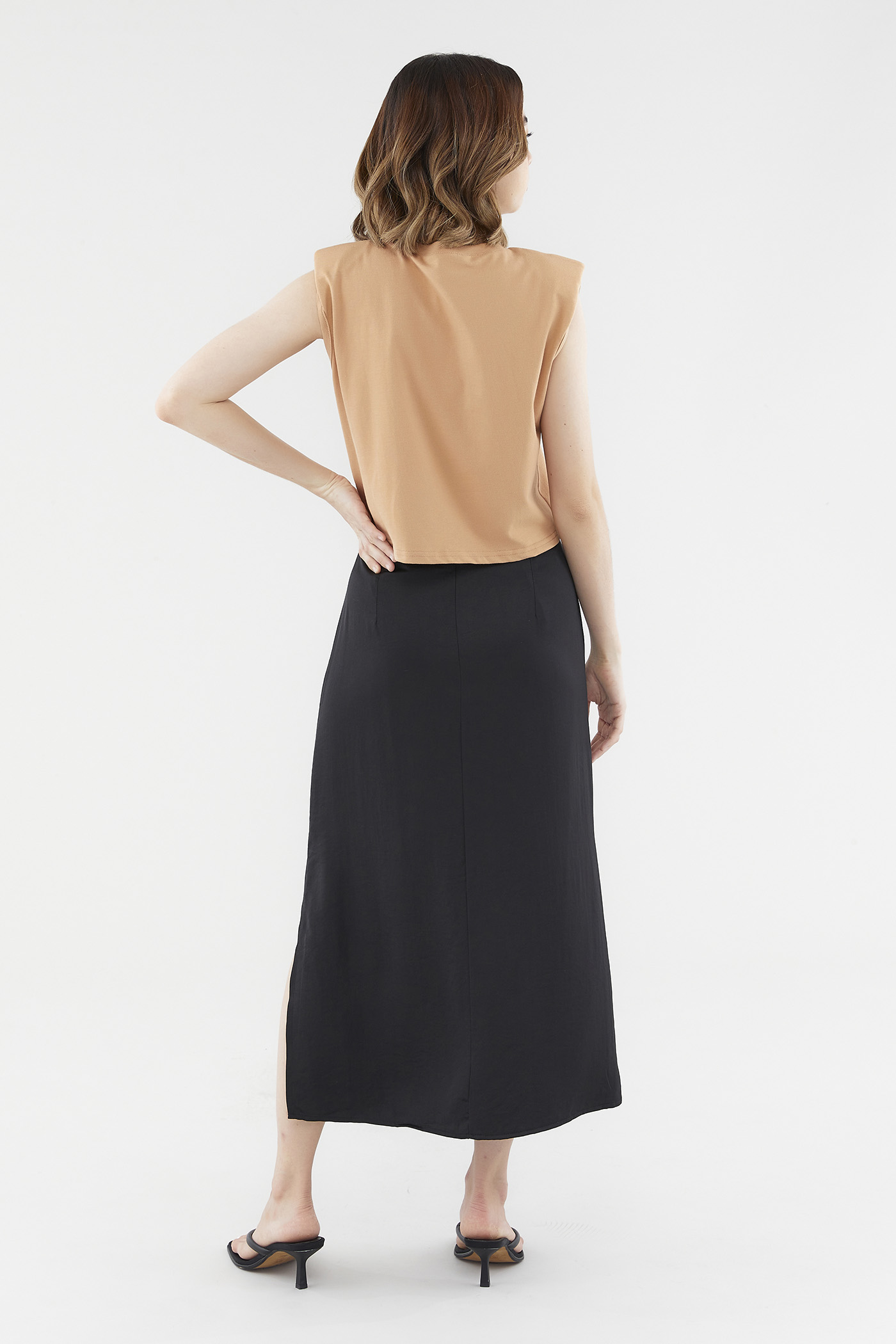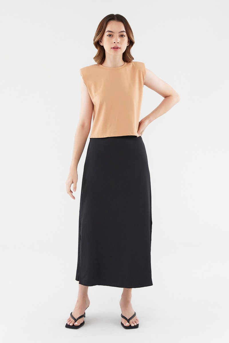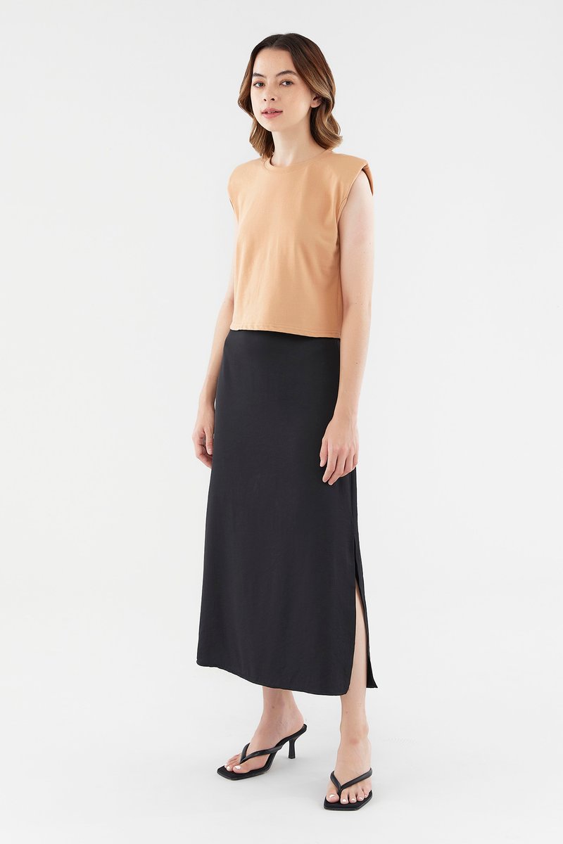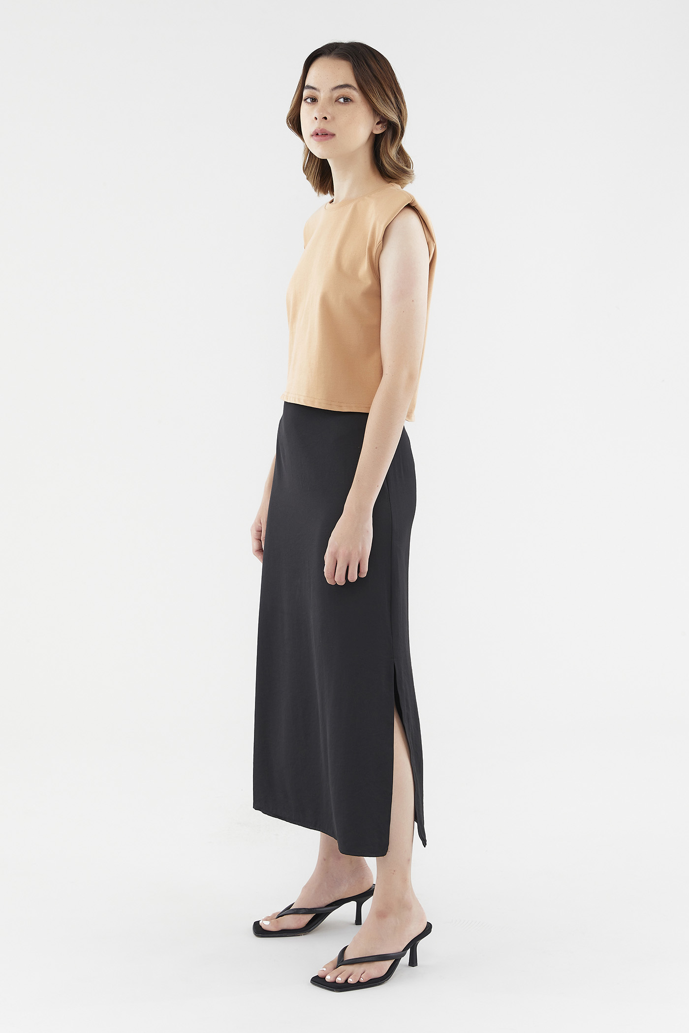 Not your usual tee. Made from stretchy and non-sheer cotton jersey, this sleeveless top features a flattering round neckline, capped sleeves and lightly padded shoulders. Worn in a relaxed fit and cropped length.