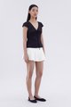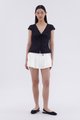 Details that count. Made from crisp and softly structured cotton, this lace-trimmed blouse features a V-shaped bustier neckline with a tie-strap, cap sleeves, front loop buttons and a back tie-strap. Worn in a slim fit with a side zip closure.