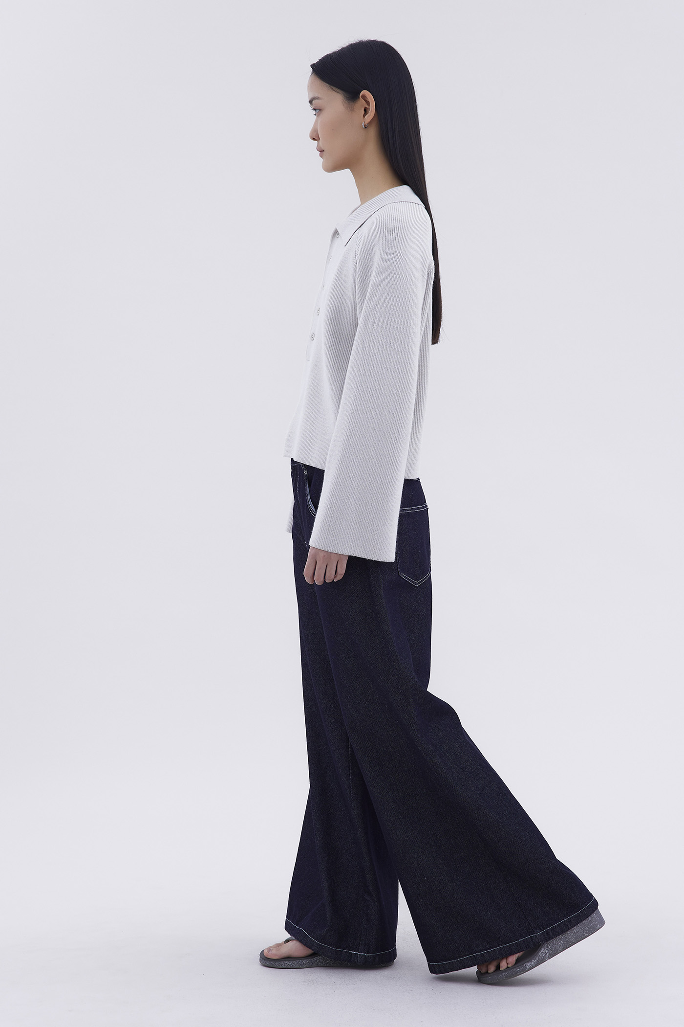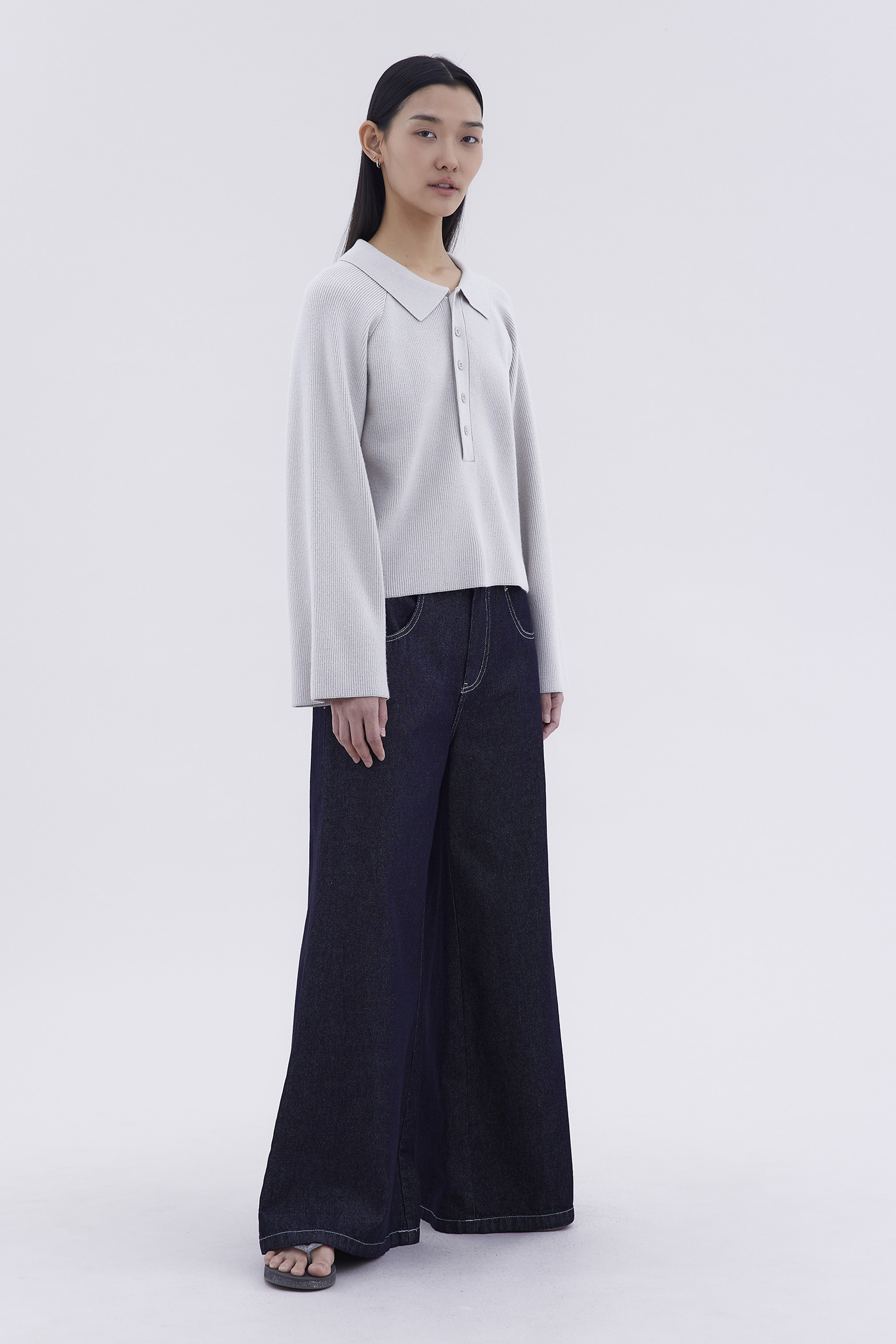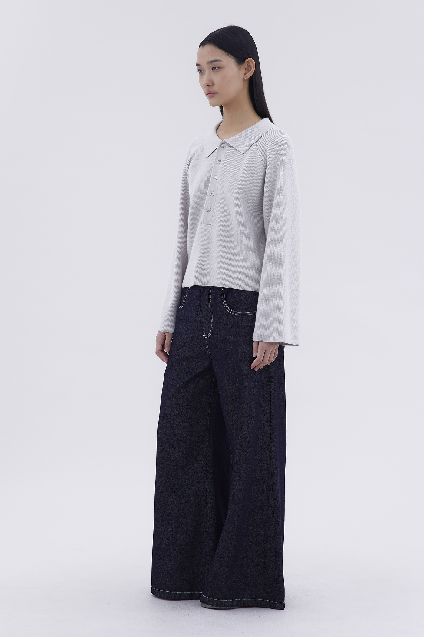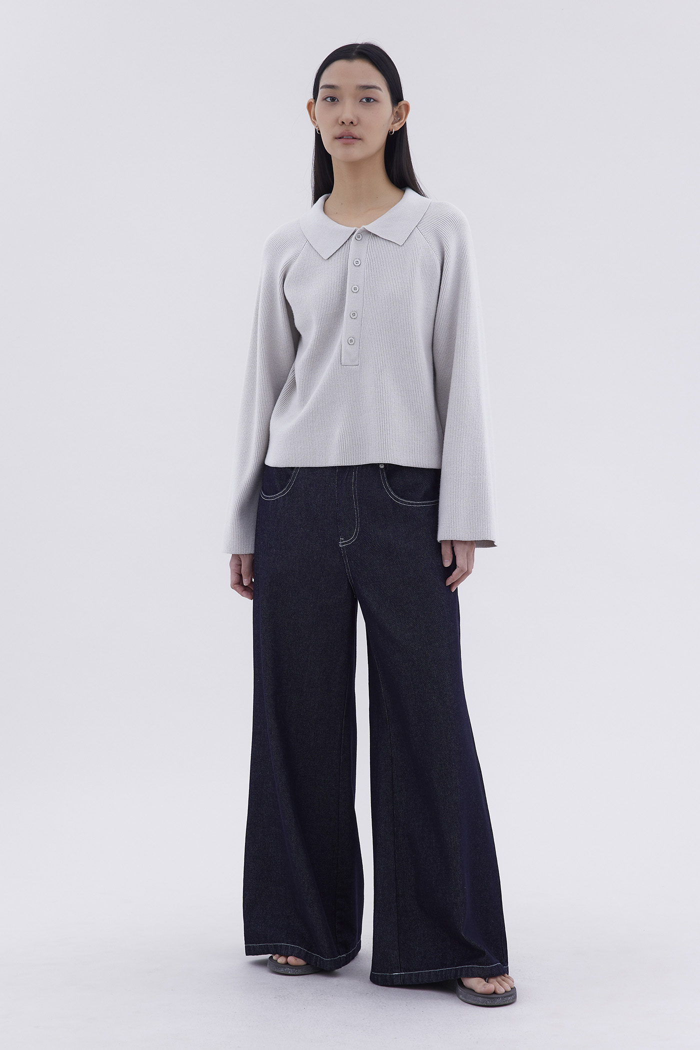 Bundle up. Made from soft and cosy knit, this sweater features a collared neckline and front buttons. Worn in an oversized fit.