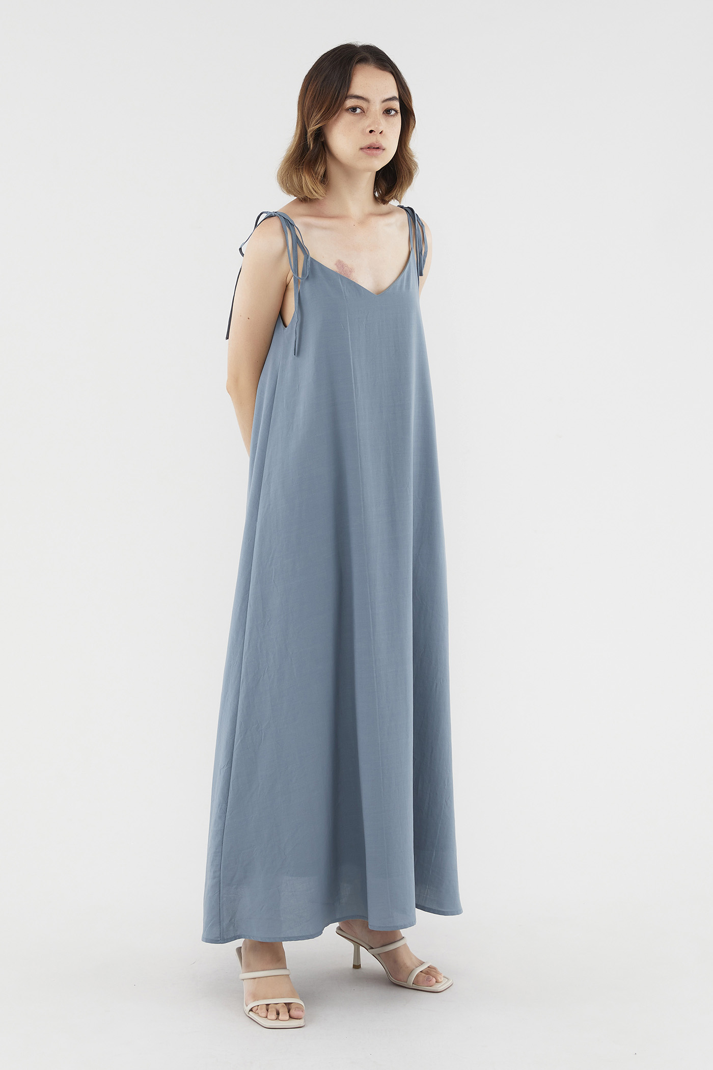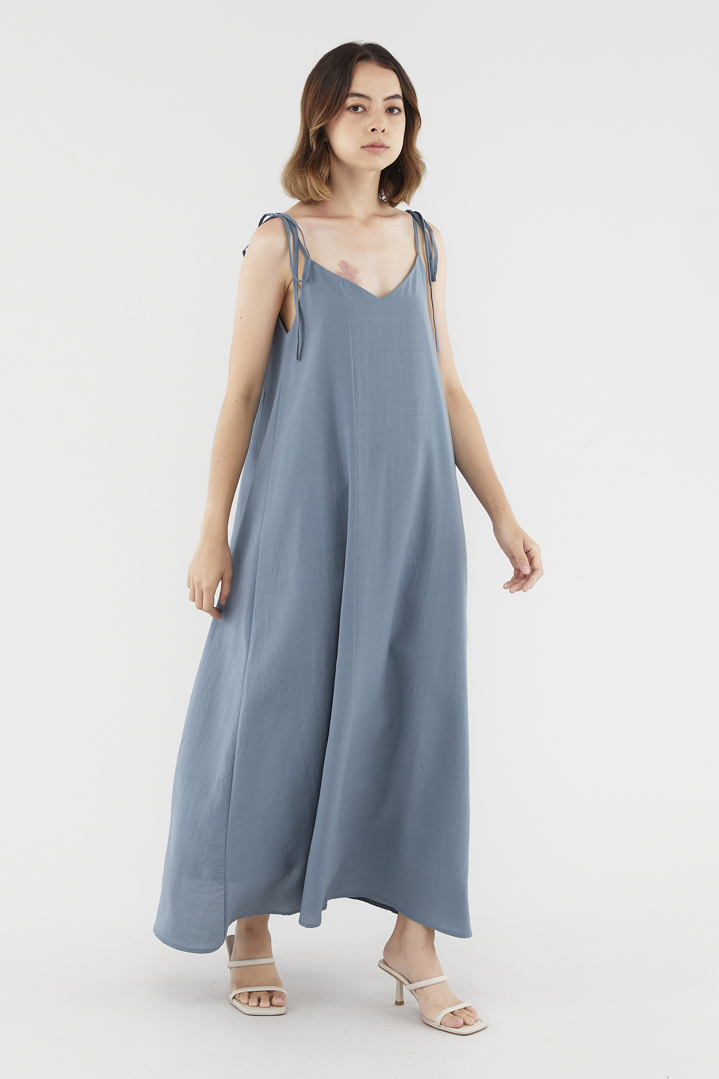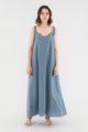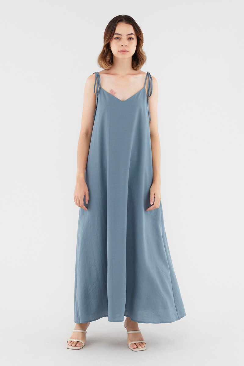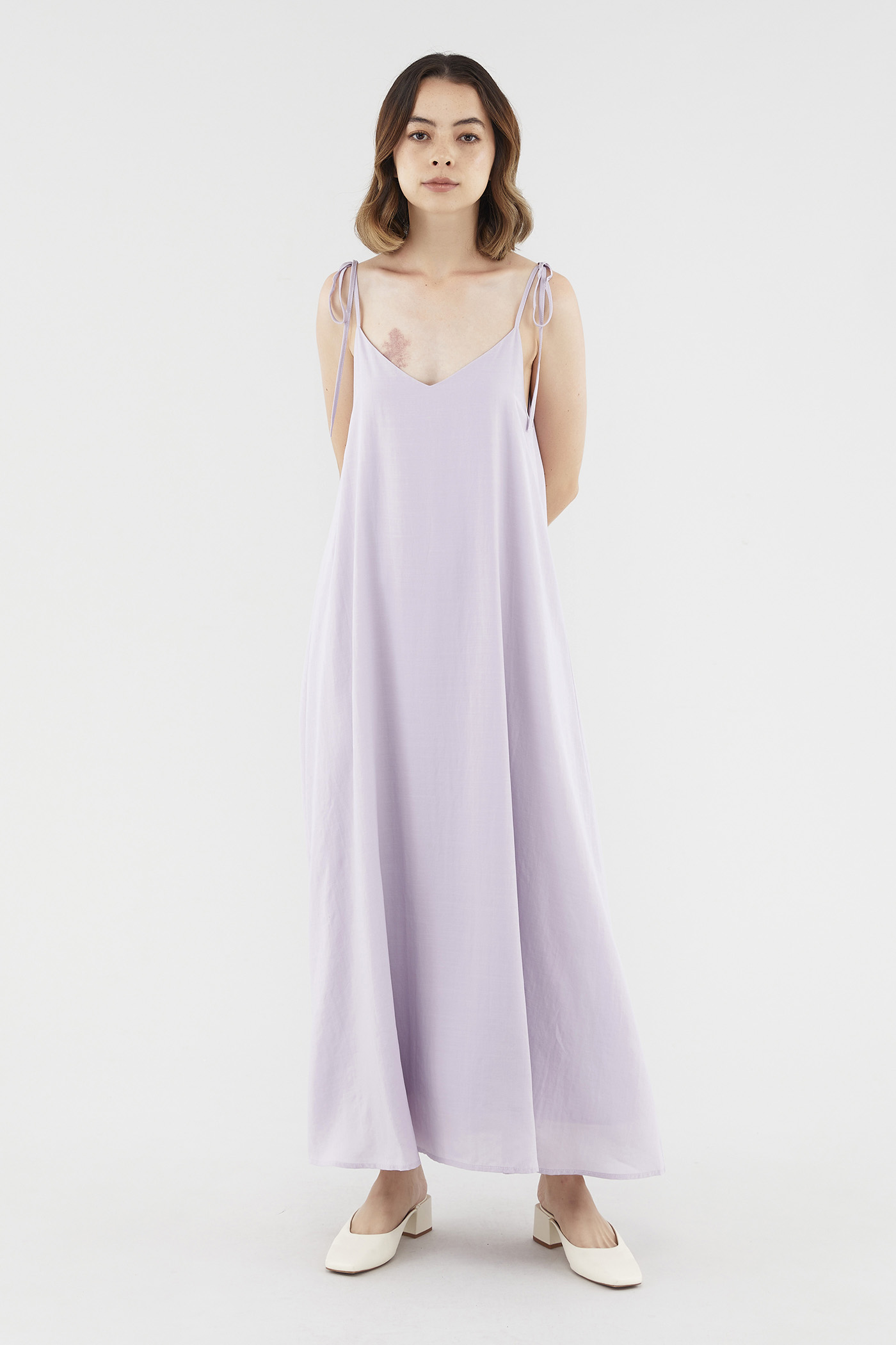 <p><span style="font-weight: 400;">Fabric Composition: 65% Lyocell 25 % Polyester 10% Cotton</span></p> <p><span style="font-weight: 400;">Lining: Full</span></p> <p><span style="font-weight: 400;">Sheerness: Opaque</span></p> <p><span style="font-weight: 400;">Pockets: None</span></p> <p><span style="font-weight: 400;">For free and easy days. Cut from smooth and non-stretch fabric, this sleeveless maxi dress flaunts a flattering V-shaped neckline and back, slim self-tying straps and a waistless, tent-shaped silhouette. Worn in a relaxed fit. </span></p> <p><span style="font-weight: 400;">Care Instructions: Do not soak / Do not bleach / Handwash or Machine wash on gentle mode / Do not machine dry / Iron using low heat</span></p>