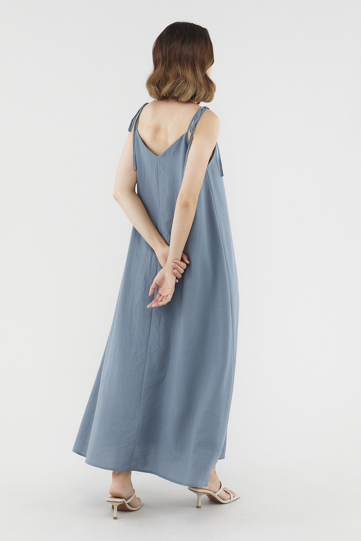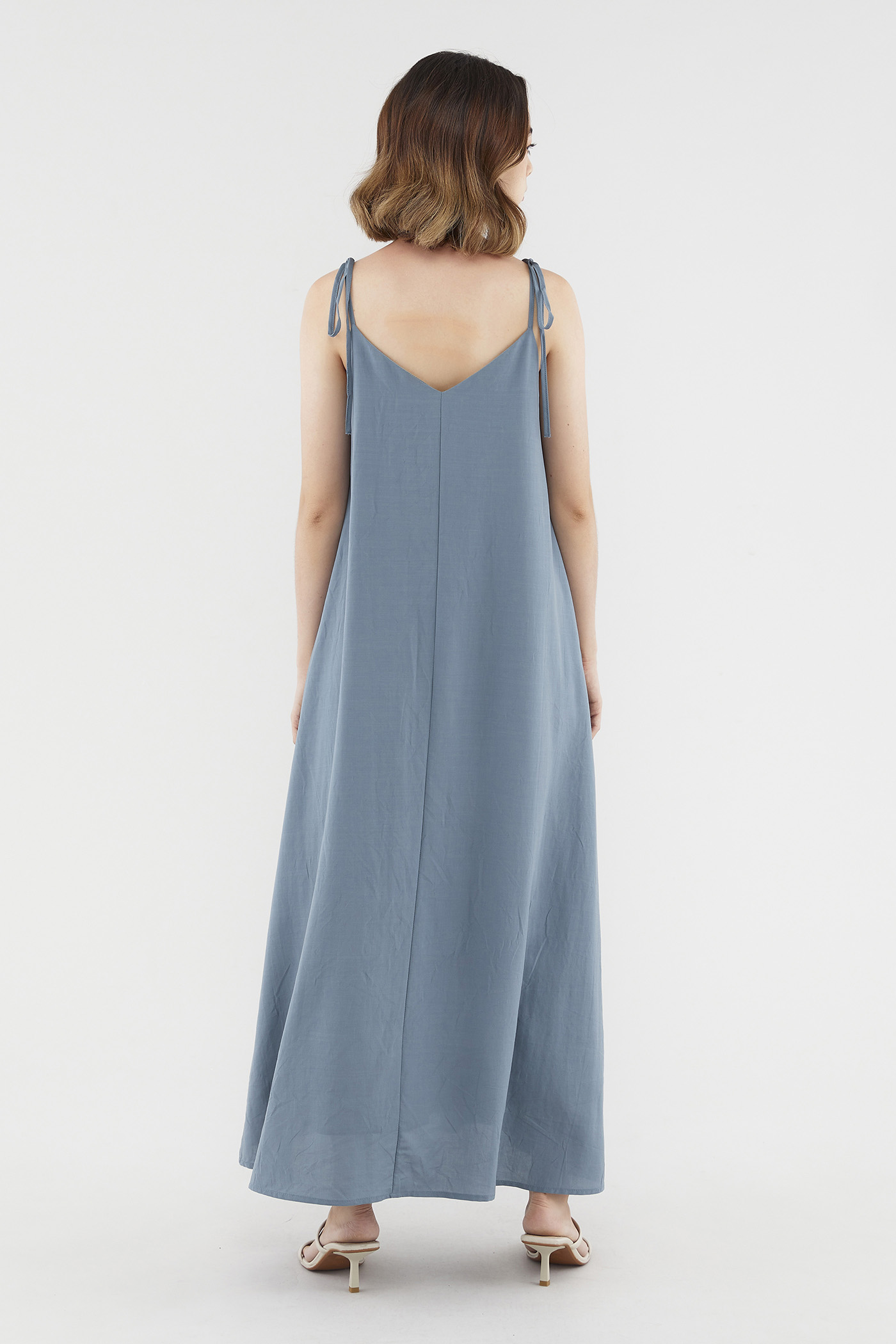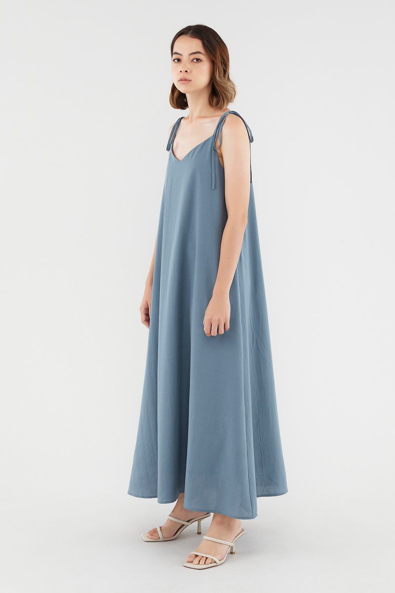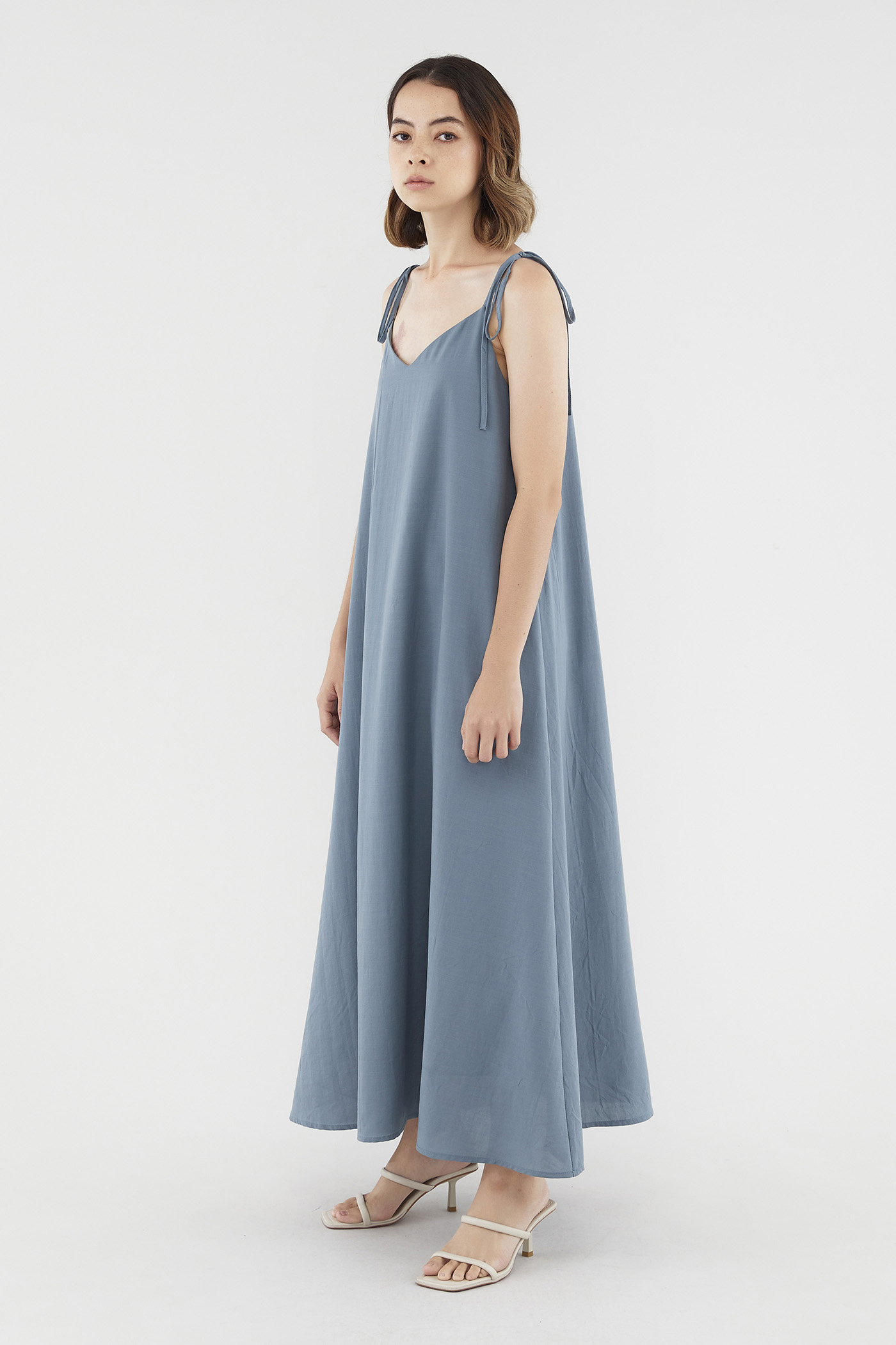 <p><span style="font-weight: 400;">Fabric Composition: 65% Lyocell 25 % Polyester 10% Cotton</span></p> <p><span style="font-weight: 400;">Lining: Full</span></p> <p><span style="font-weight: 400;">Sheerness: Opaque</span></p> <p><span style="font-weight: 400;">Pockets: None</span></p> <p><span style="font-weight: 400;">For free and easy days. Cut from smooth and non-stretch fabric, this sleeveless maxi dress flaunts a flattering V-shaped neckline and back, slim self-tying straps and a waistless, tent-shaped silhouette. Worn in a relaxed fit. </span></p> <p><span style="font-weight: 400;">Care Instructions: Do not soak / Do not bleach / Handwash or Machine wash on gentle mode / Do not machine dry / Iron using low heat</span></p>