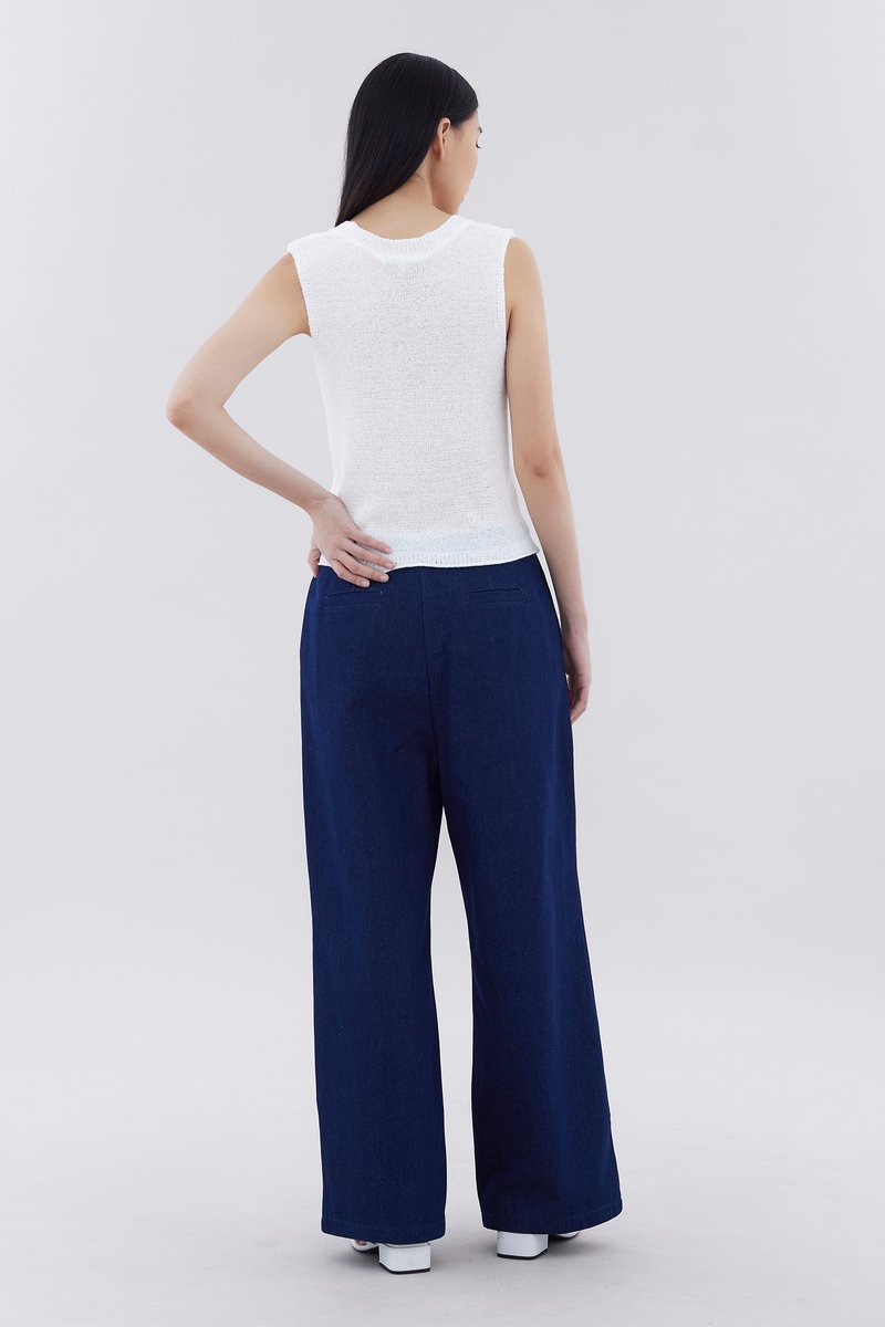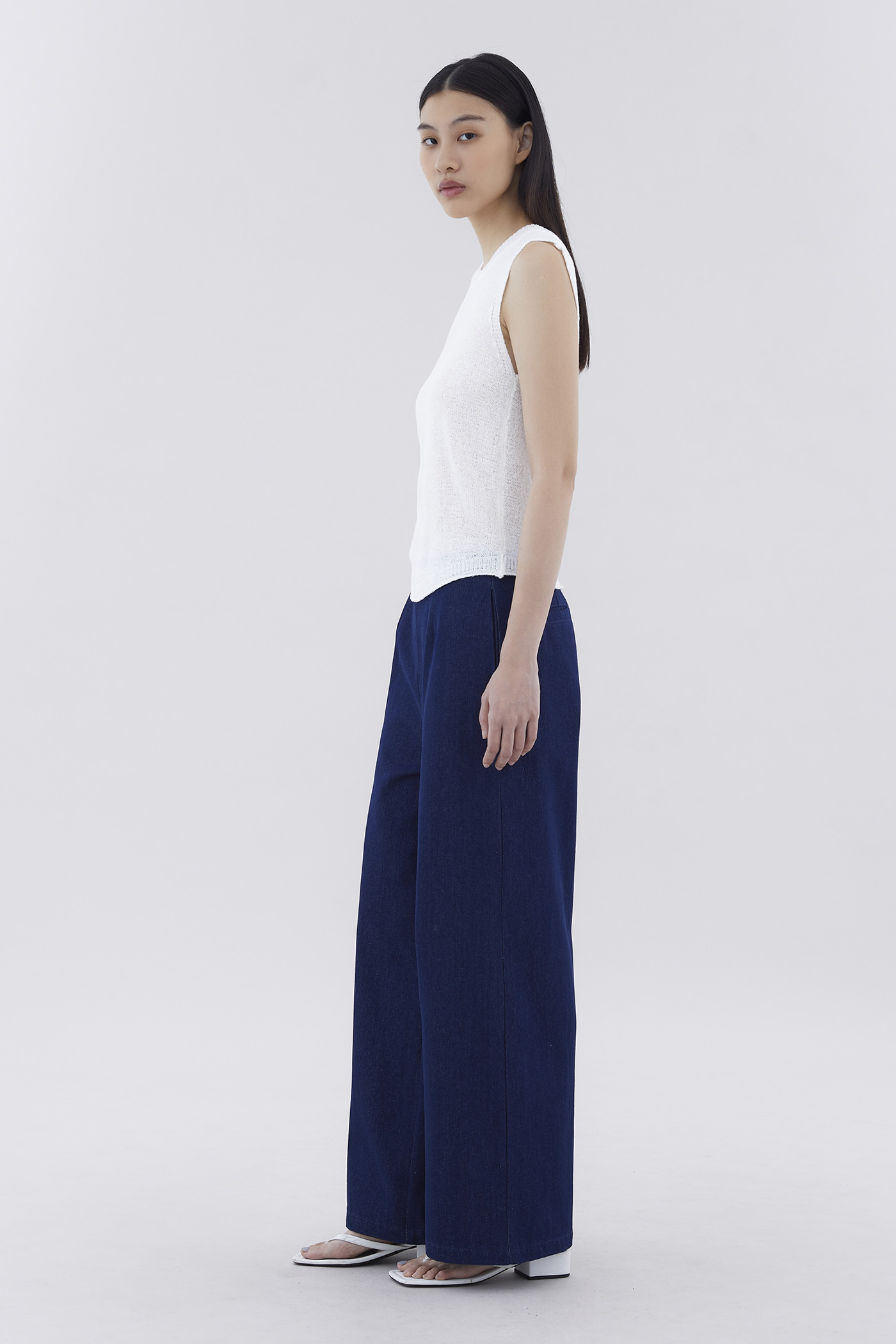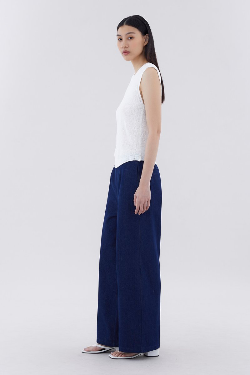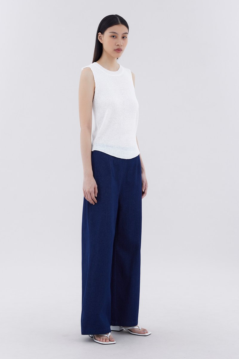Unite your wardrobe. Made from soft and stretchy knit fabric, this sleeveless tank features a ribbed round neckline and lettuce hem. Worn in a relaxed fit.