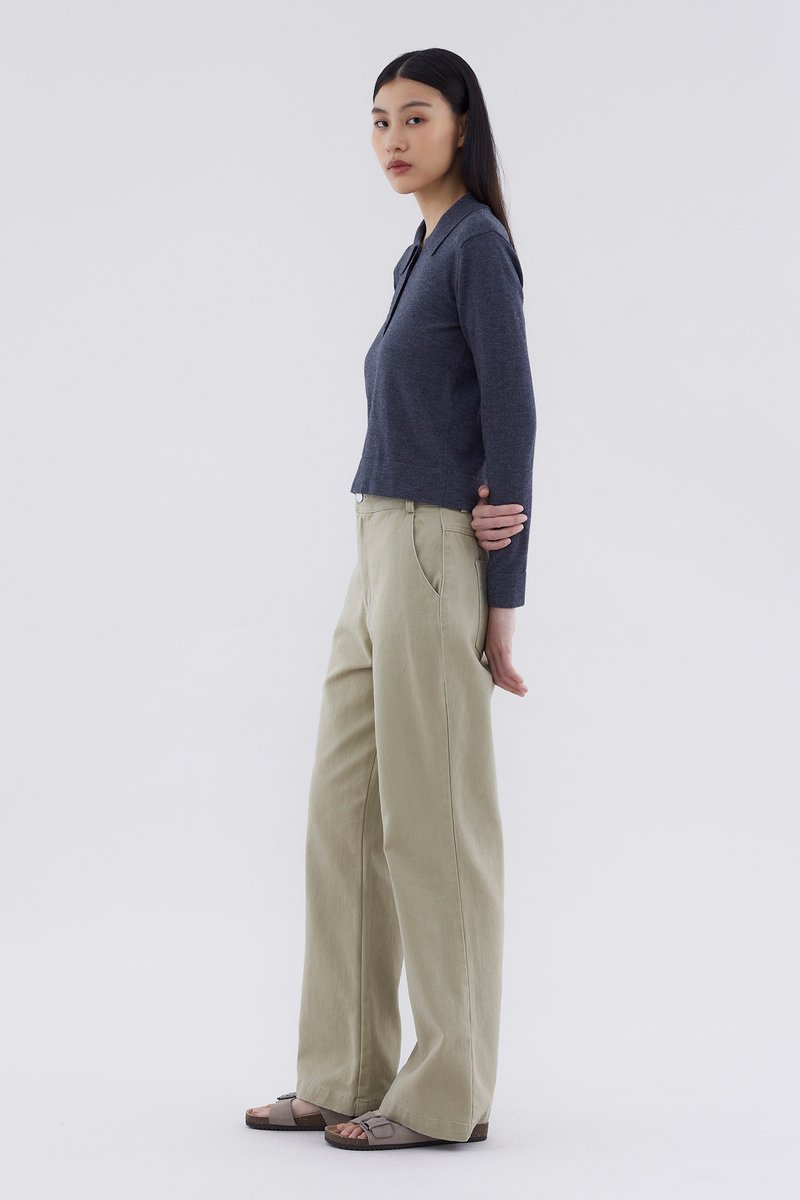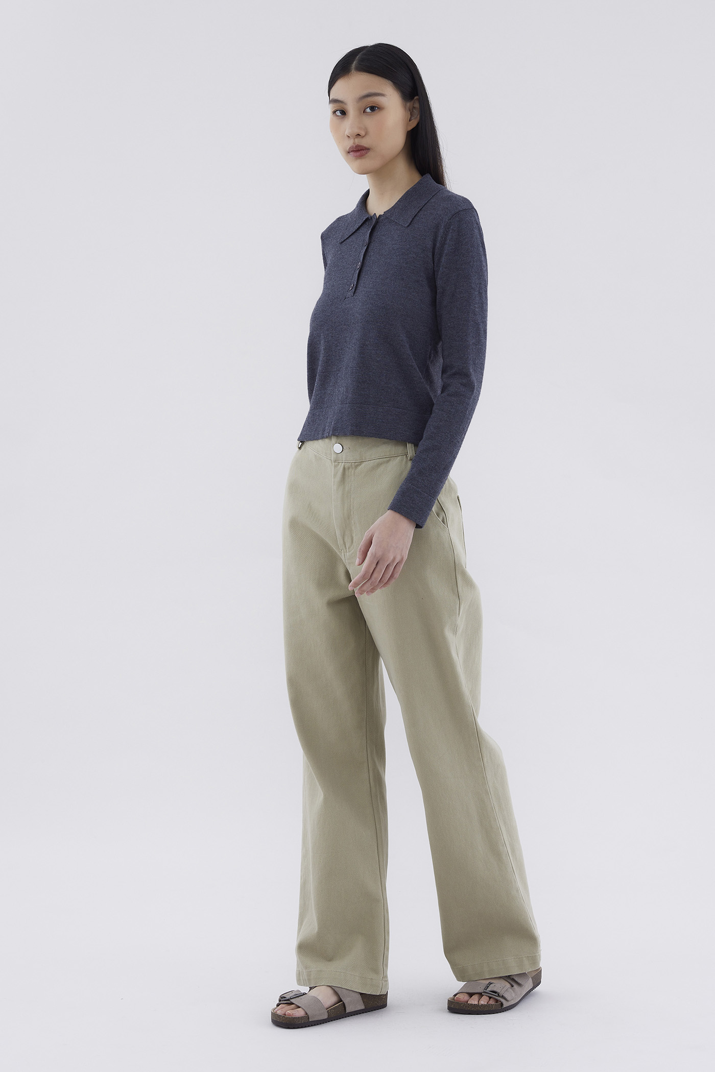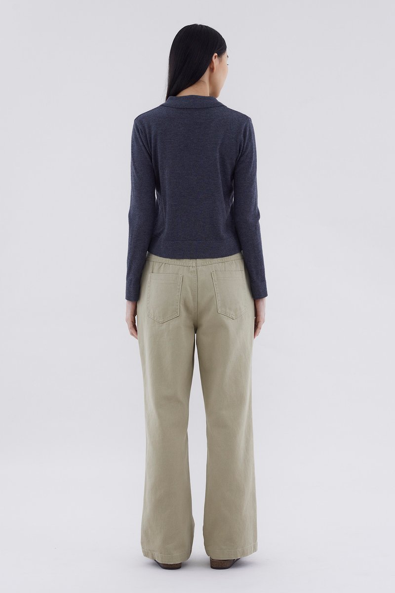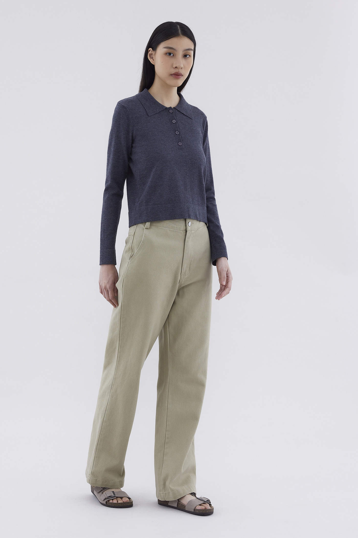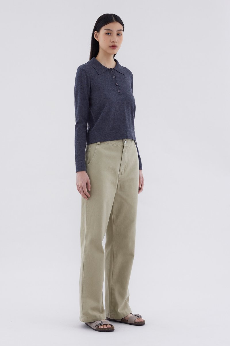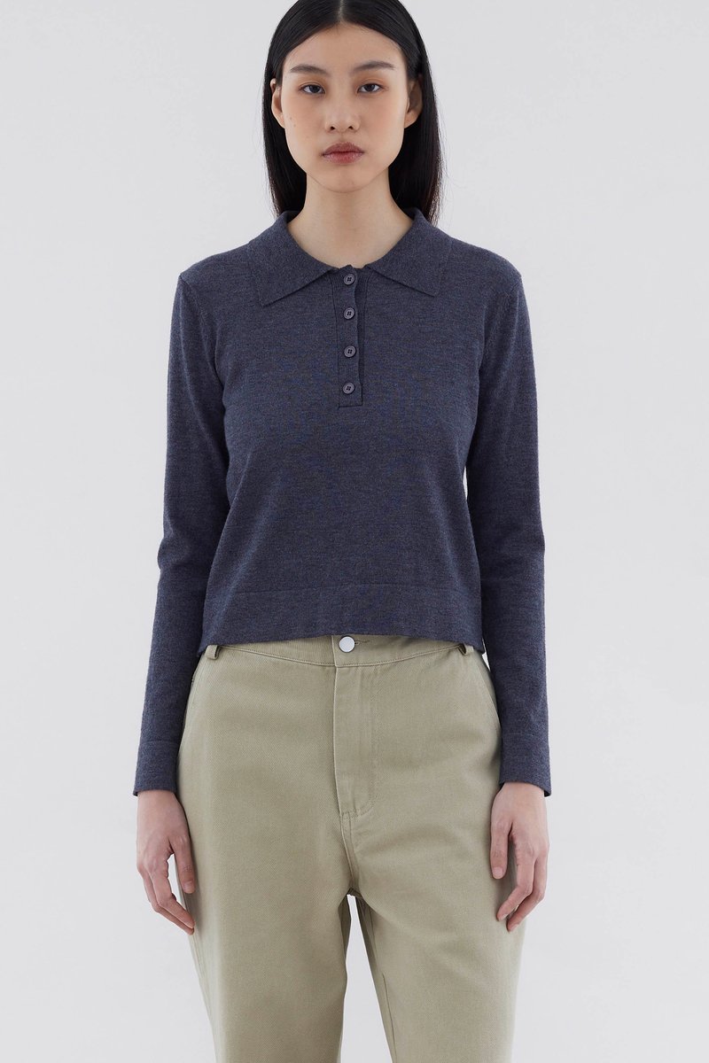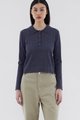 Ease up. Made from soft and lightweight knit, this top features long sleeves, a collared neckline and front buttons. Worn in a relaxed fit.