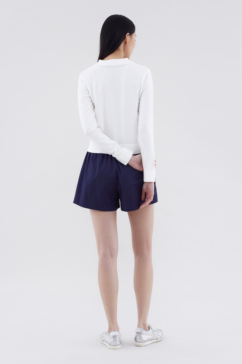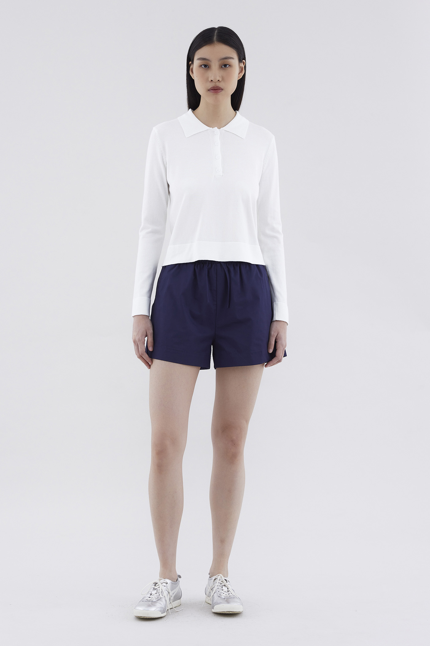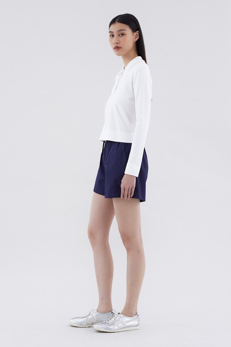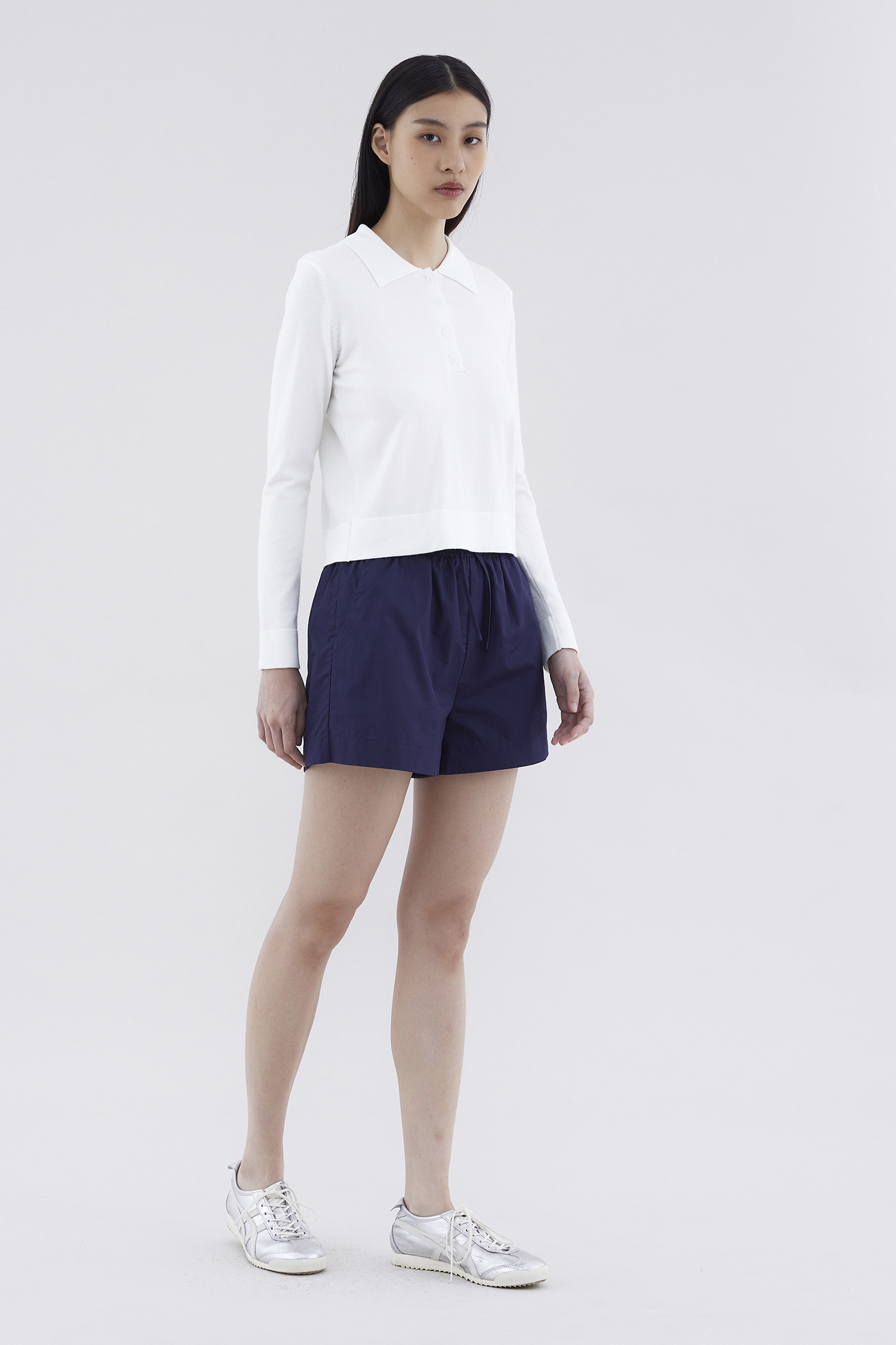 Ease up. Made from soft and lightweight knit, this top features long sleeves, a collared neckline and front buttons. Worn in a relaxed fit.