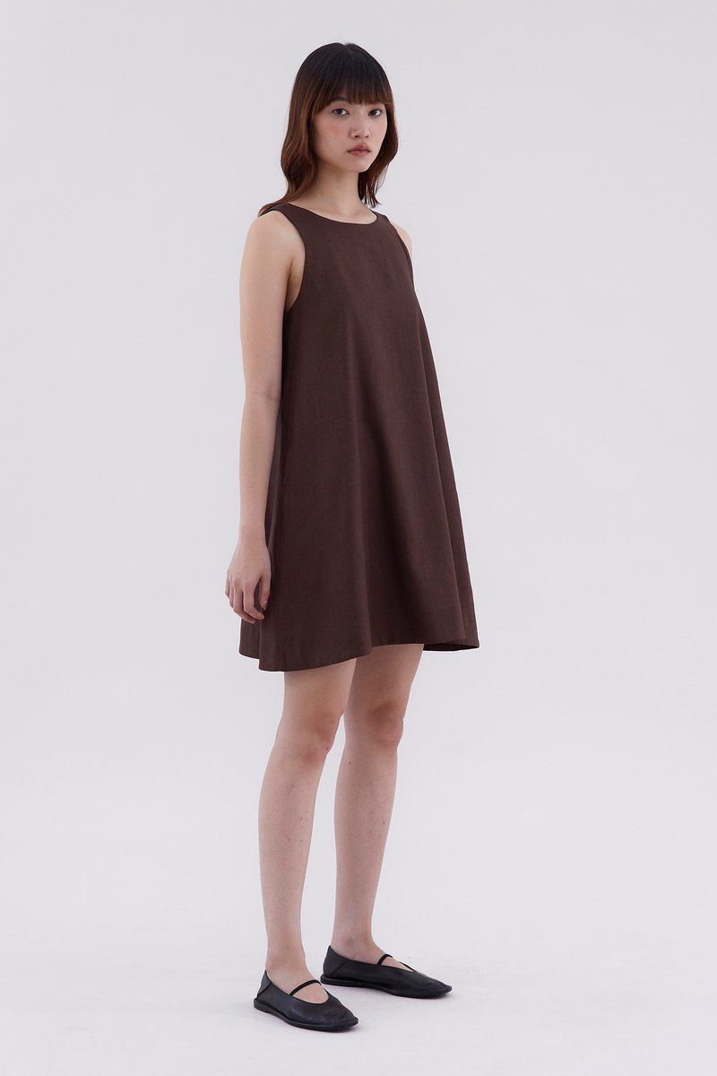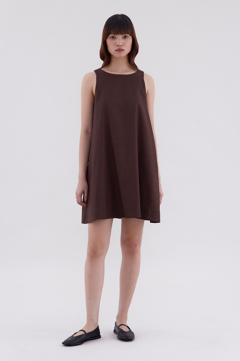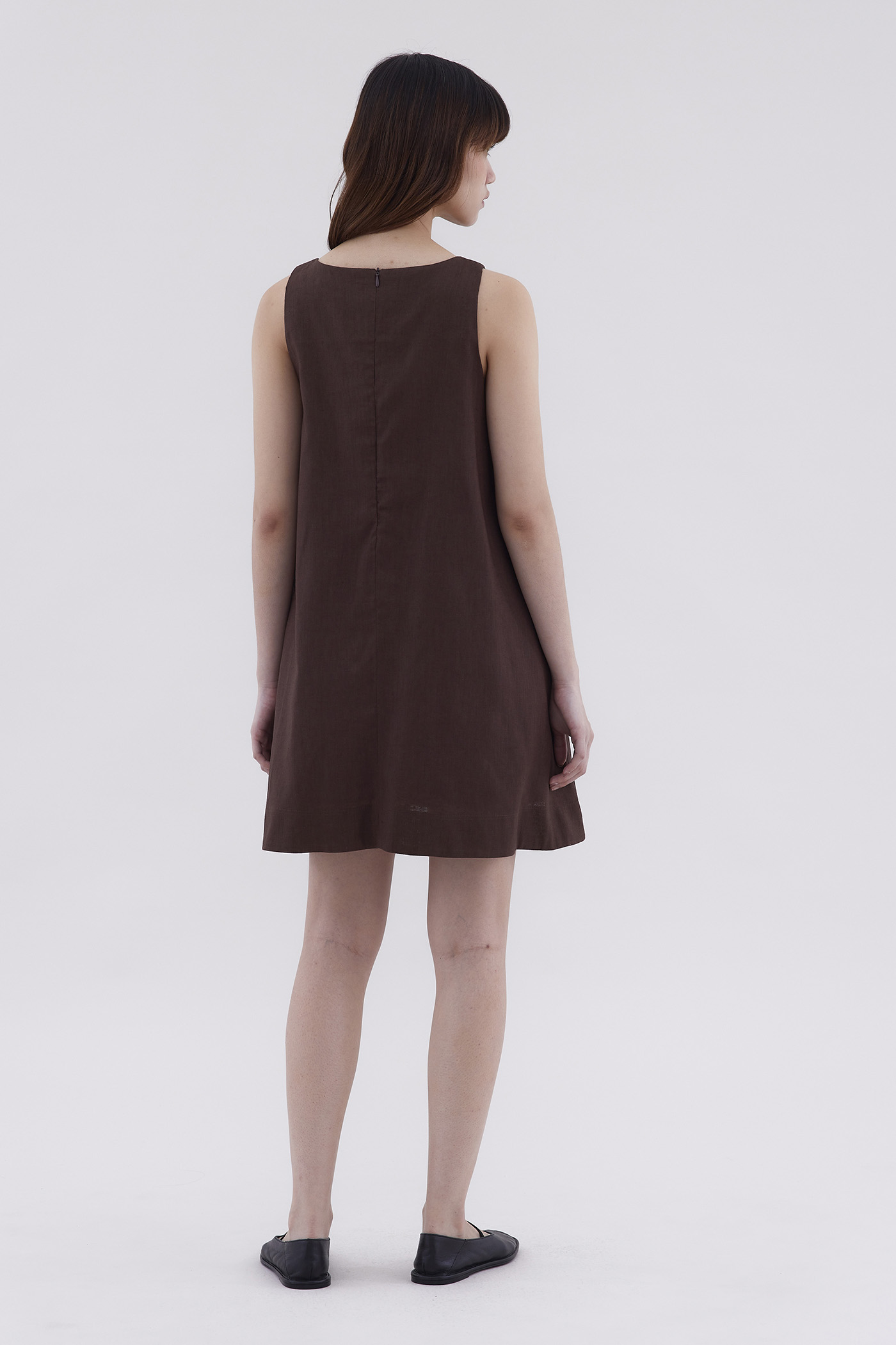 Your Monday to Sunday dress. Cut from airy and non-stretch 100% linen, this sleeveless knee-length dress features a round neckline, dropped arm holes and subtle cut-in shoulders. Worn in a relaxed fit with a zip closure on the back.