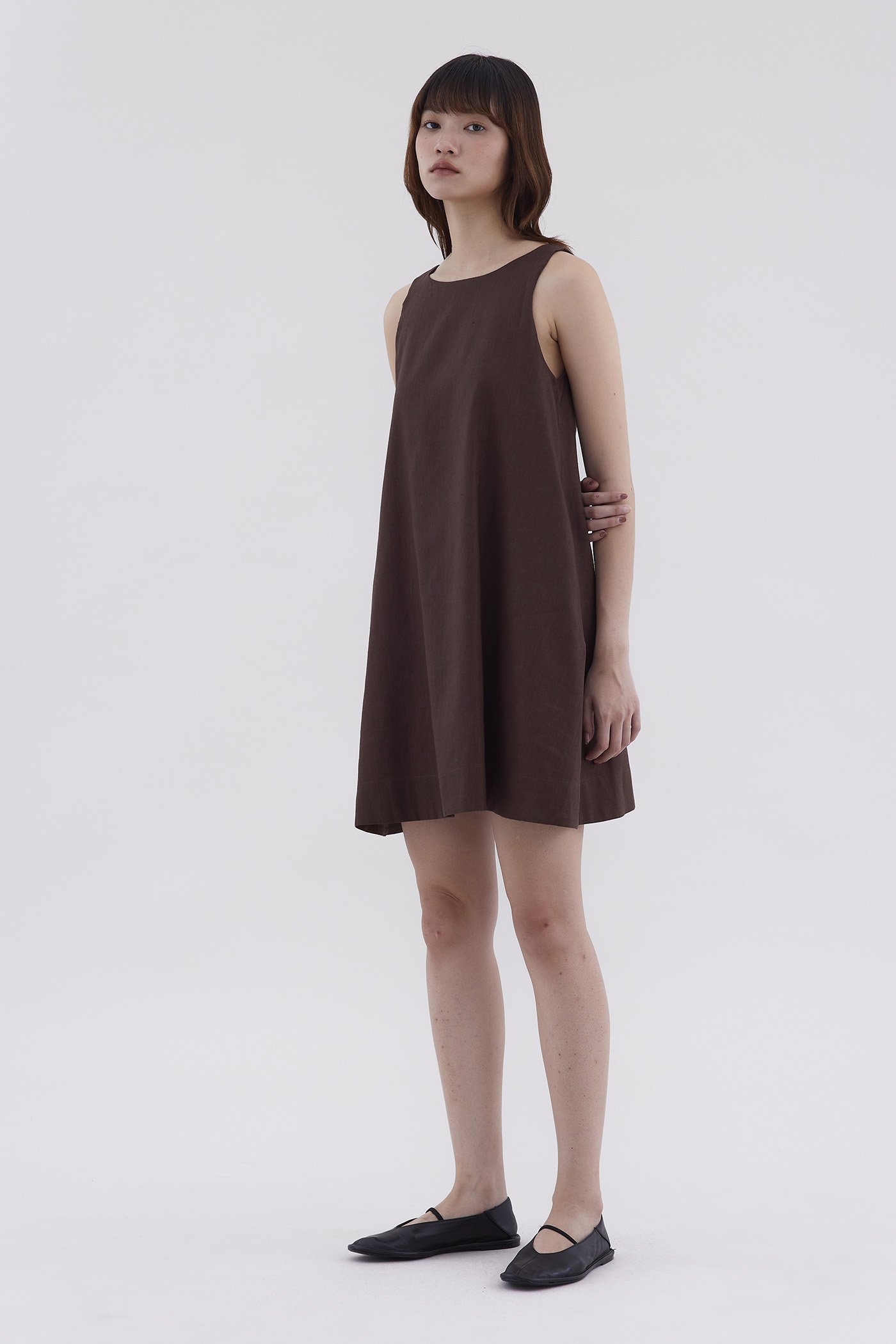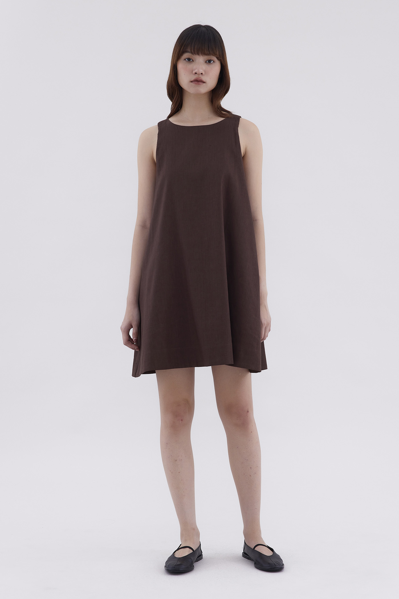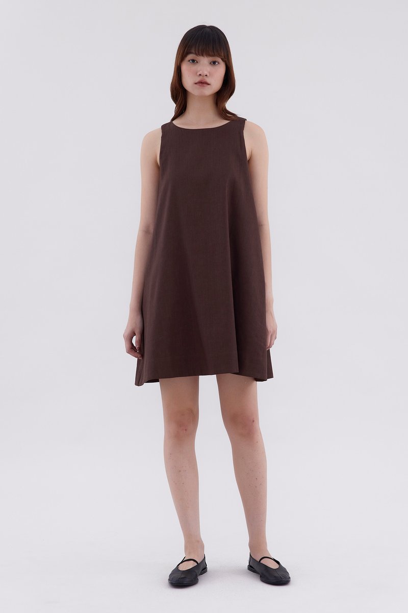 Your Monday to Sunday dress. Cut from airy and non-stretch 100% linen, this sleeveless knee-length dress features a round neckline, dropped arm holes and subtle cut-in shoulders. Worn in a relaxed fit with a zip closure on the back.