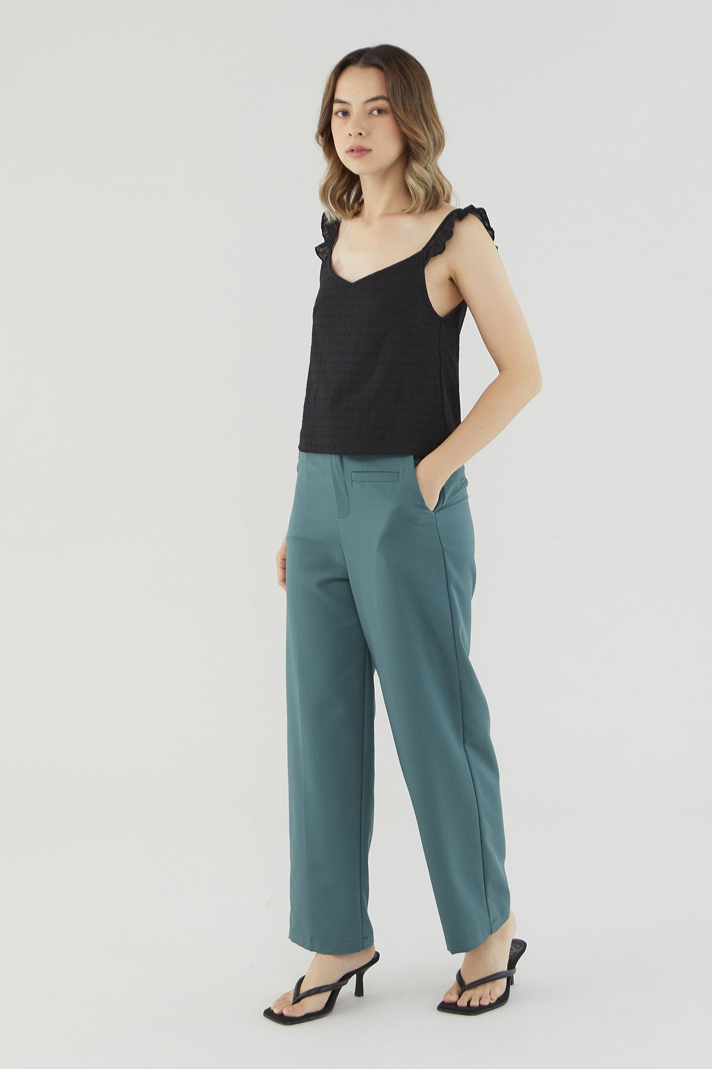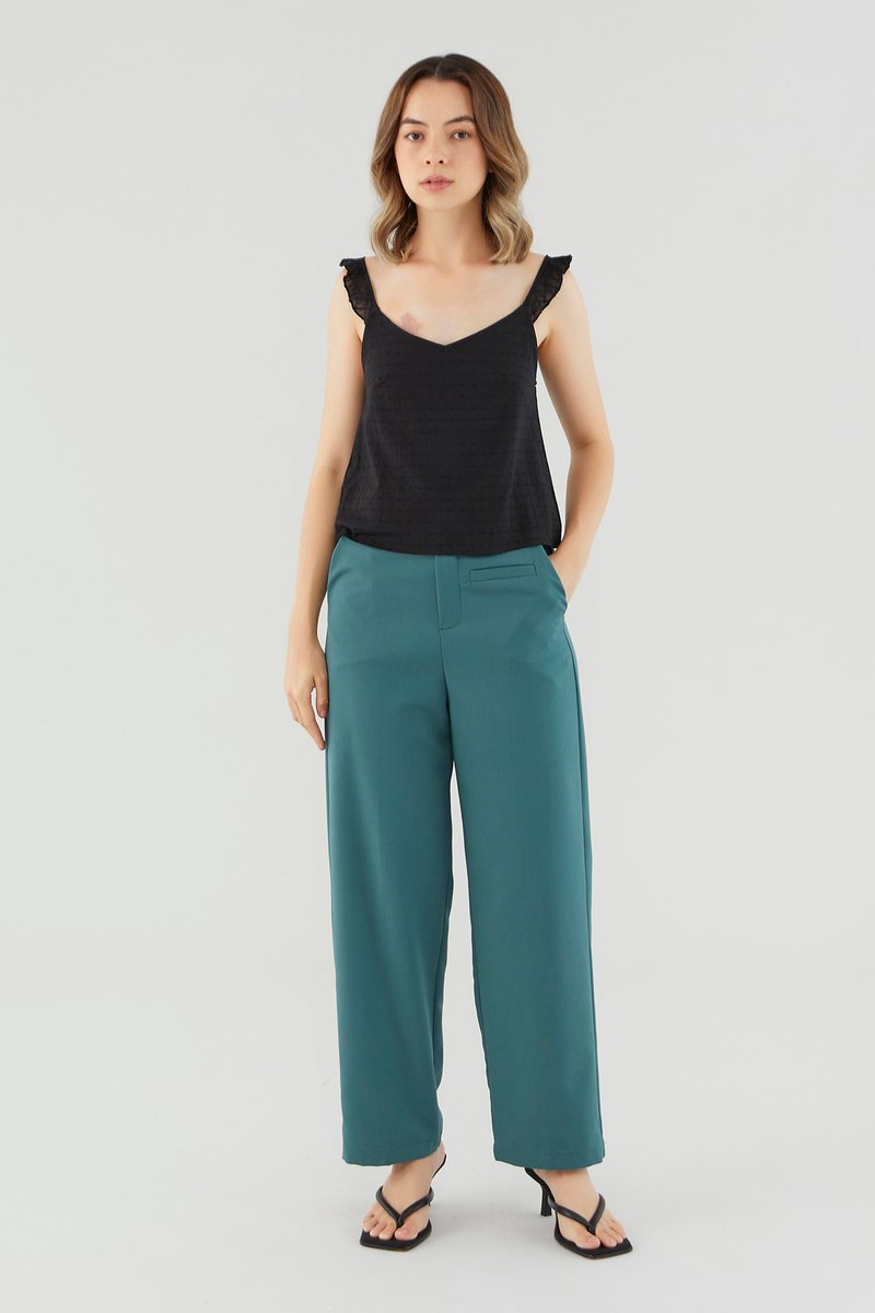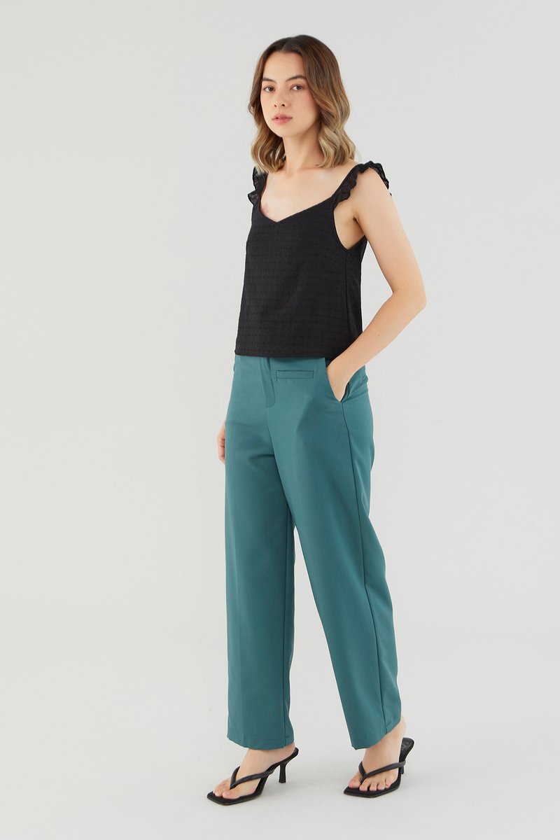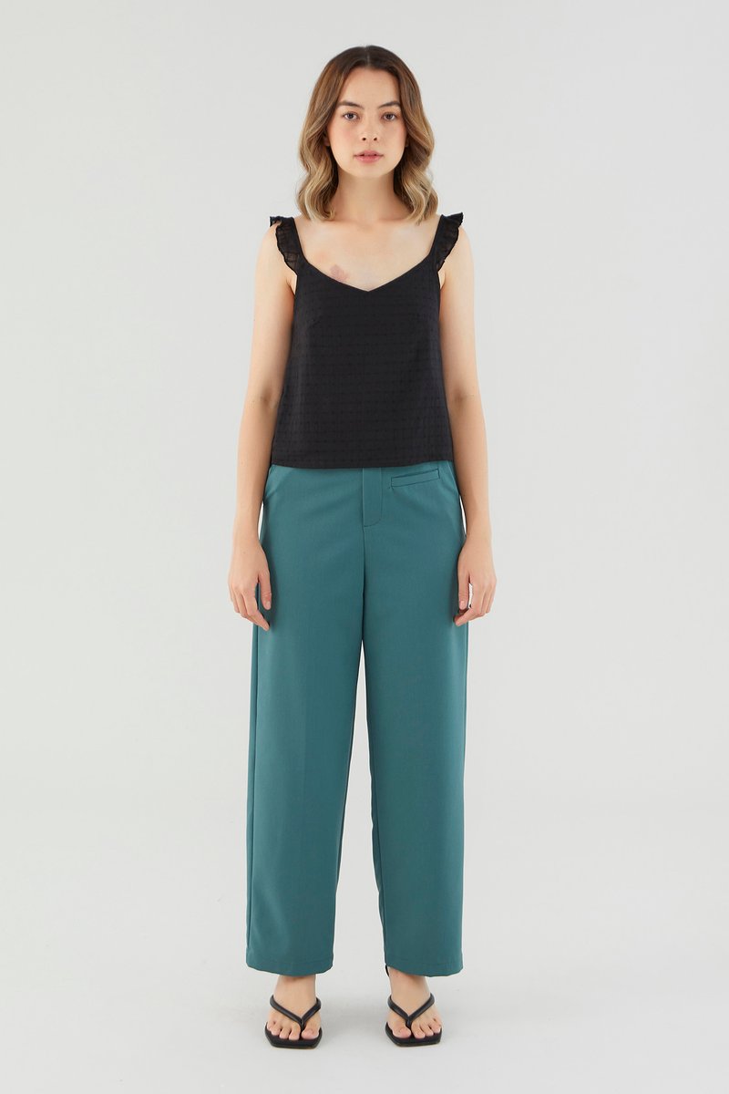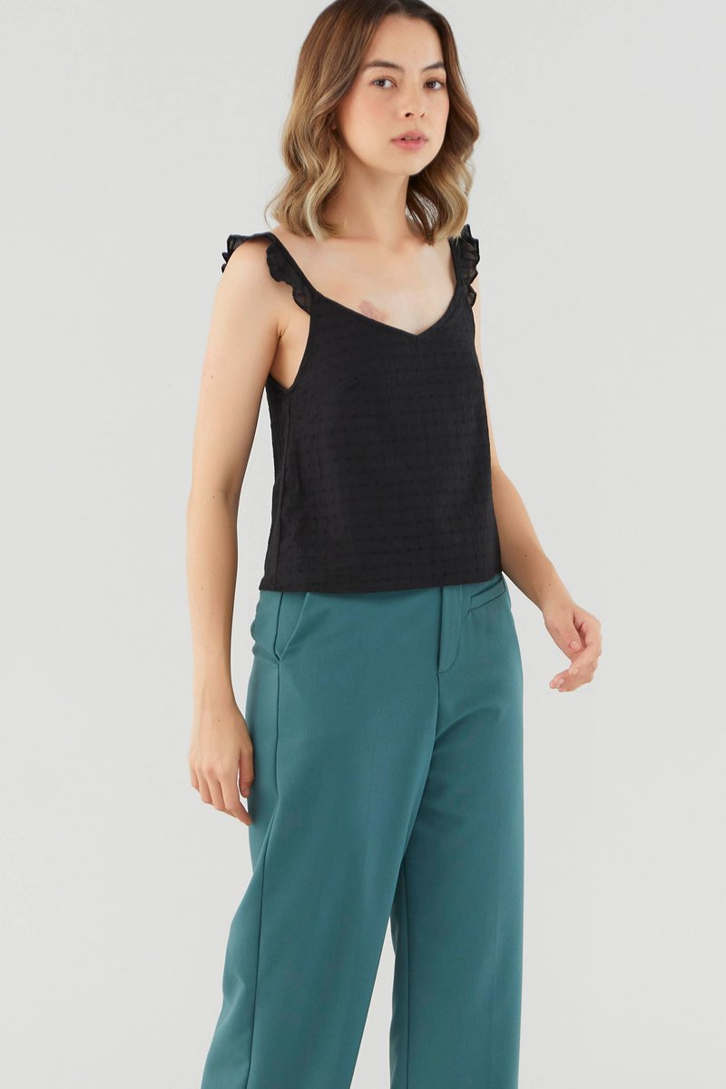 <p><span style="font-weight: 400;">Fabric Composition: 100% Cotton</span></p> <p><span style="font-weight: 400;">Lining: Full</span></p> <p><span style="font-weight: 400;">Sheerness: Not sheer</span></p> <p><span style="font-weight: 400;">Pockets: None</span></p> <p><span style="font-weight: 400;">Easy textures. Cut from airy and softly tailored broderie cotton, this sleeveless cropped top features a flattering V-neckline, non-adjustable ruffle straps and a boxy, slightly oversized silhouette. Worn in a relaxed fit. </span></p> <p><span style="font-weight: 400;">Care Instructions: Do not soak / Do not bleach / Handwash or Machine wash on gentle mode / Do not machine dry / Iron using low heat</span></p>