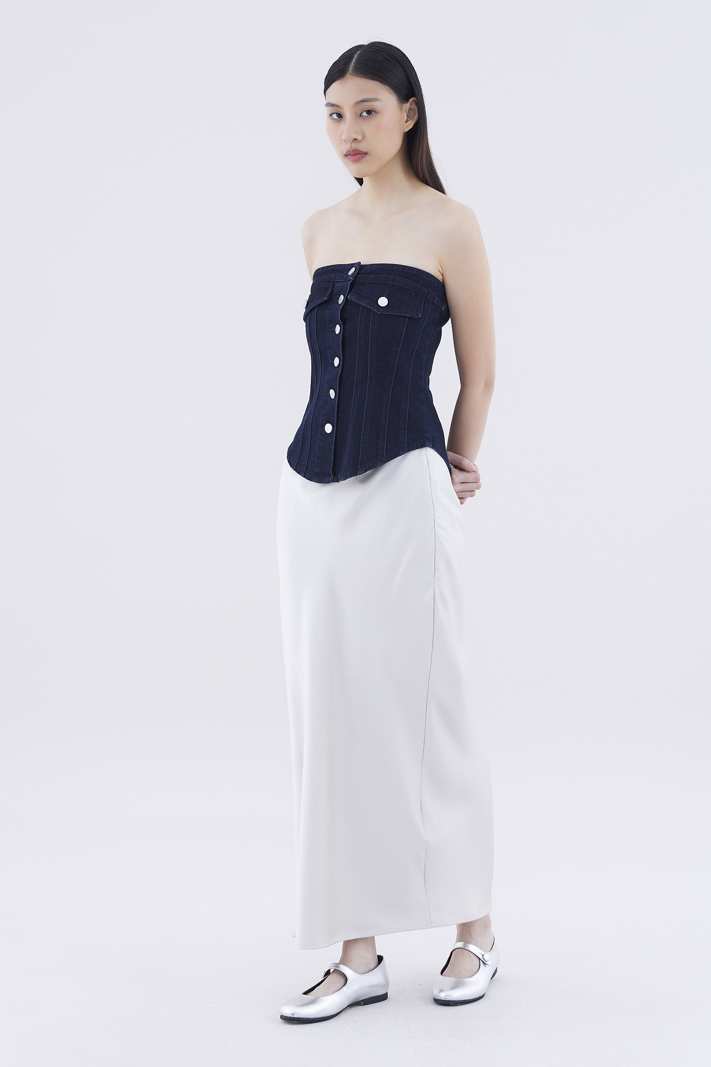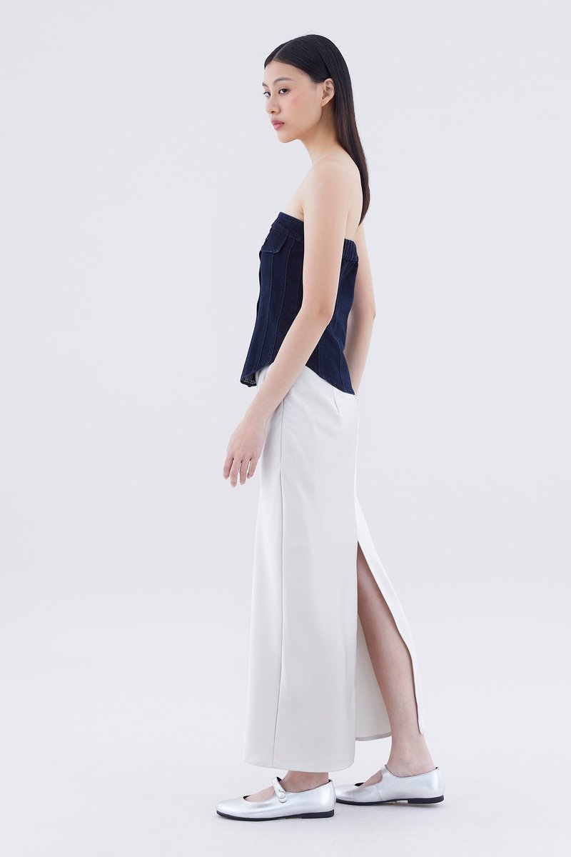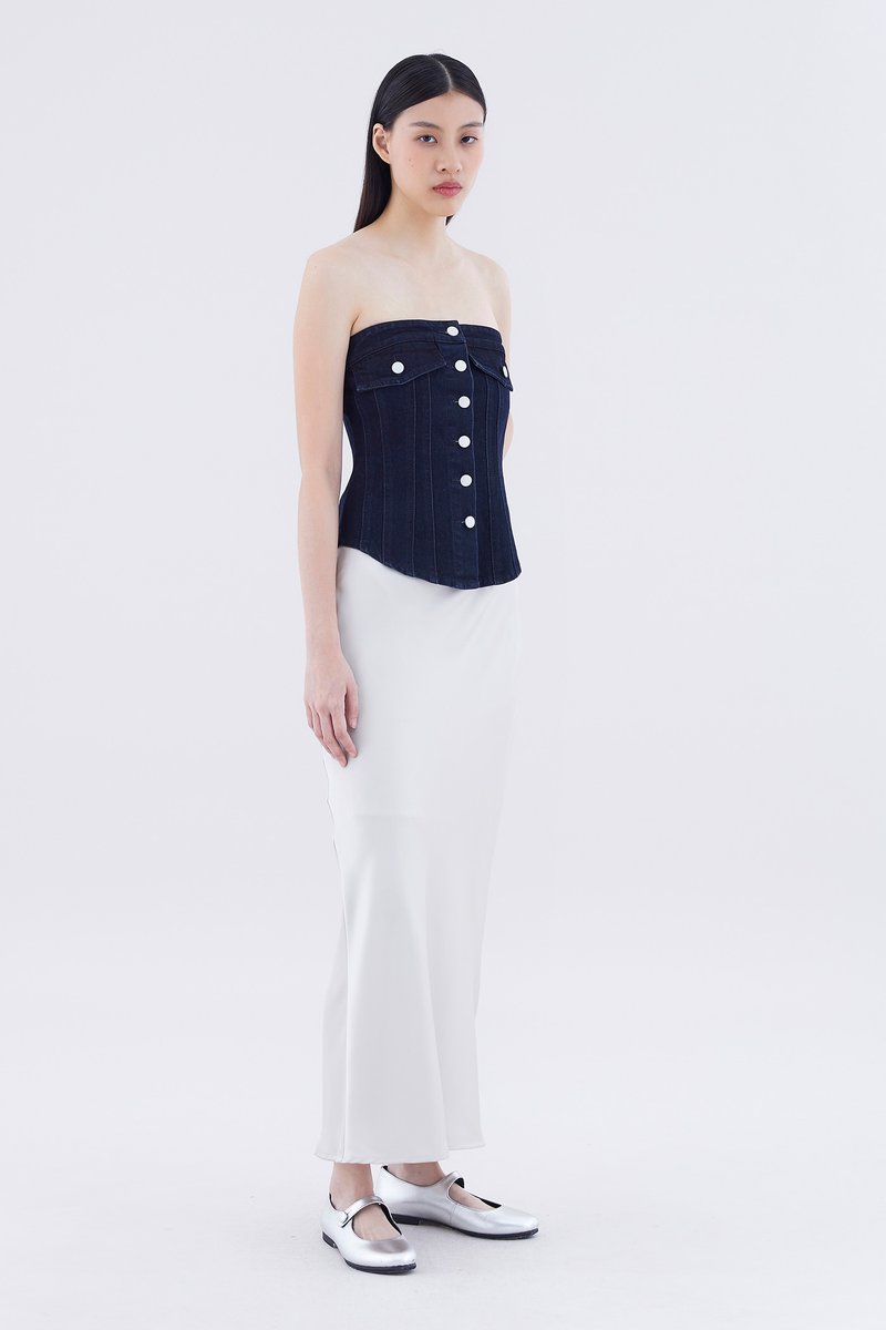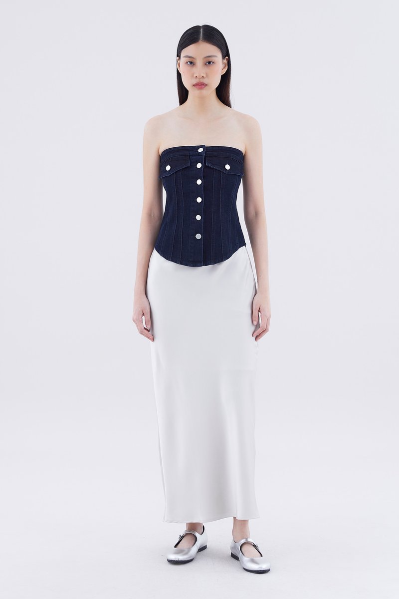 Paisie Button-Down Denim Tube Top