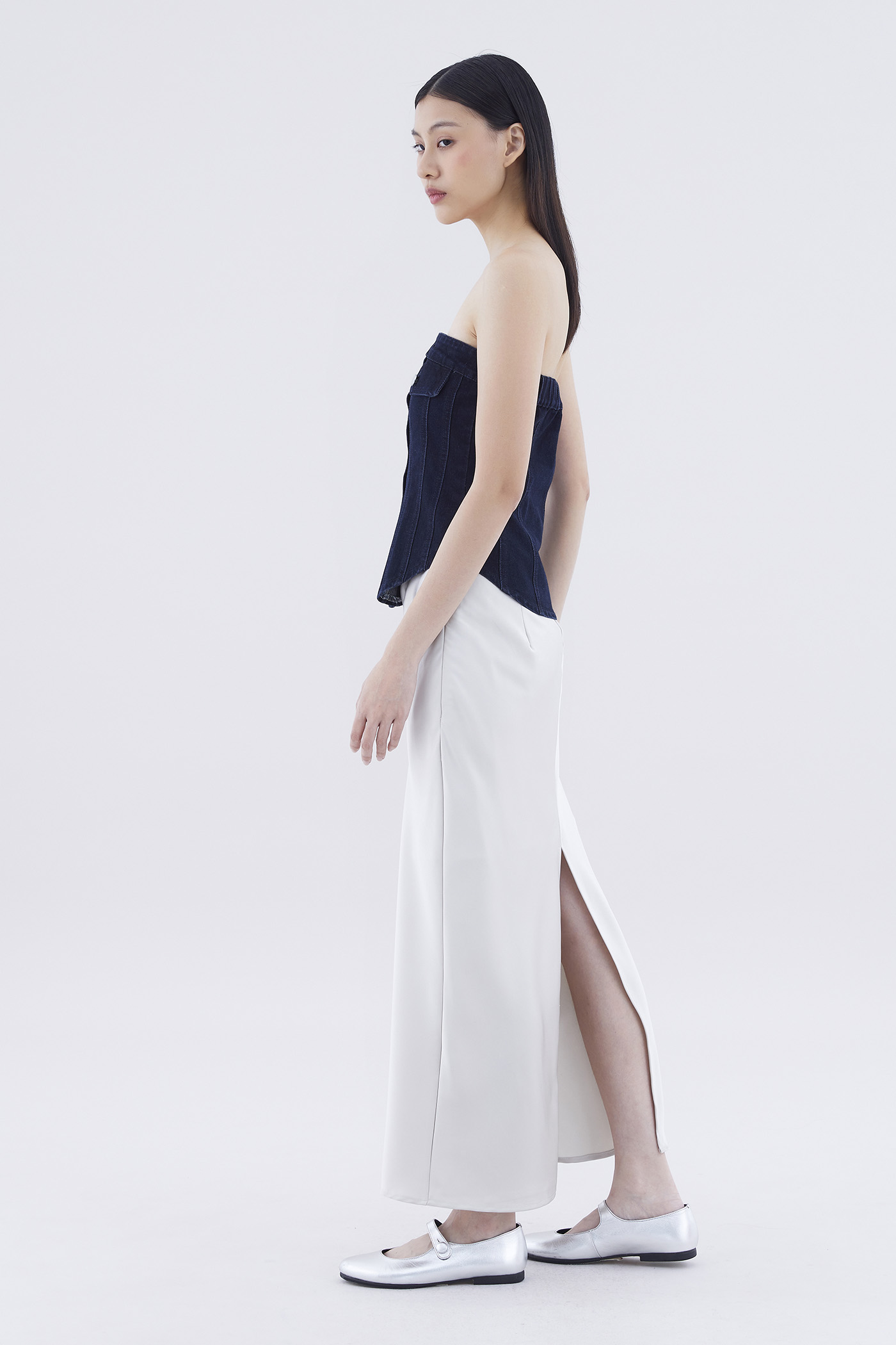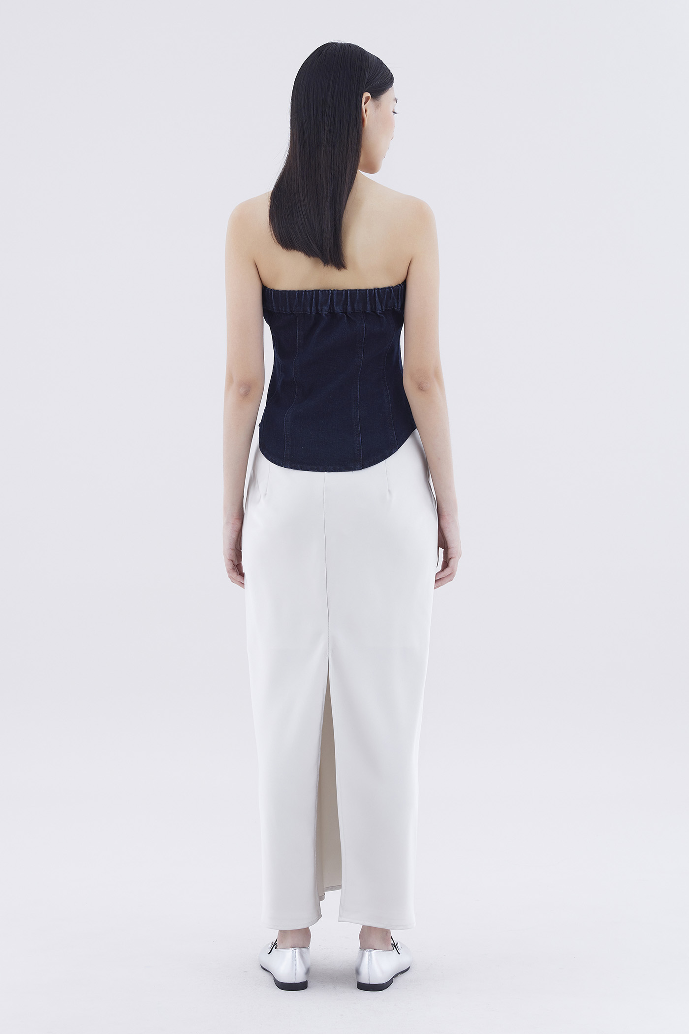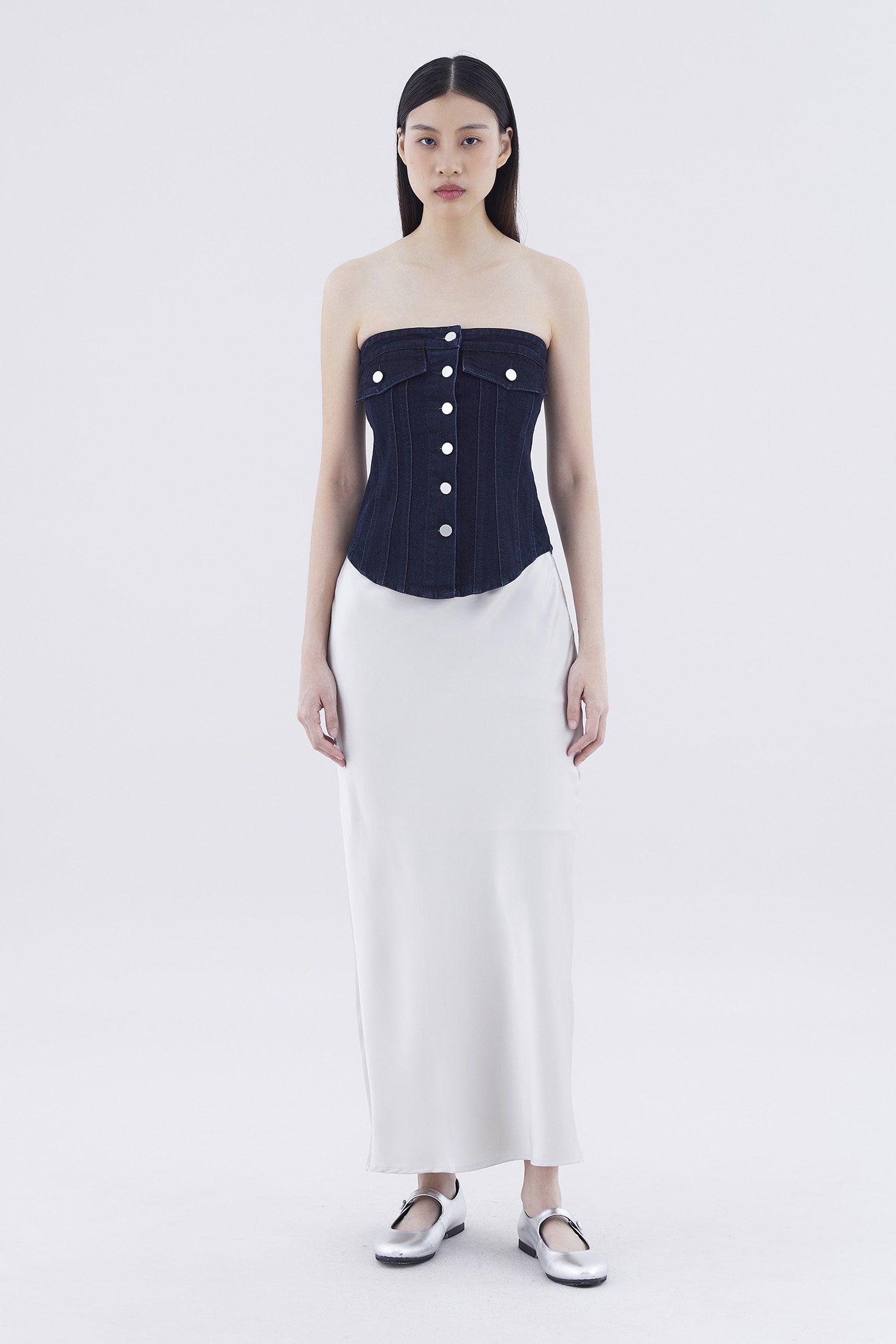 Paisie Button-Down Denim Tube Top