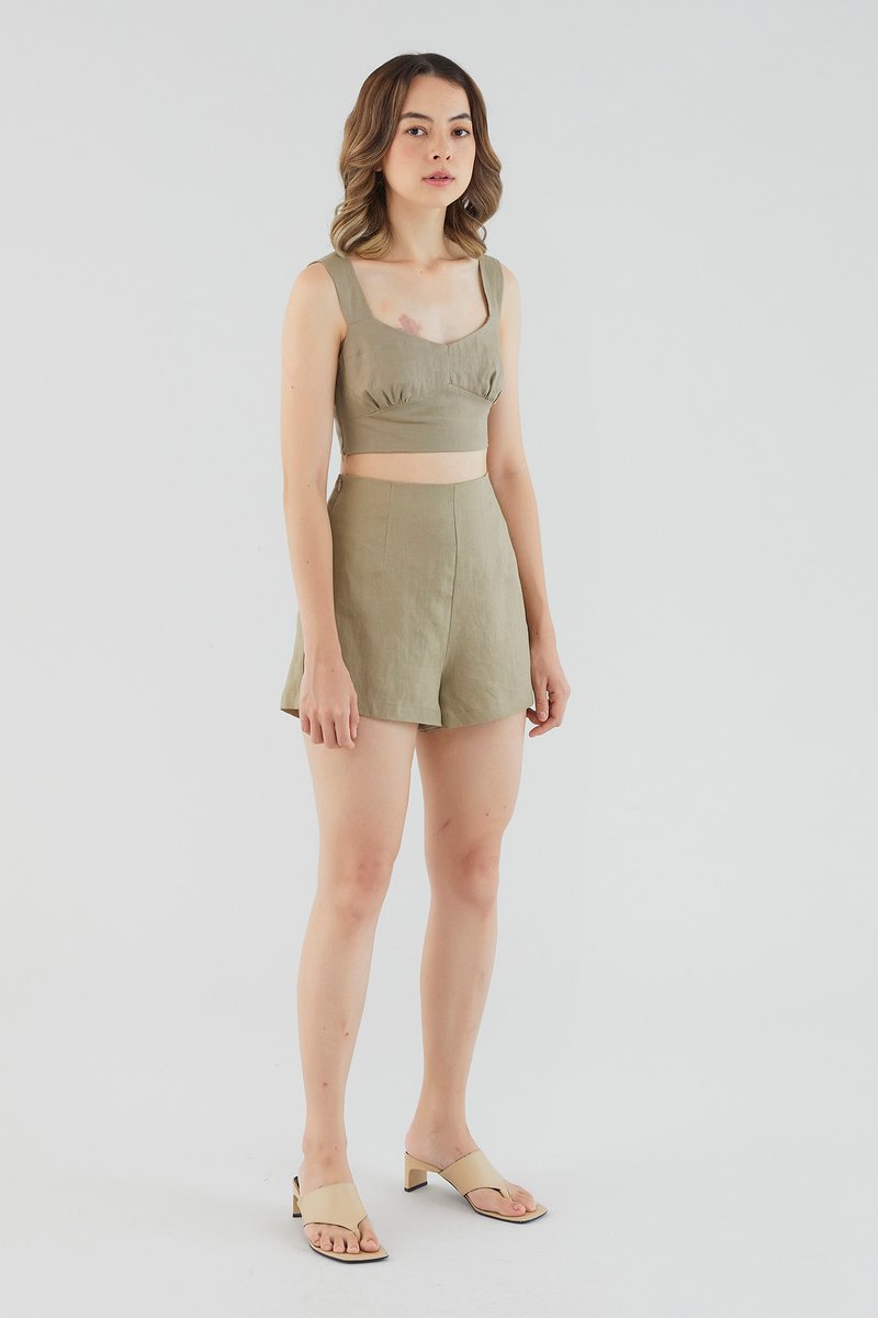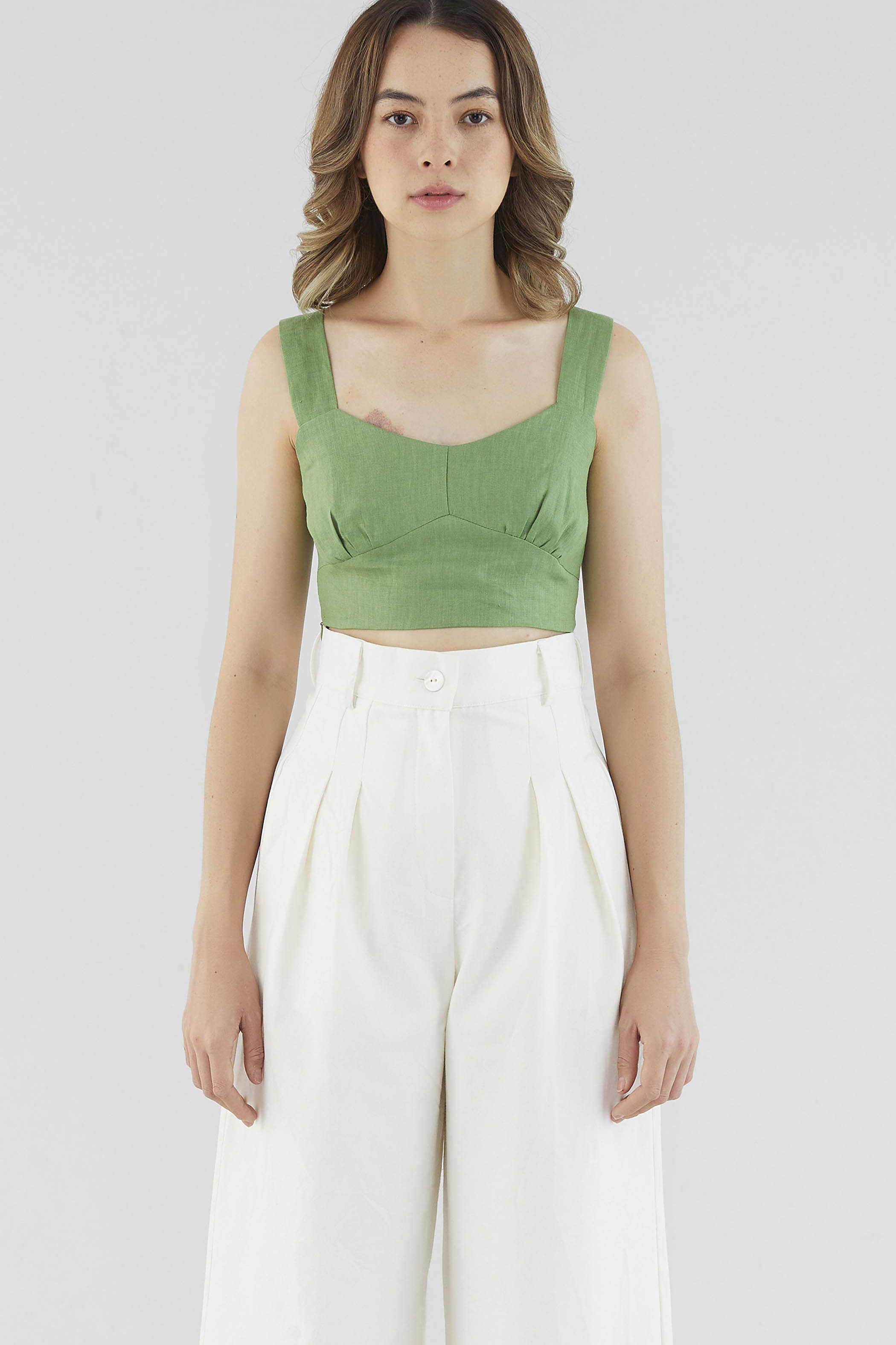 <p><span style="font-weight: 400;">Fabric Composition: 100% Linen</span></p> <p><span style="font-weight: 400;">Lining: Full</span></p> <p><span style="font-weight: 400;">Sheerness: Not sheer</span></p> <p><span style="font-weight: 400;">Pockets: None</span></p> <p><span style="font-weight: 400;">Rotation-ready. Cut from crisp and gently tailored 100% linen, this sleeveless top features wide straps, a dipped neckline, a ruched bust and a smocked back. Fits slim in a cropped length with a zip closure on the side. </span></p> <p><span style="font-weight: 400;">Care Instructions: Do not soak / Do not bleach / Handwash or Machine wash on gentle mode / Do not machine dry / Iron using low heat</span></p> <p><i><span style="font-weight: 400;">This piece is made from 100% linen, the unsung hero of hot days and one of the least environmentally damaging fabrics. Derived from the unfussy flax plant, not only does its cultivation consume significantly less water, pesticides and arable land — but linen’s excellent durability and biodegradable nature also means your clothes have a longer, more waste-free life cycle.</span></i></p>