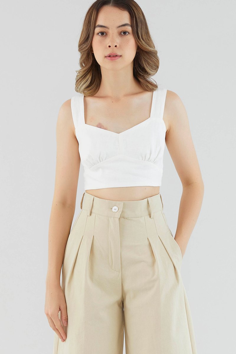 <p><span style="font-weight: 400;">Fabric Composition: 100% Linen</span></p> <p><span style="font-weight: 400;">Lining: Full</span></p> <p><span style="font-weight: 400;">Sheerness: Not sheer</span></p> <p><span style="font-weight: 400;">Pockets: None</span></p> <p><span style="font-weight: 400;">Rotation-ready. Cut from crisp and gently tailored 100% linen, this sleeveless top features wide straps, a dipped neckline, a ruched bust and a smocked back. Fits slim in a cropped length with a zip closure on the side. </span></p> <p><span style="font-weight: 400;">Care Instructions: Do not soak / Do not bleach / Handwash or Machine wash on gentle mode / Do not machine dry / Iron using low heat</span></p> <p><i><span style="font-weight: 400;">This piece is made from 100% linen, the unsung hero of hot days and one of the least environmentally damaging fabrics. Derived from the unfussy flax plant, not only does its cultivation consume significantly less water, pesticides and arable land — but linen’s excellent durability and biodegradable nature also means your clothes have a longer, more waste-free life cycle.</span></i></p>