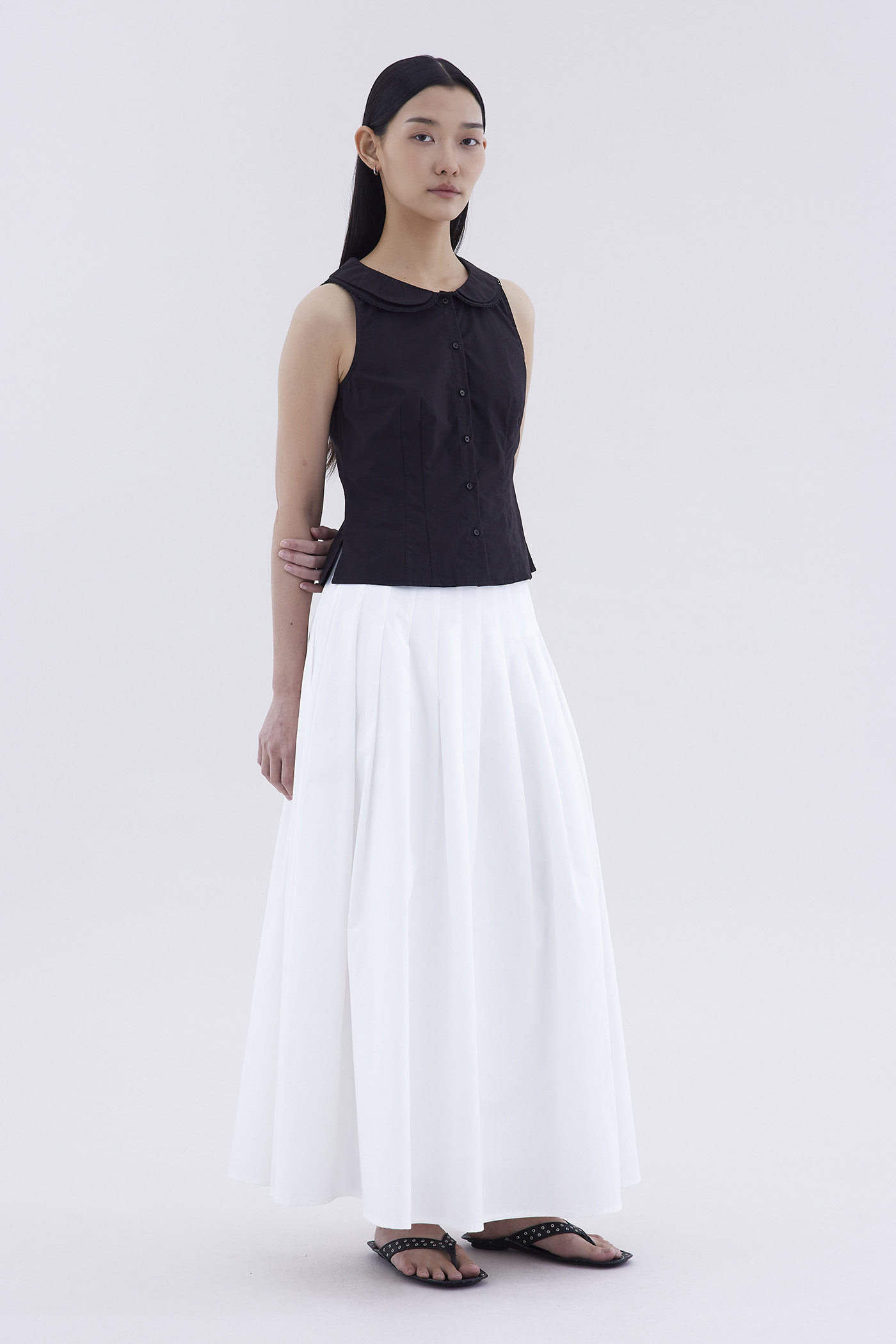 Playful touches. Made from crisp and softly structured cotton, this sleeveless shirt features layered, lace-trimmed collars, a round neckline, panelled construction and button-down front. Worn in a slim fit.