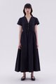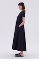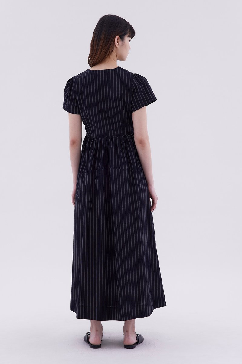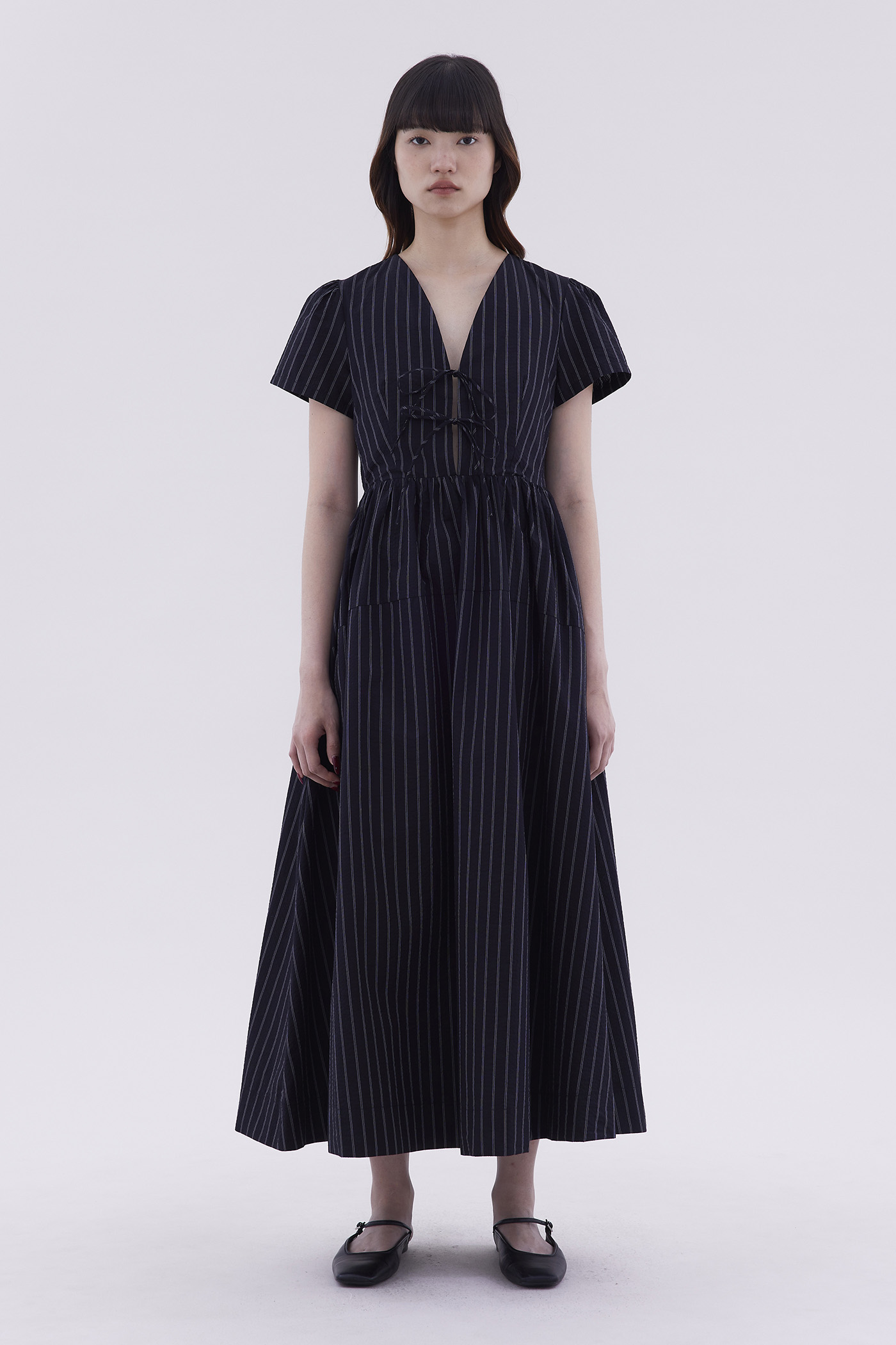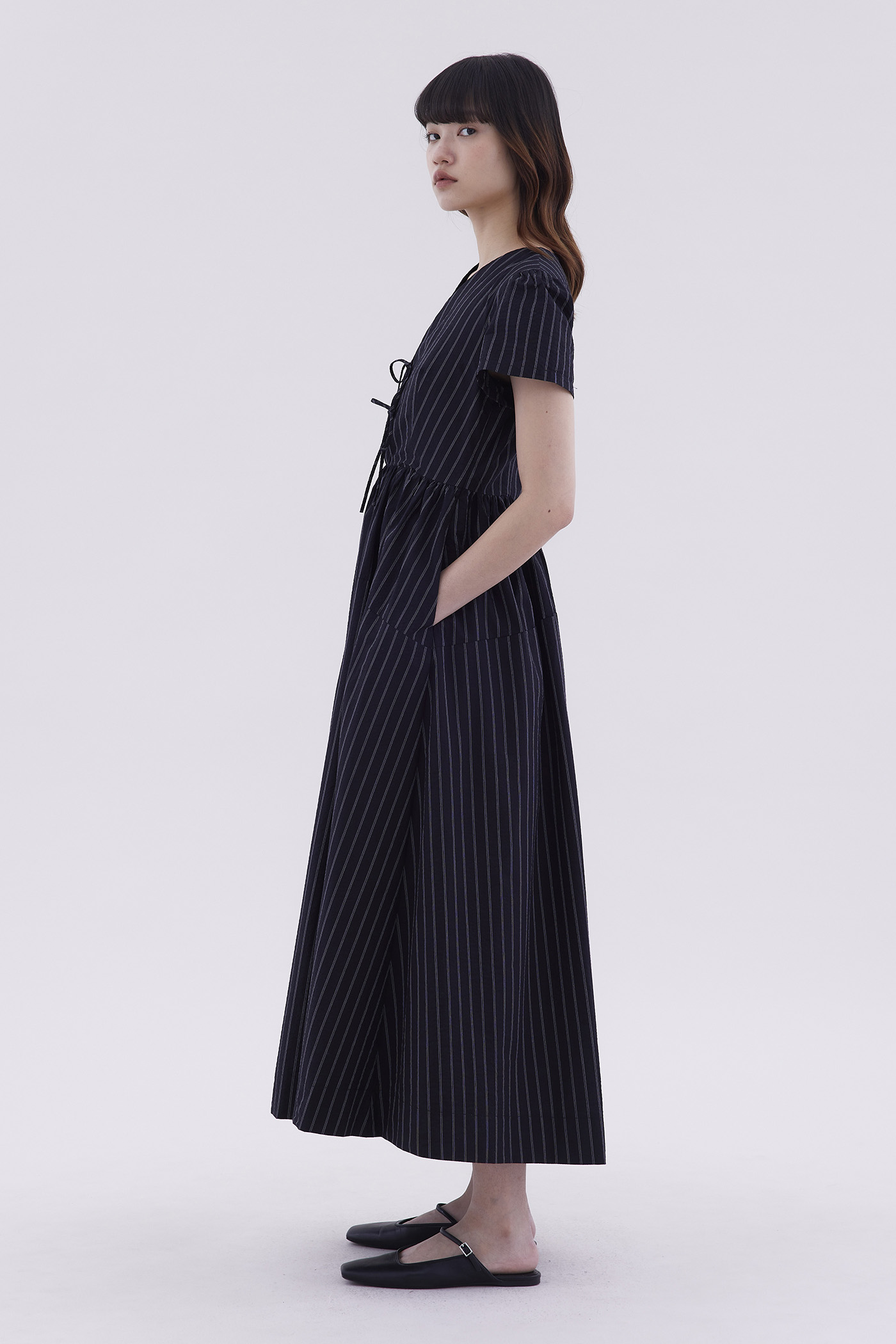Earn your stripes. Made from crisp and softly structured cotton, this maxi dress features short sleeves, a plunging V-neckline with double tie-straps and a side zip closure. Worn in a slim fit.