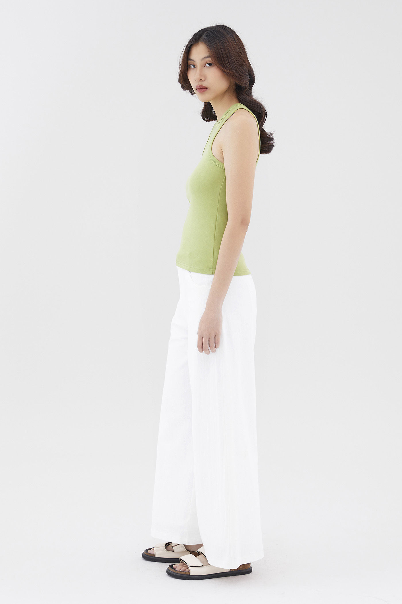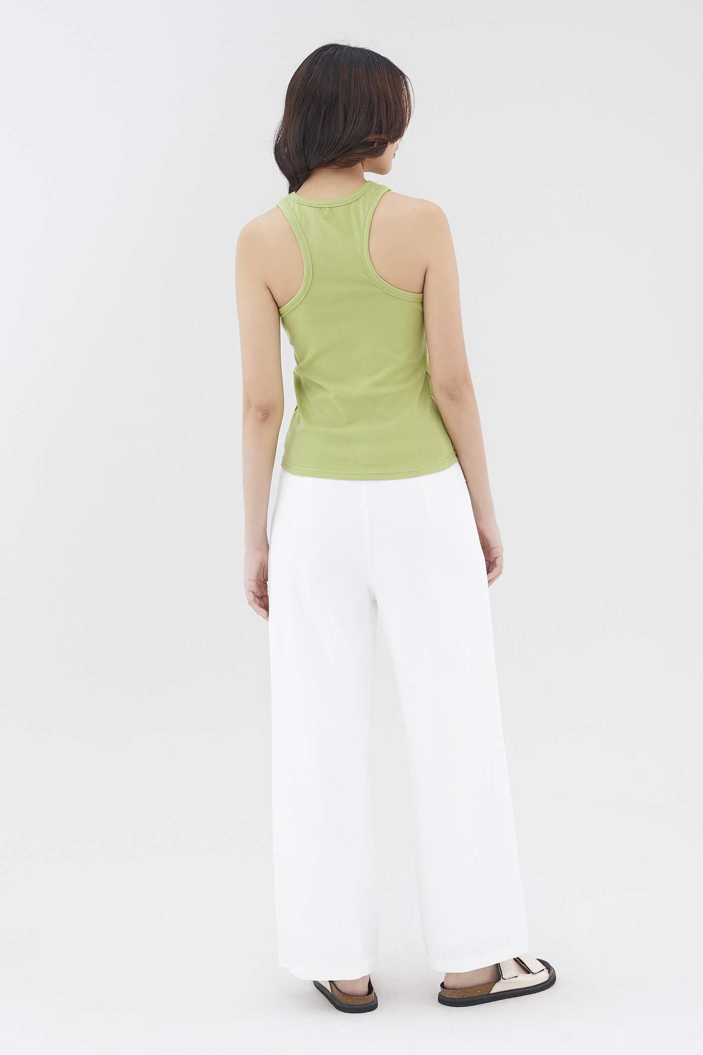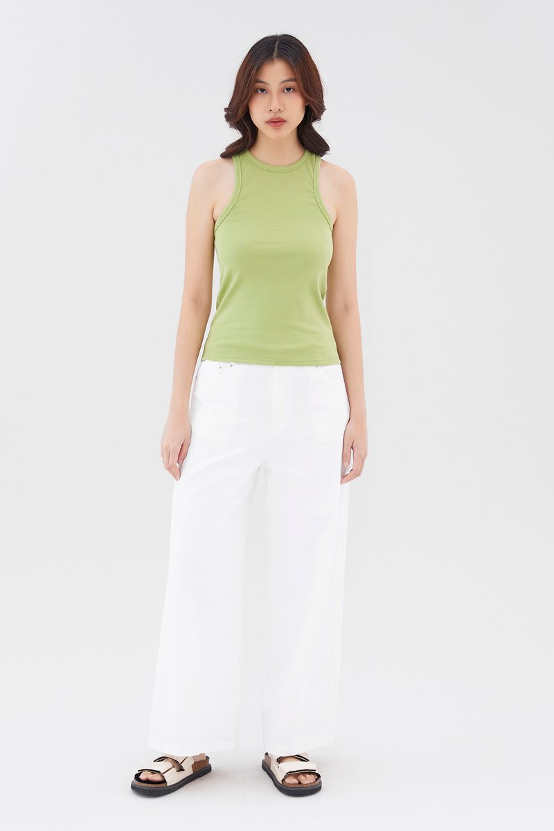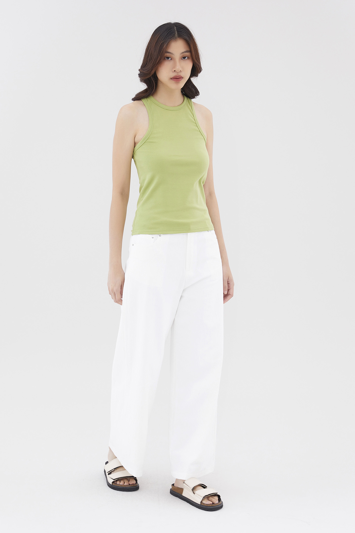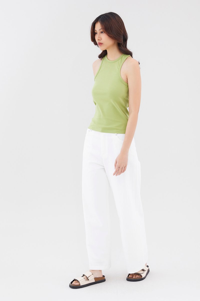 Rotation ready. Made from smooth and stretchy fabric, this sleeveless top features a round neckline and a racerback silhouette. Worn in a slim fit.