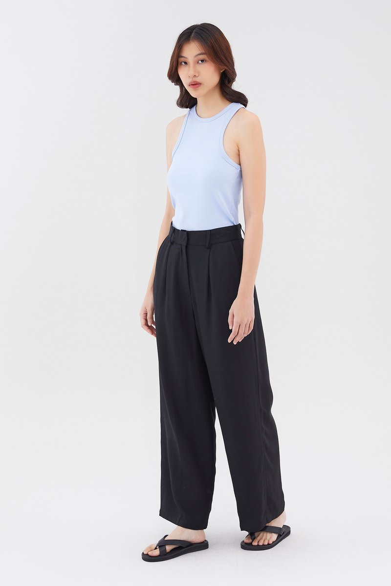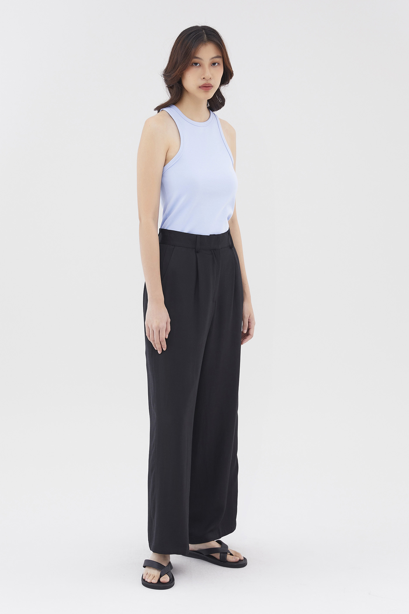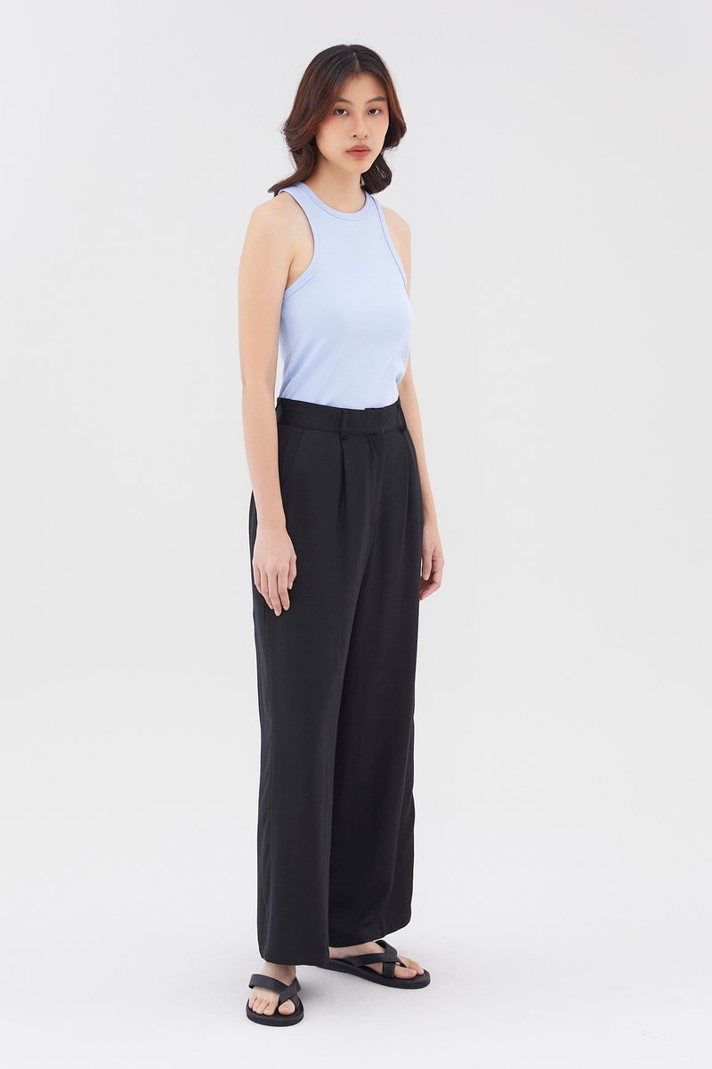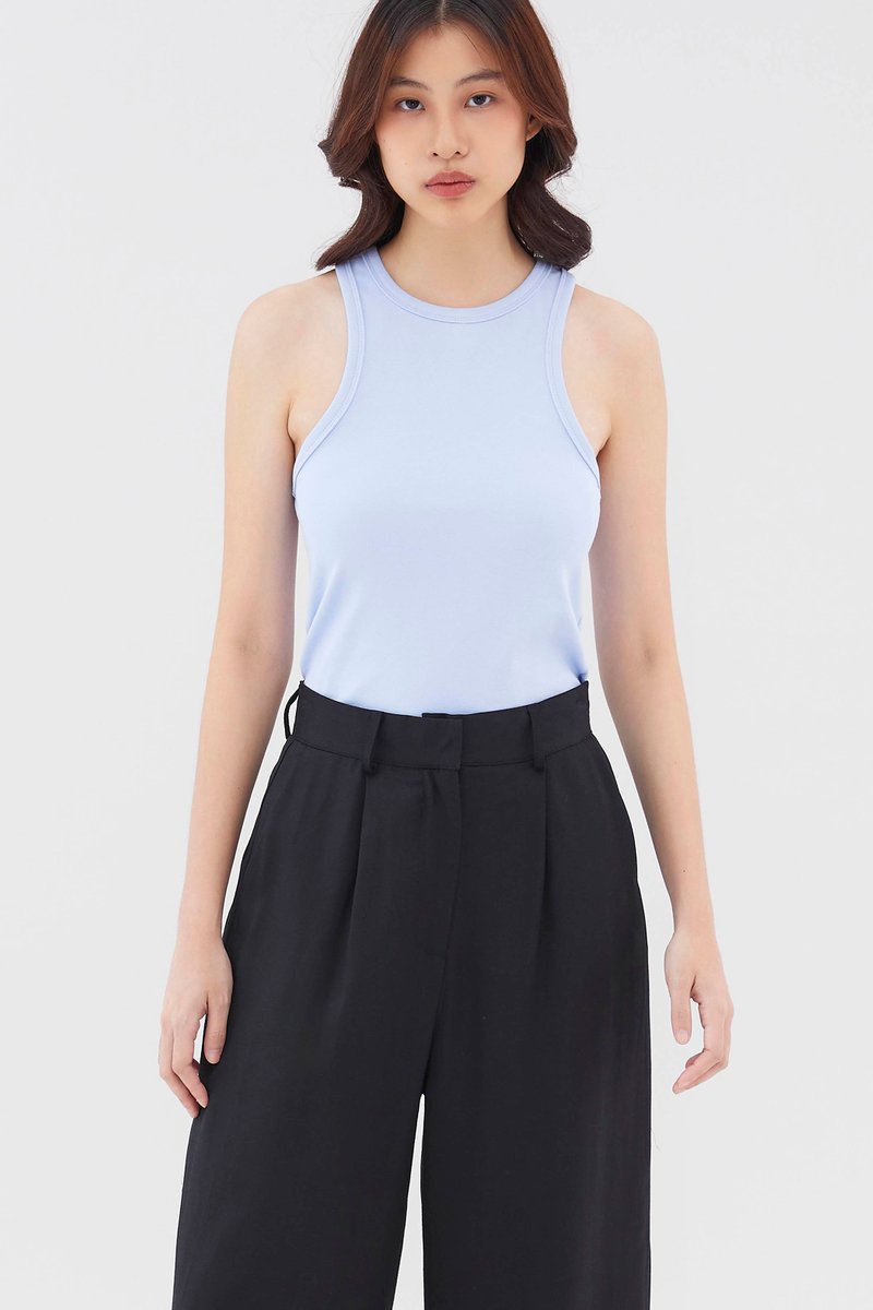 Rotation ready. Made from smooth and stretchy fabric, this sleeveless top features a round neckline and a racerback silhouette. Worn in a slim fit.