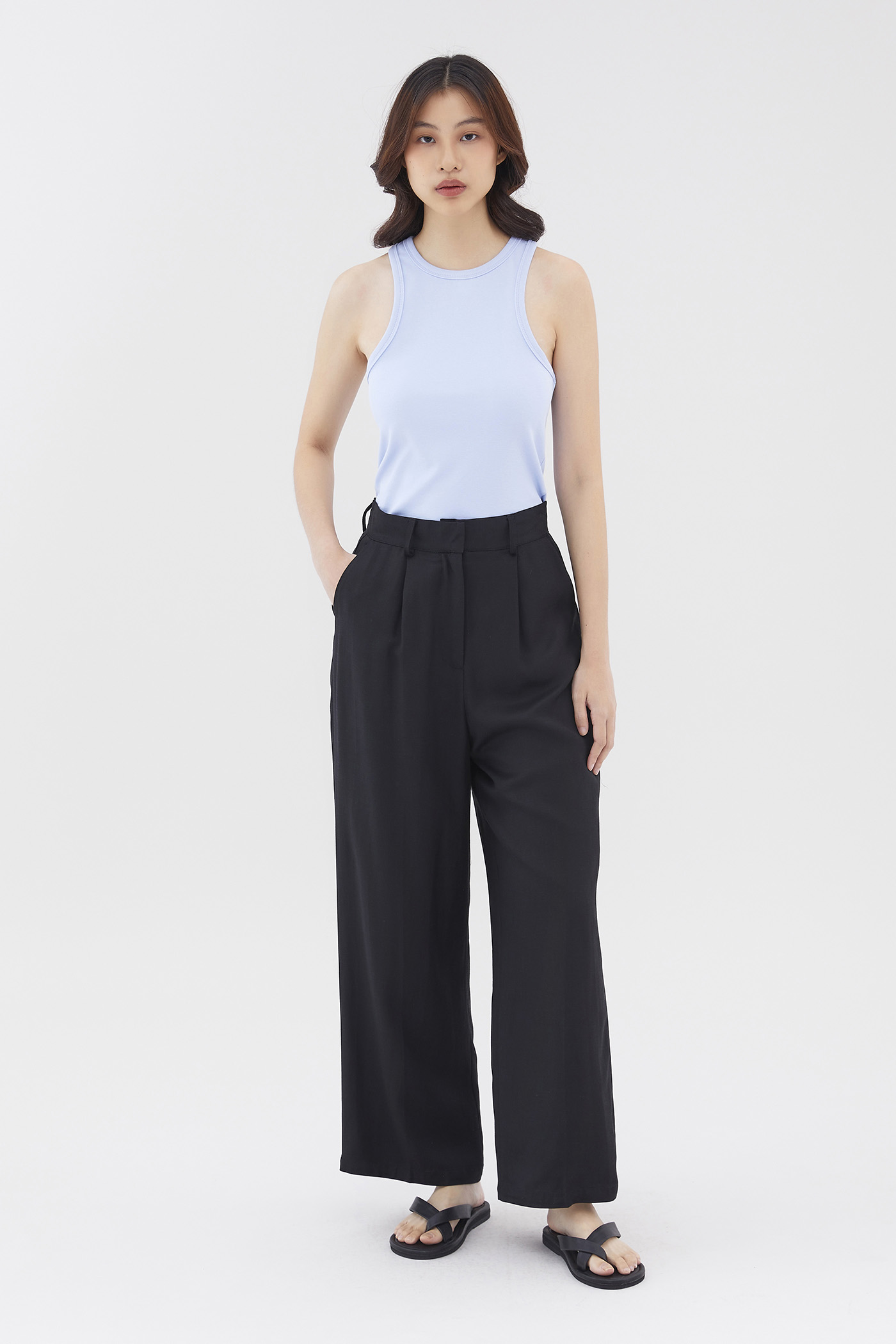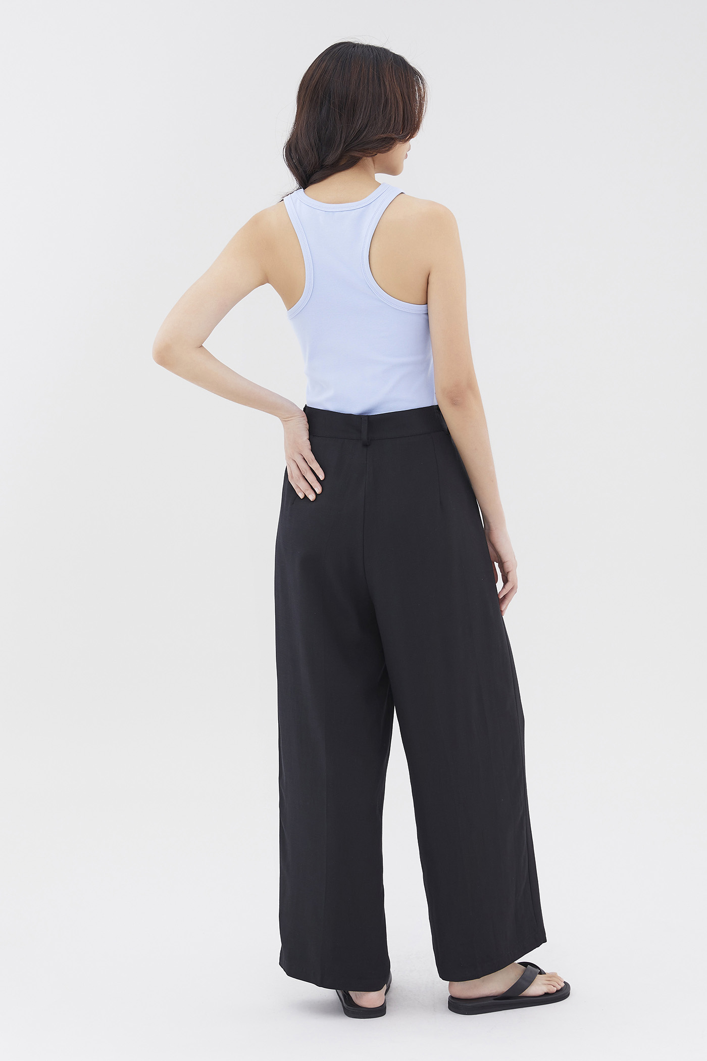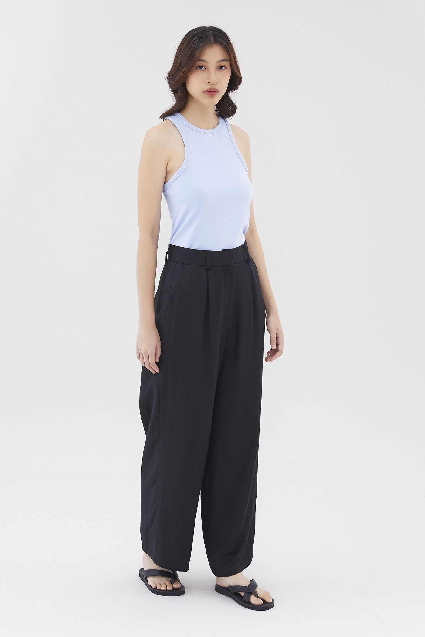 Rotation ready. Made from smooth and stretchy fabric, this sleeveless top features a round neckline and a racerback silhouette. Worn in a slim fit.