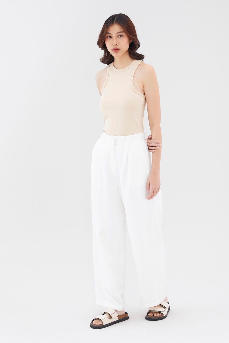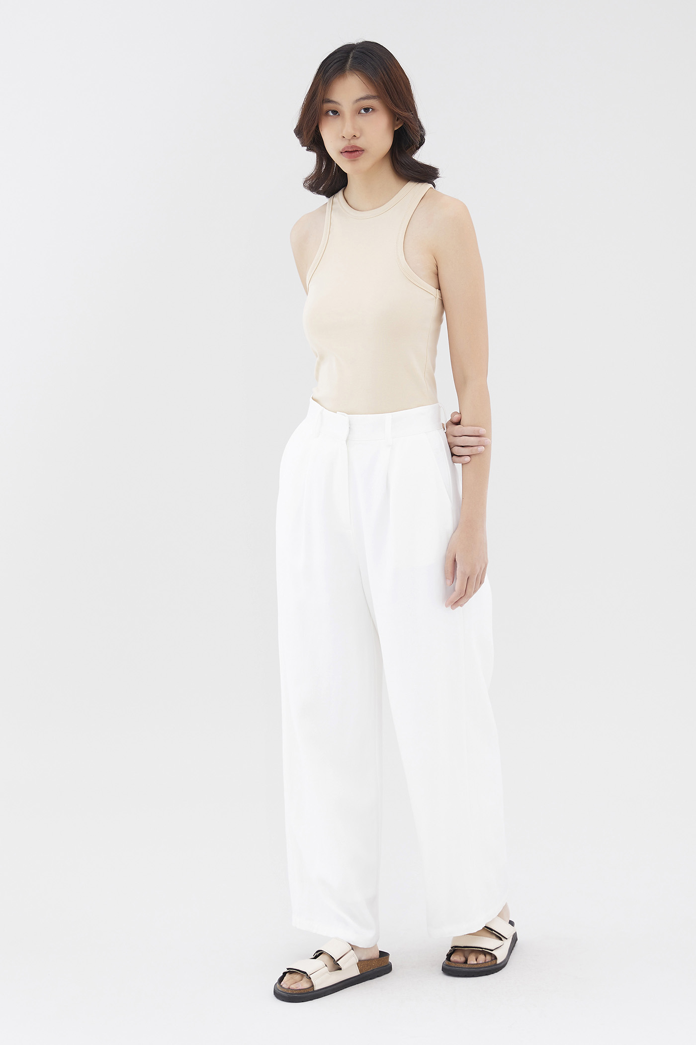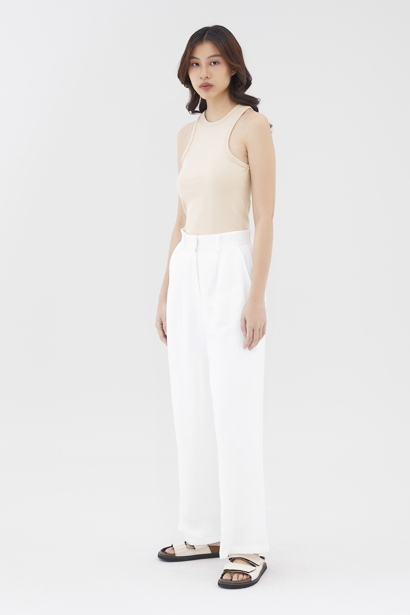 Rotation ready. Made from smooth and stretchy fabric, this sleeveless top features a round neckline and a racerback silhouette. Worn in a slim fit.