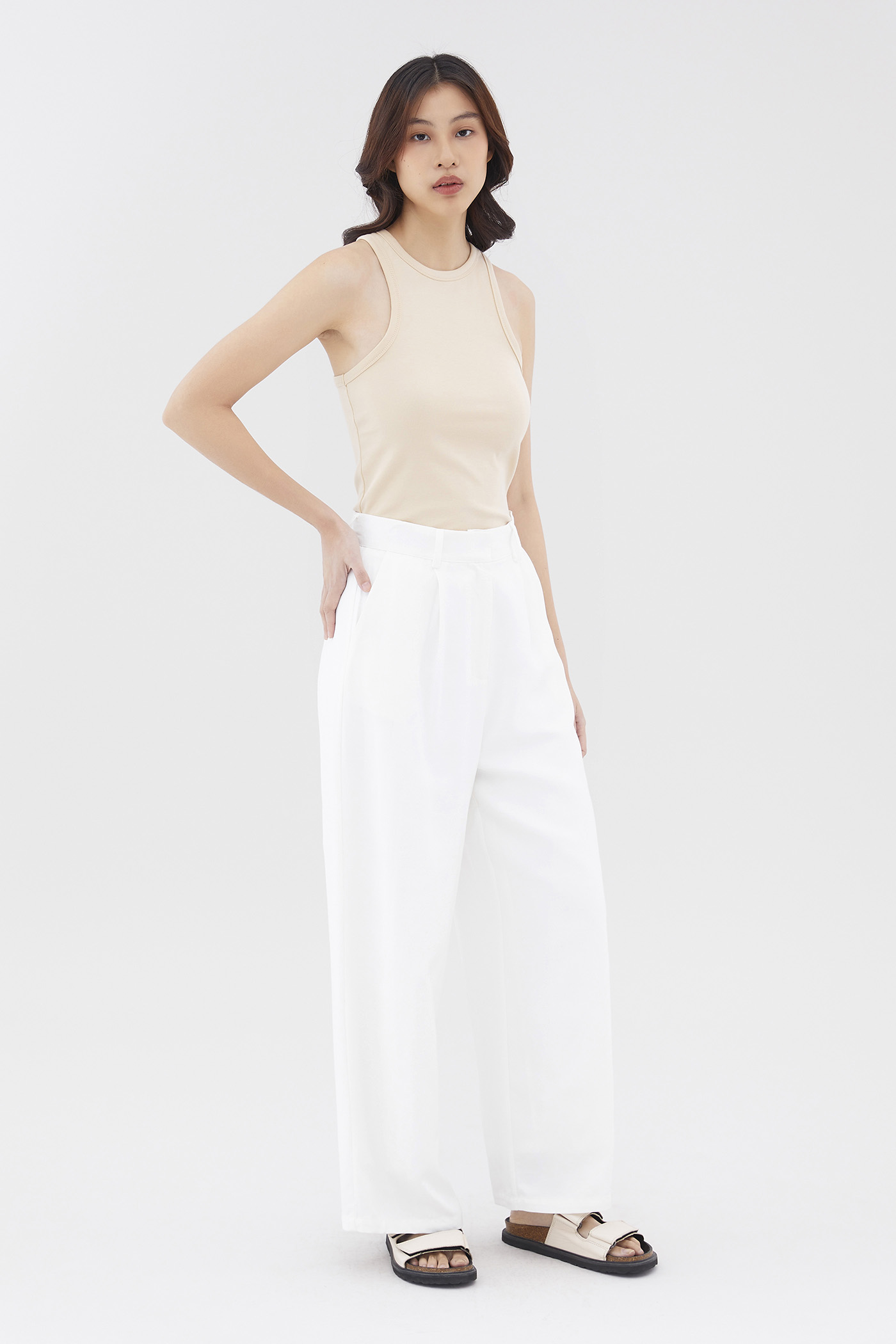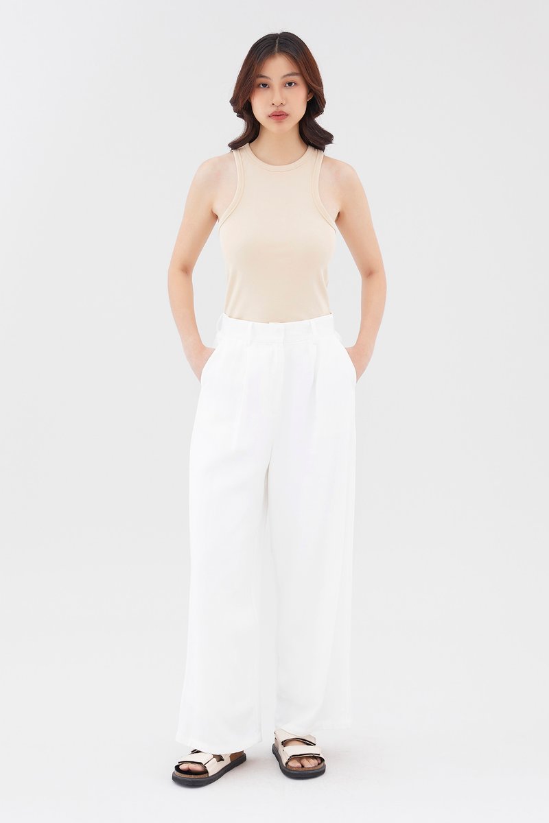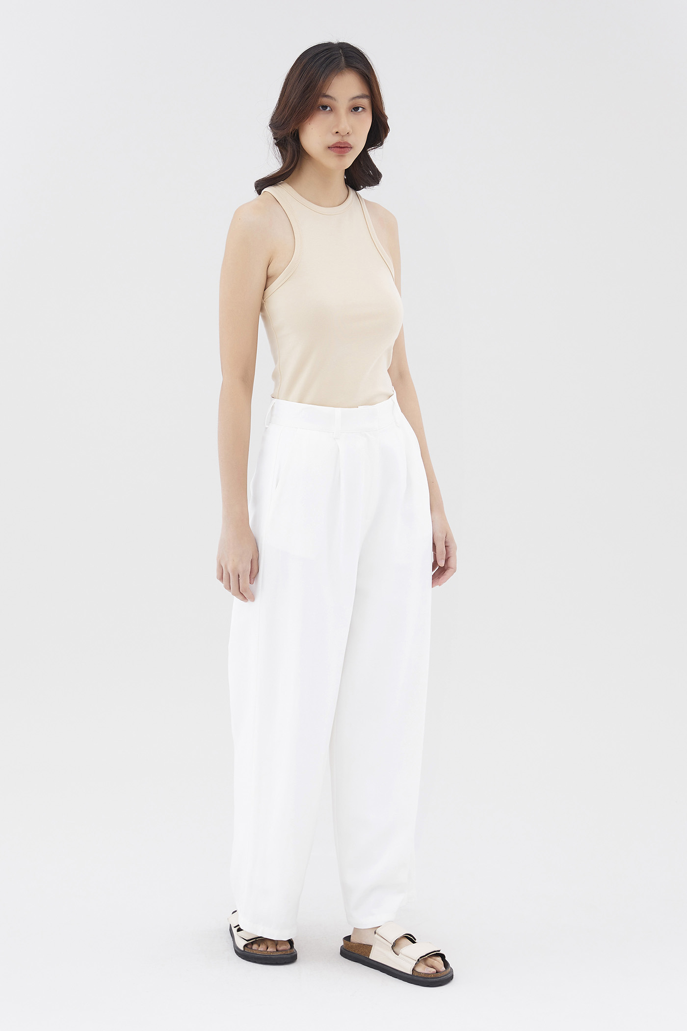 Rotation ready. Made from smooth and stretchy fabric, this sleeveless top features a round neckline and a racerback silhouette. Worn in a slim fit.