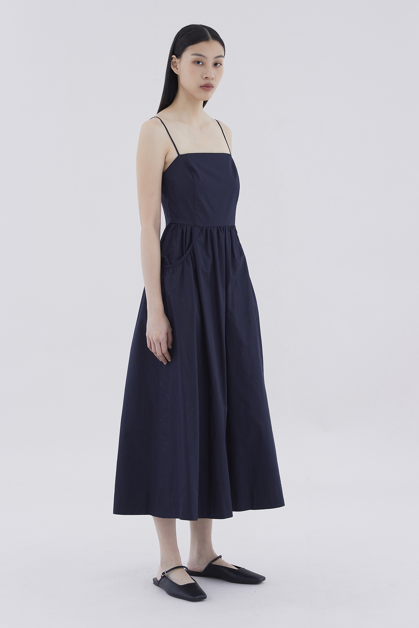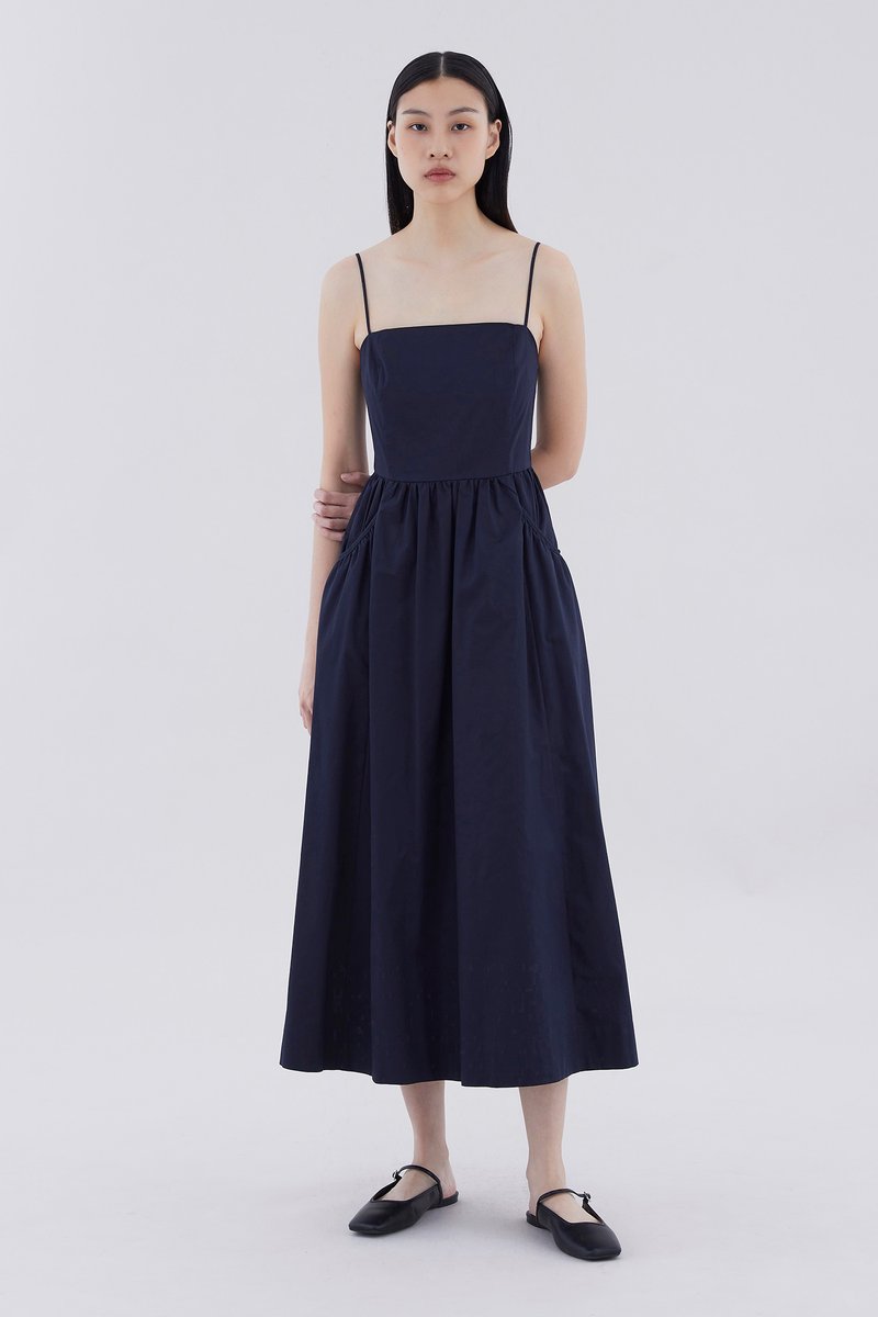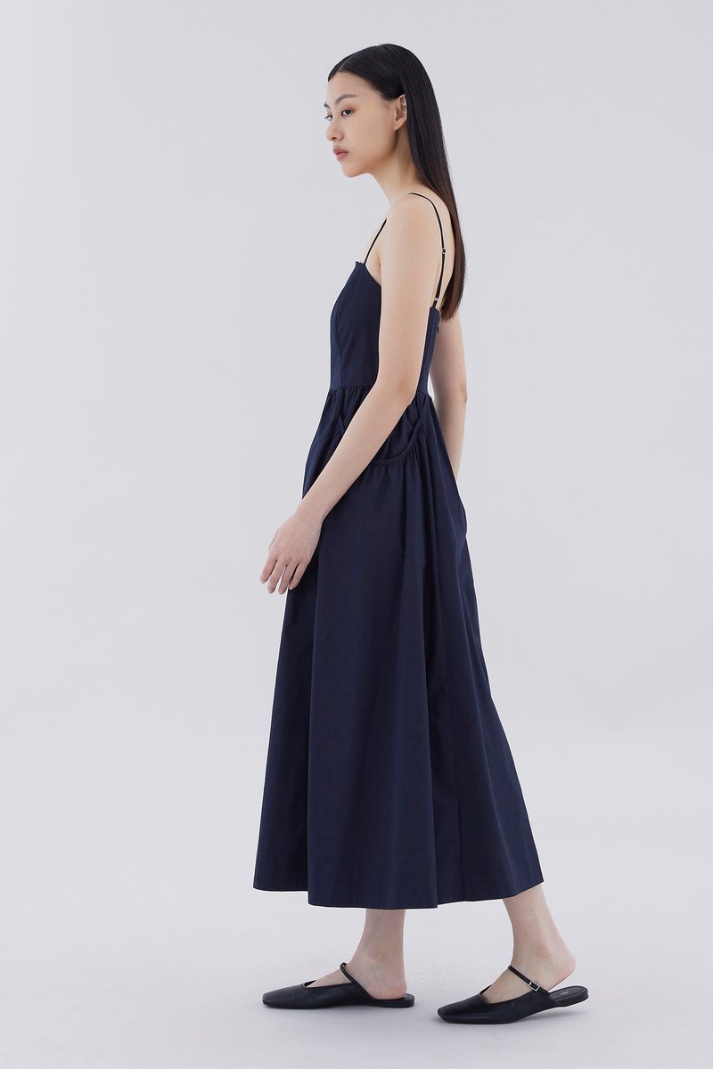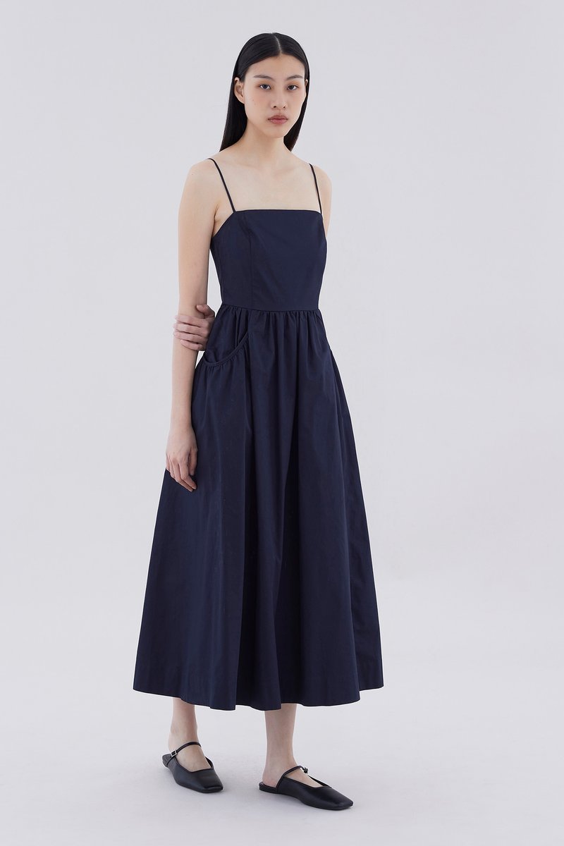Comes with pockets. Made from crisp and softly structured cotton, this sleeveless maxi dress features slim adjustable shoulder straps, a square neckline, a back zip closure and oversized side pockets. Worn in an A-line silhouette that fits slimmer at the waist before flaring out in a relaxed skirt.