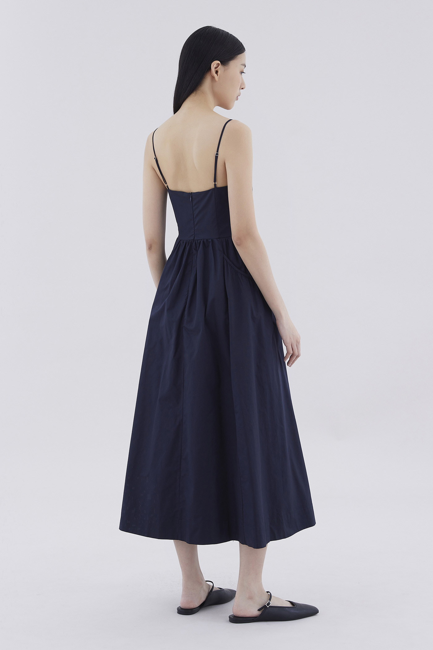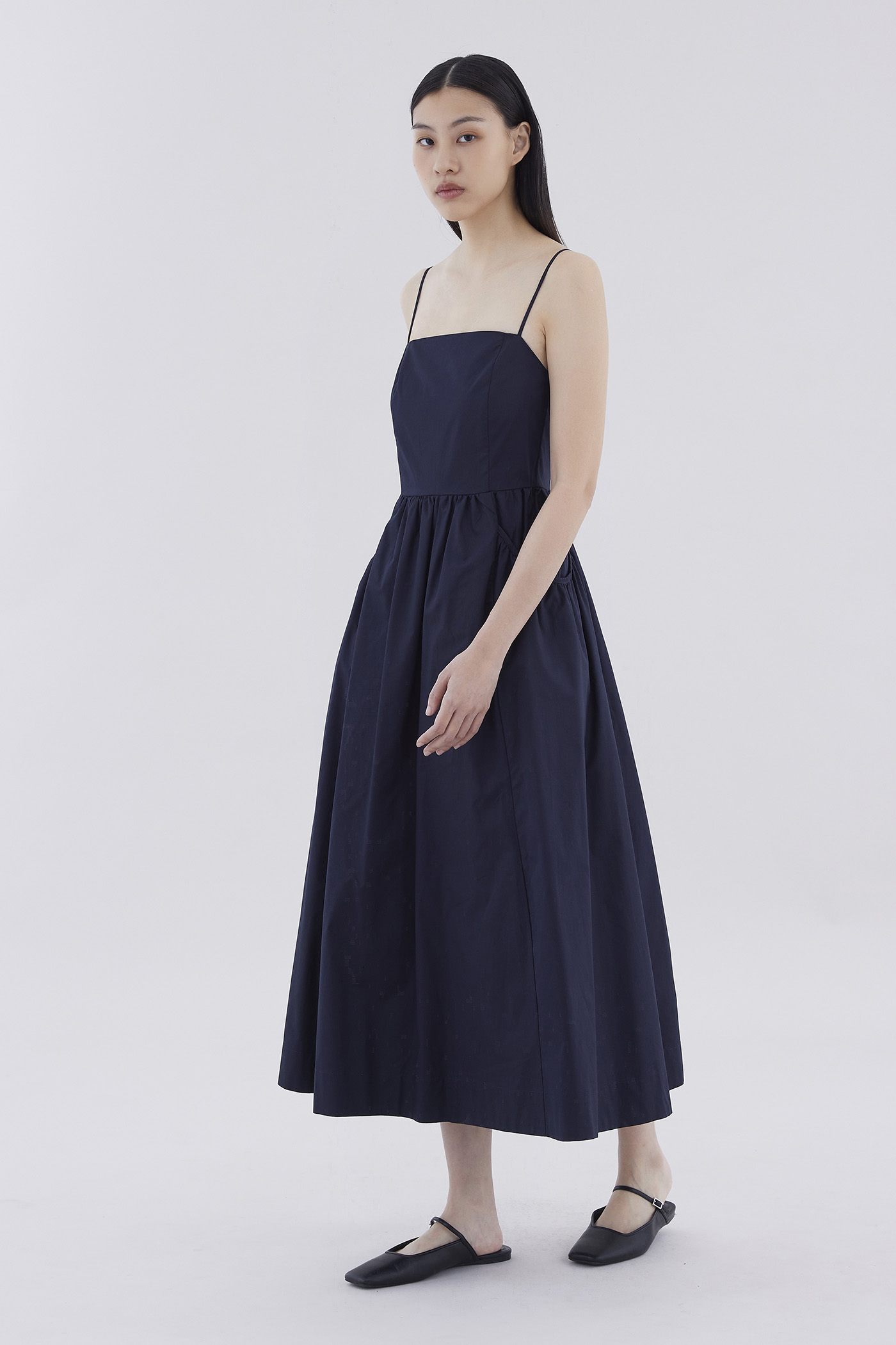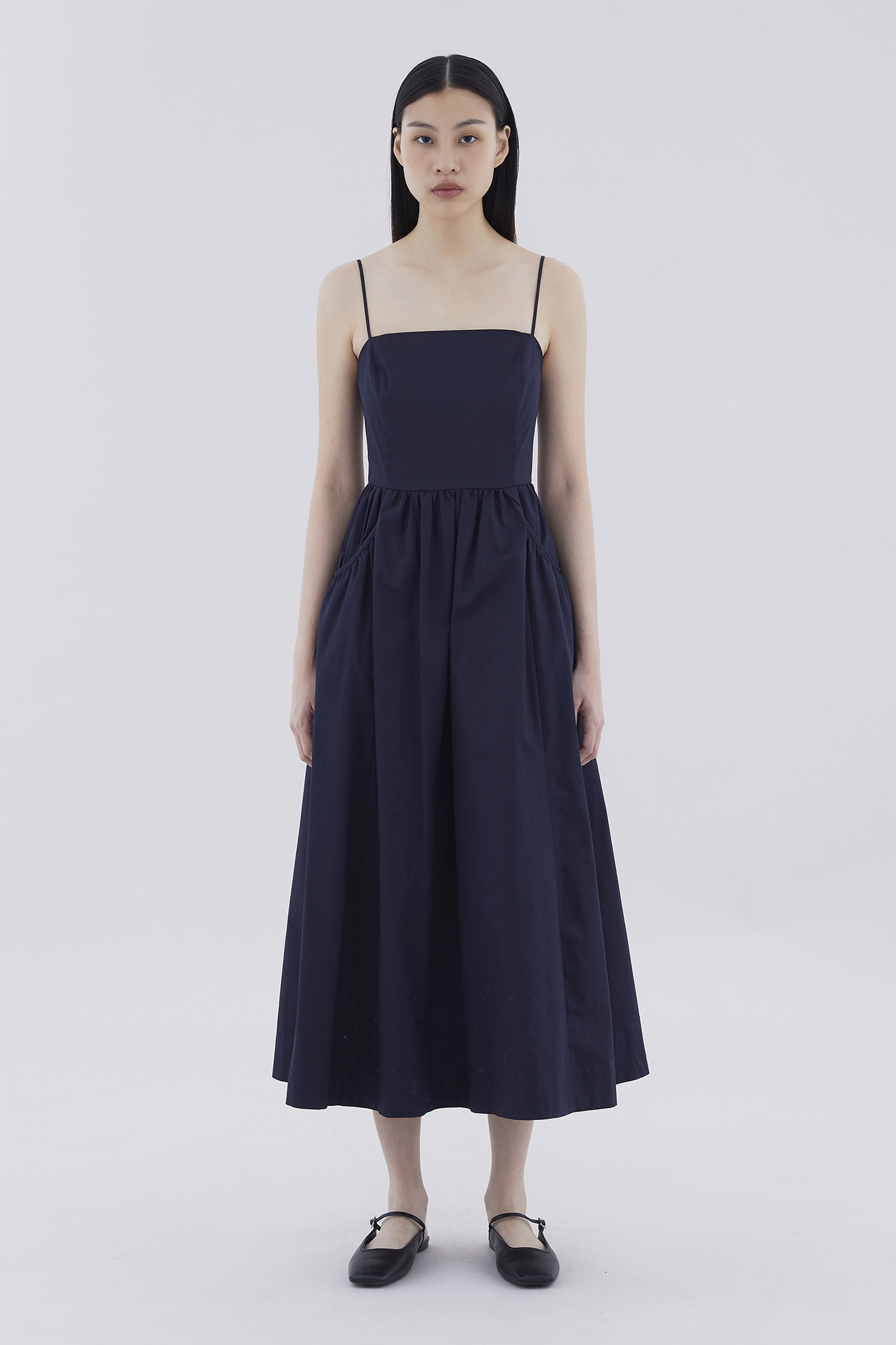 Comes with pockets. Made from crisp and softly structured cotton, this sleeveless maxi dress features slim adjustable shoulder straps, a square neckline, a back zip closure and oversized side pockets. Worn in an A-line silhouette that fits slimmer at the waist before flaring out in a relaxed skirt.