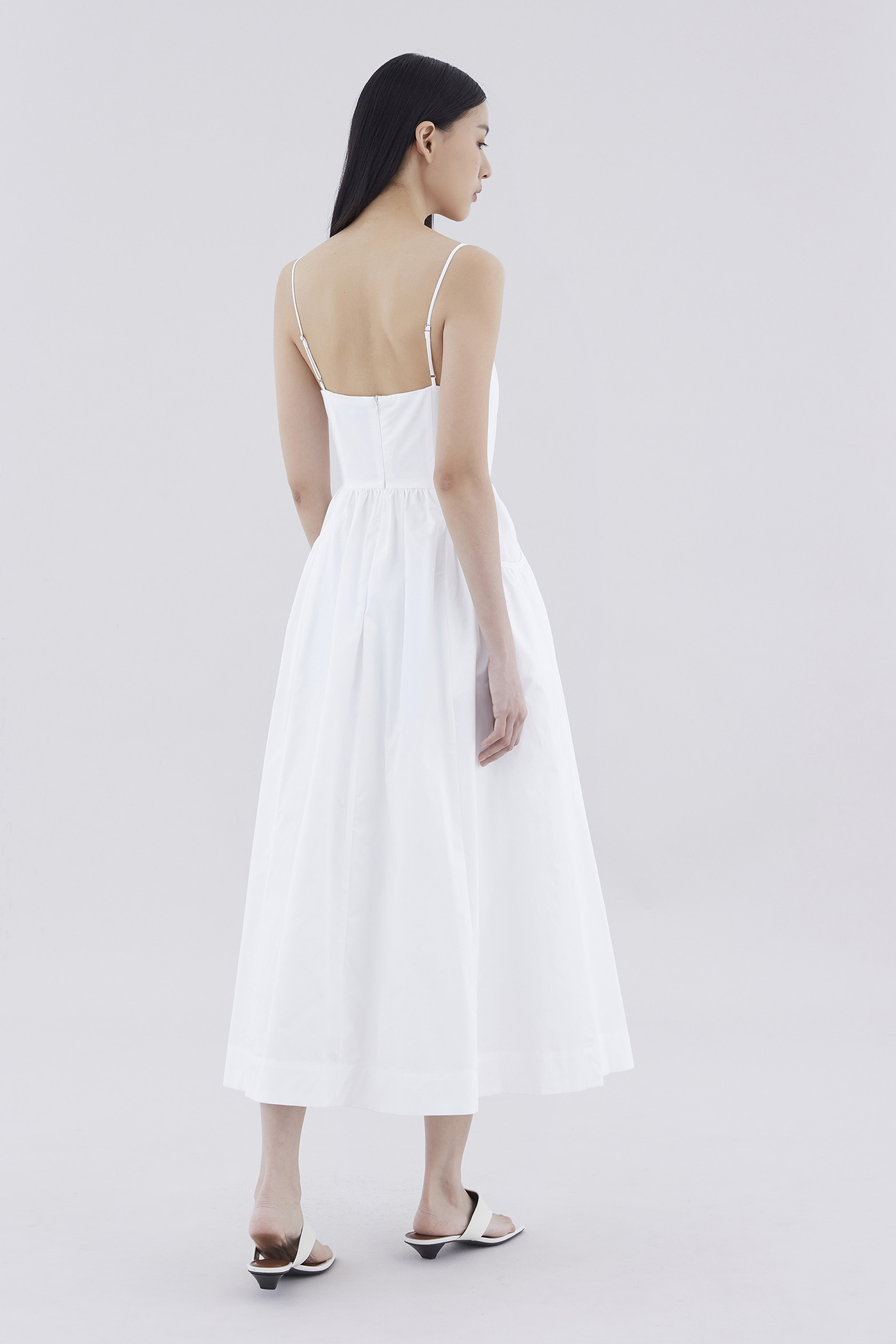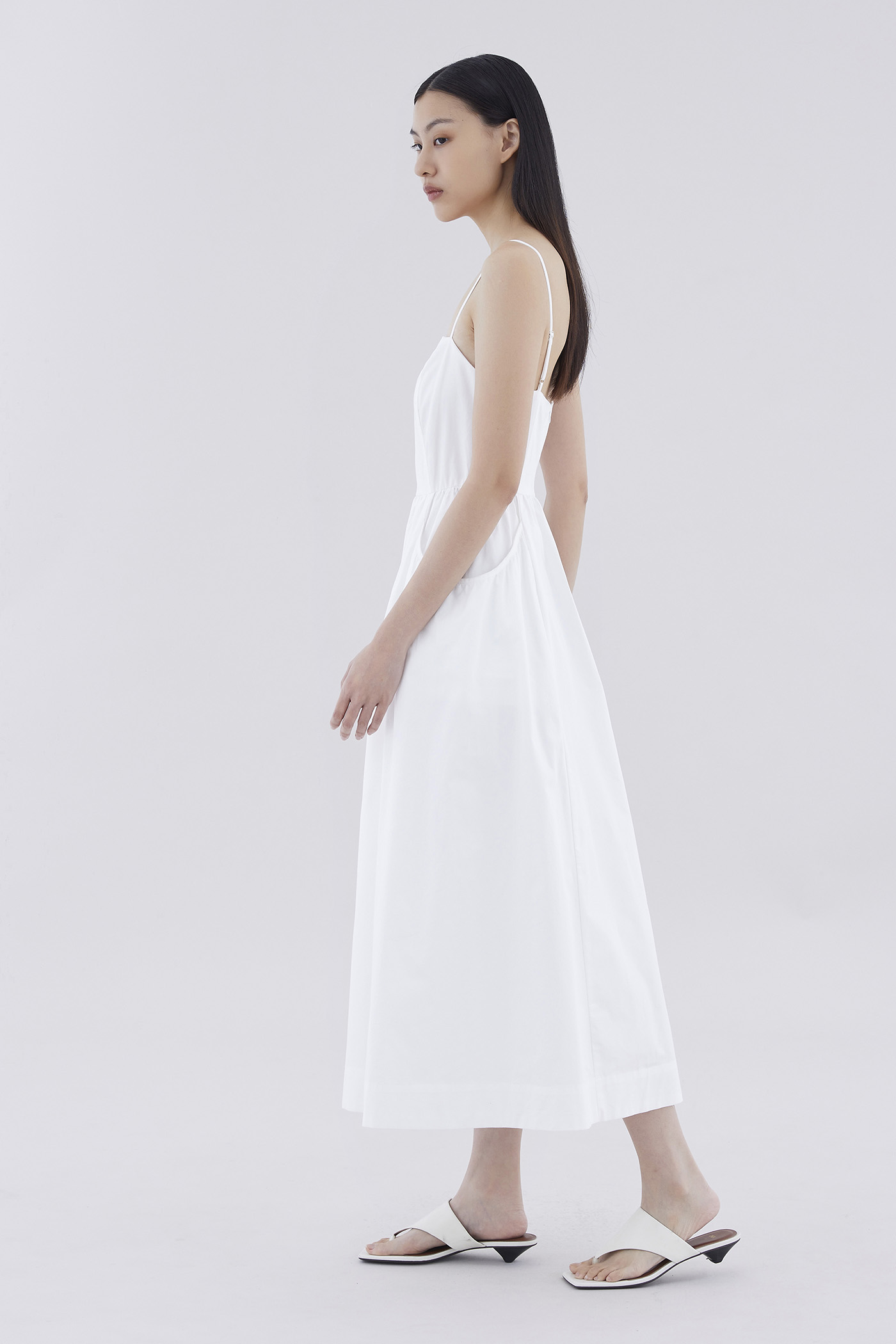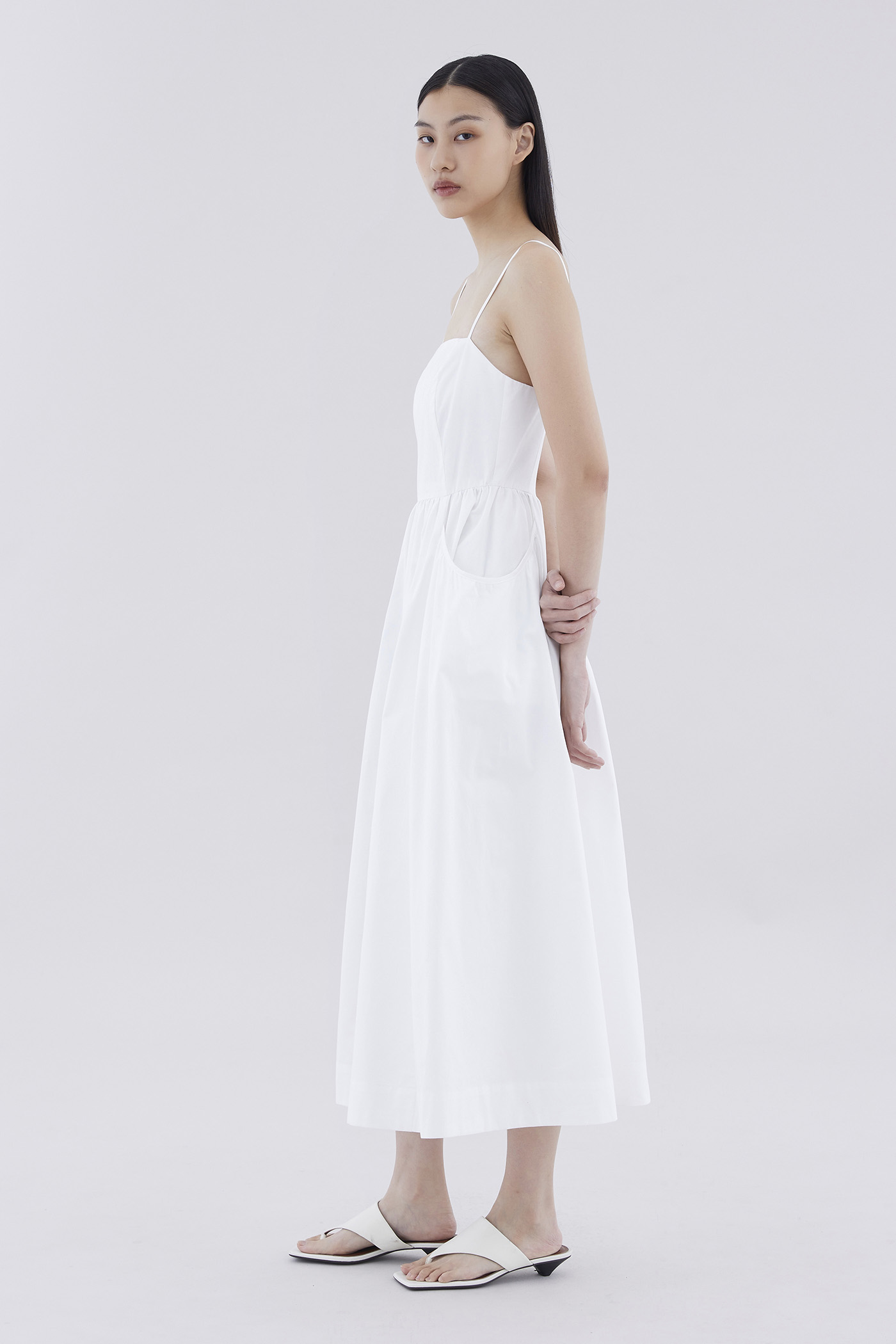 Comes with pockets. Made from crisp and softly structured cotton, this sleeveless maxi dress features slim adjustable shoulder straps, a square neckline, a back zip closure and oversized side pockets. Worn in an A-line silhouette that fits slimmer at the waist before flaring out in a relaxed skirt.