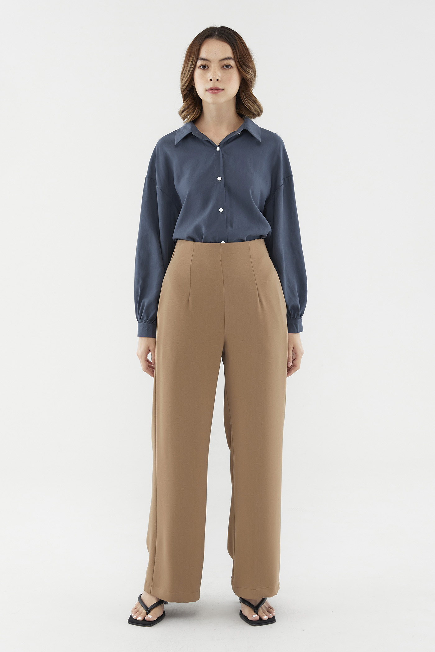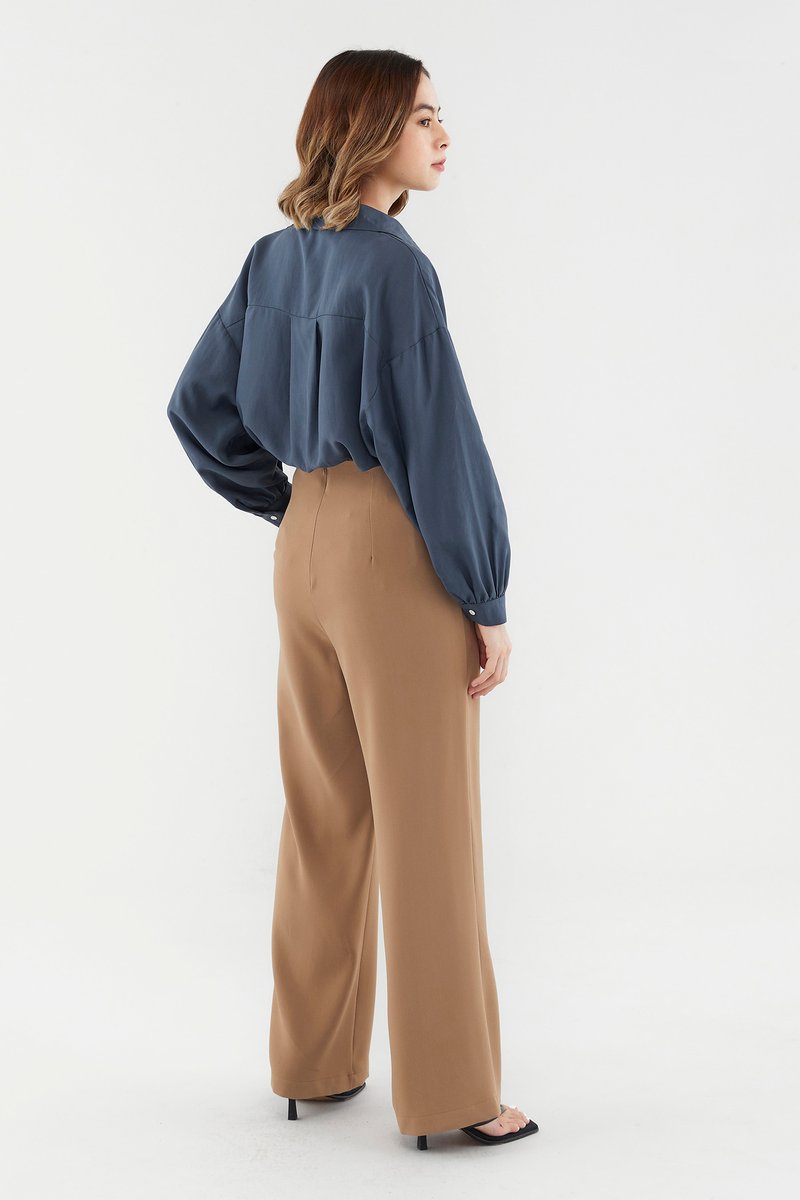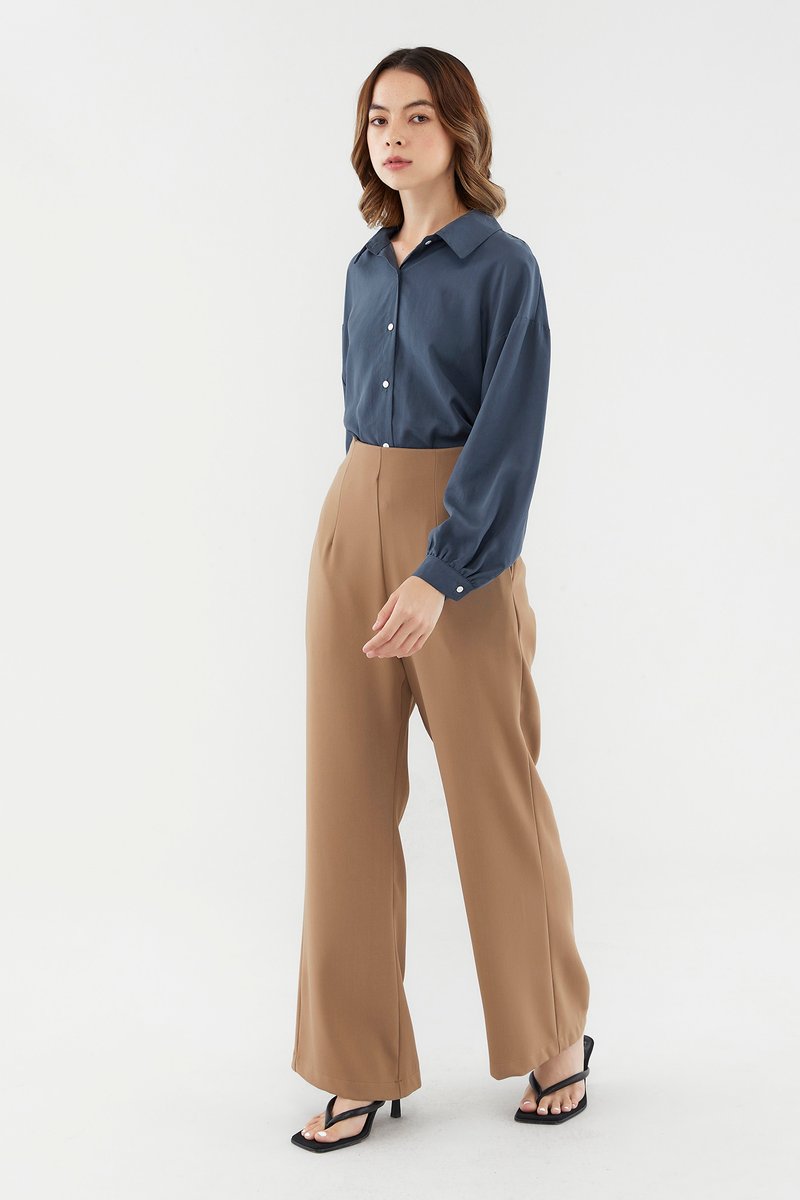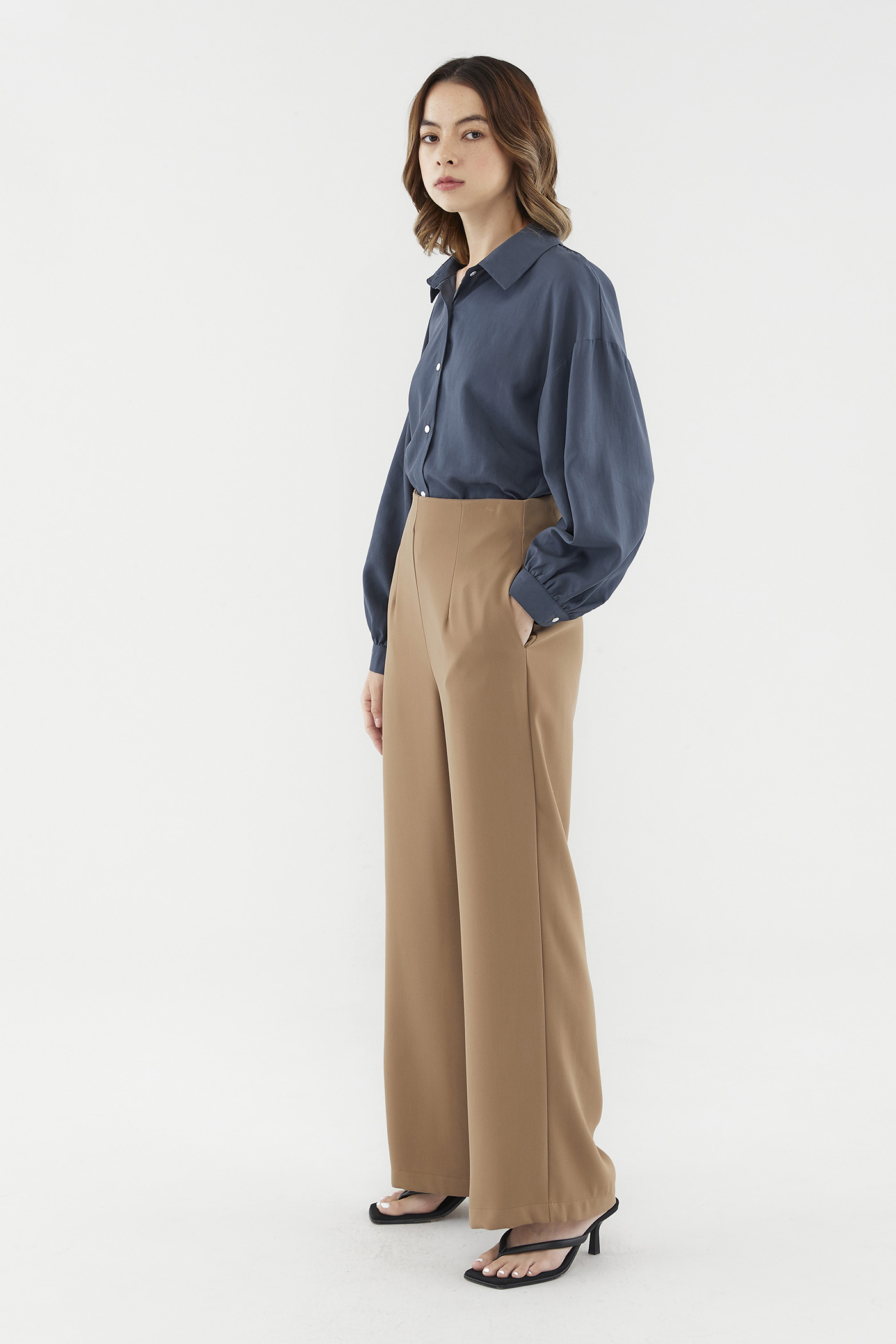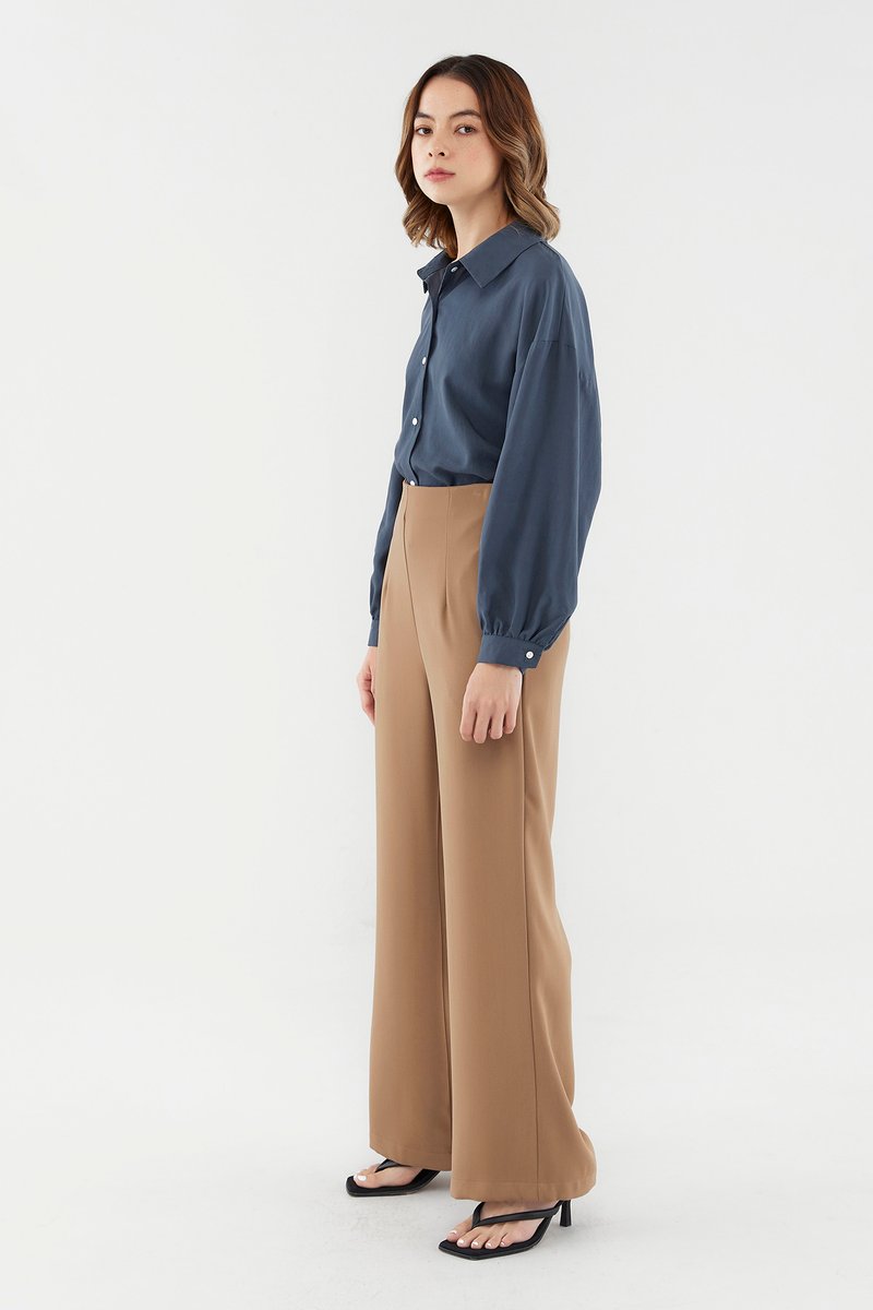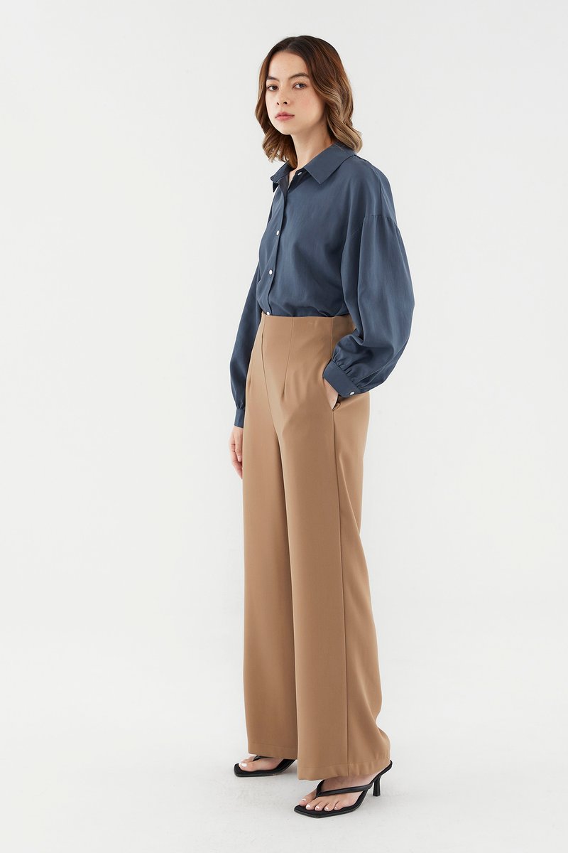 Bring on the flair. Cut from non-stretch and non-sheer fabric, these pants flaunt flowy wide legs that are slightly flared at the end, two functional side pockets, and panelling on the front and back for added polish. Worn in a slim fit with a zip closure on the back.