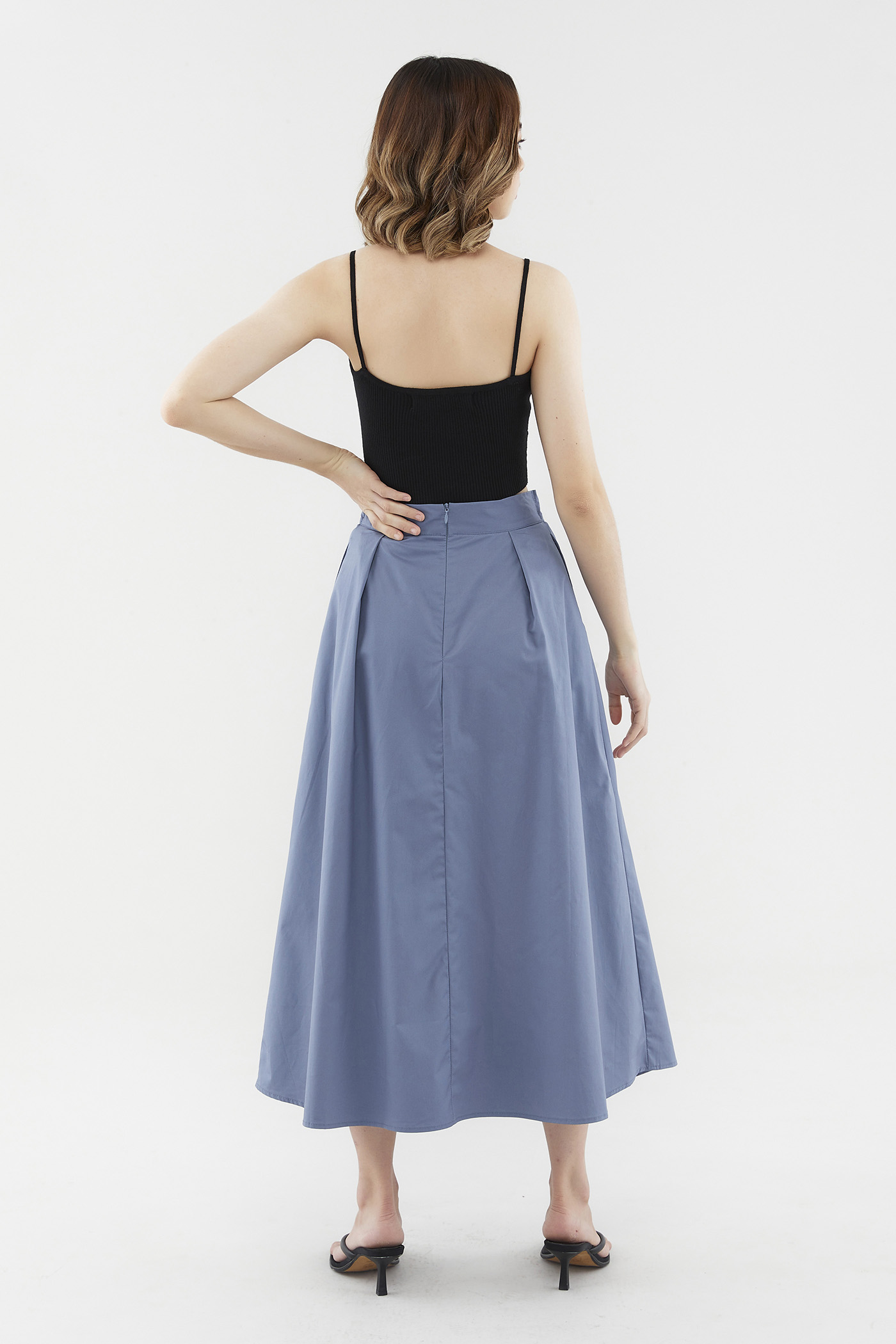 Clean lines. Made from fully lined and softly structured cotton, this skirt features a flattering A-line silhouette, a faux-wrap design on the front with a self-tying closure, and two functional side pockets. Worn in a slim fit and midi length, with a zip closure on the back.