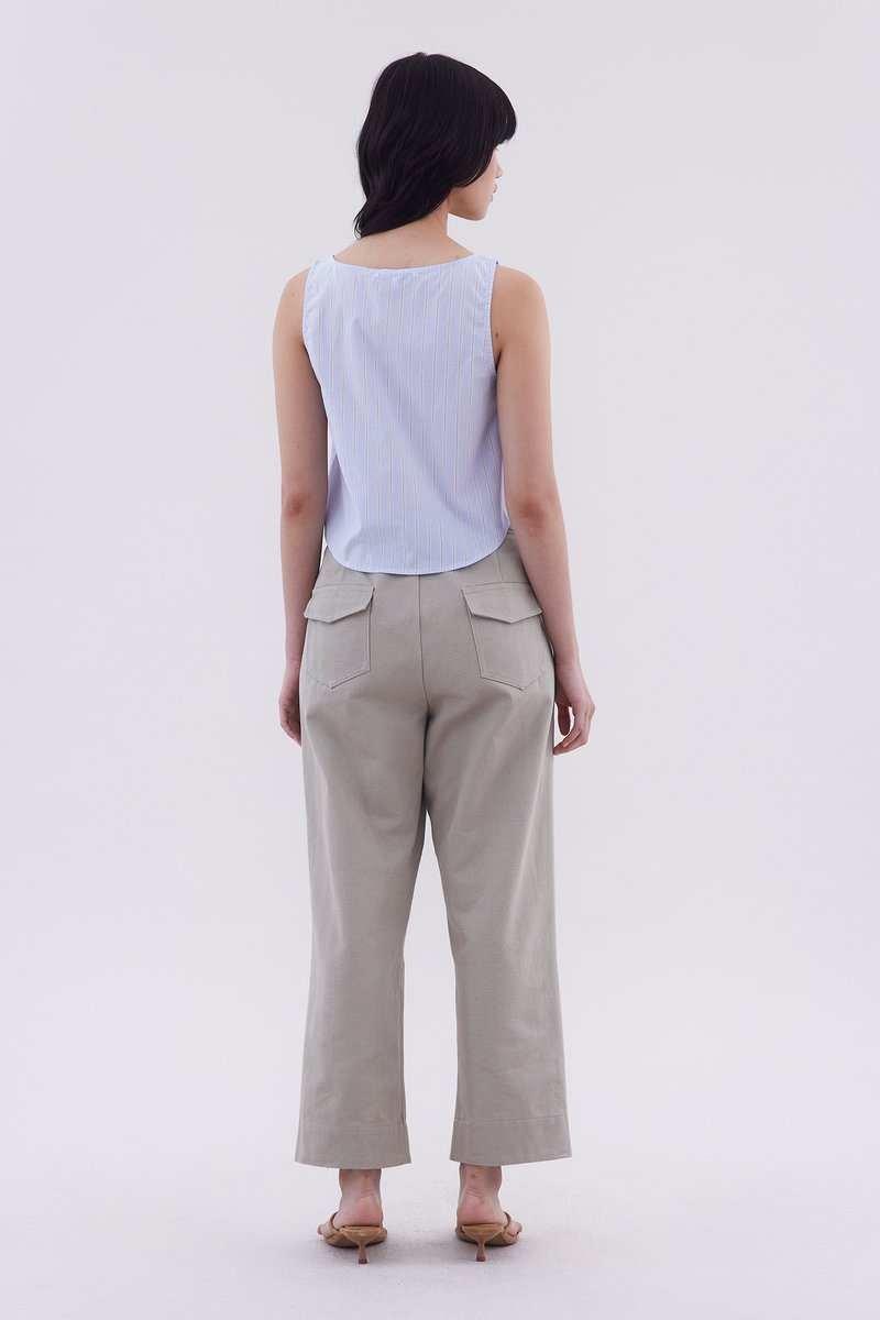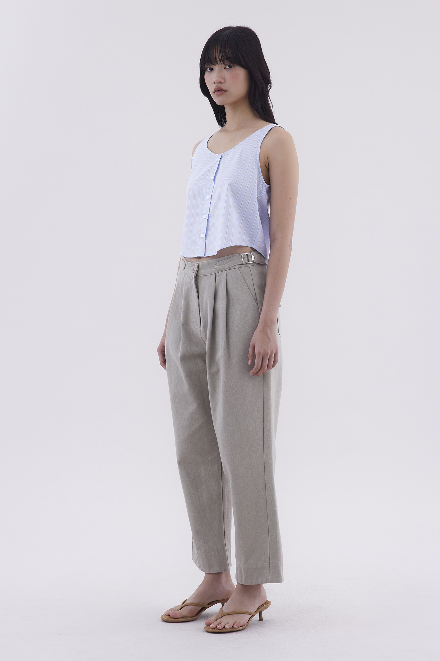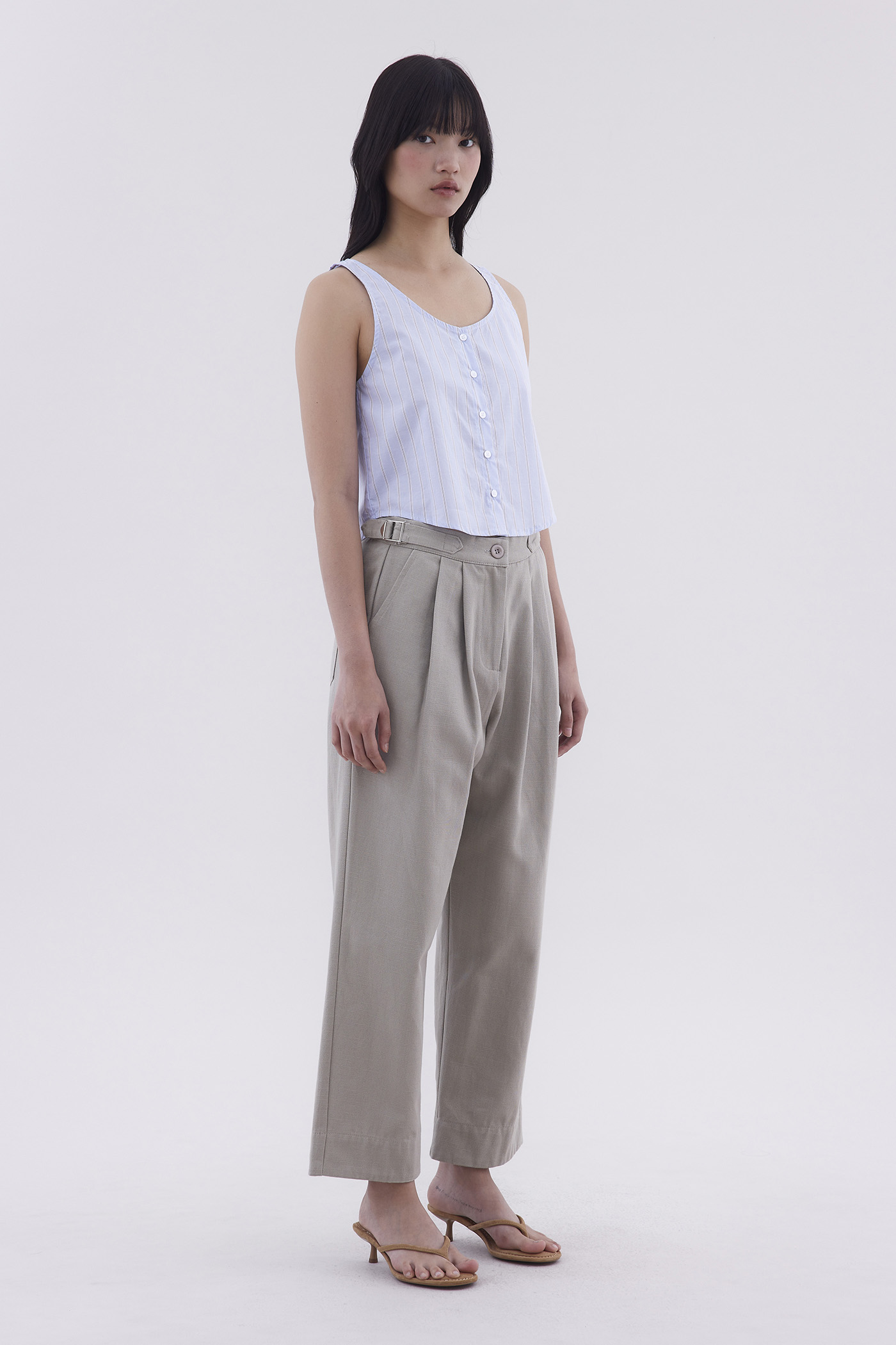 Cool off. Made from smooth and softly structured cotton, this sleeveless top features a wide round neckline and a front button-down closure. Fits relaxed in a cropped length.