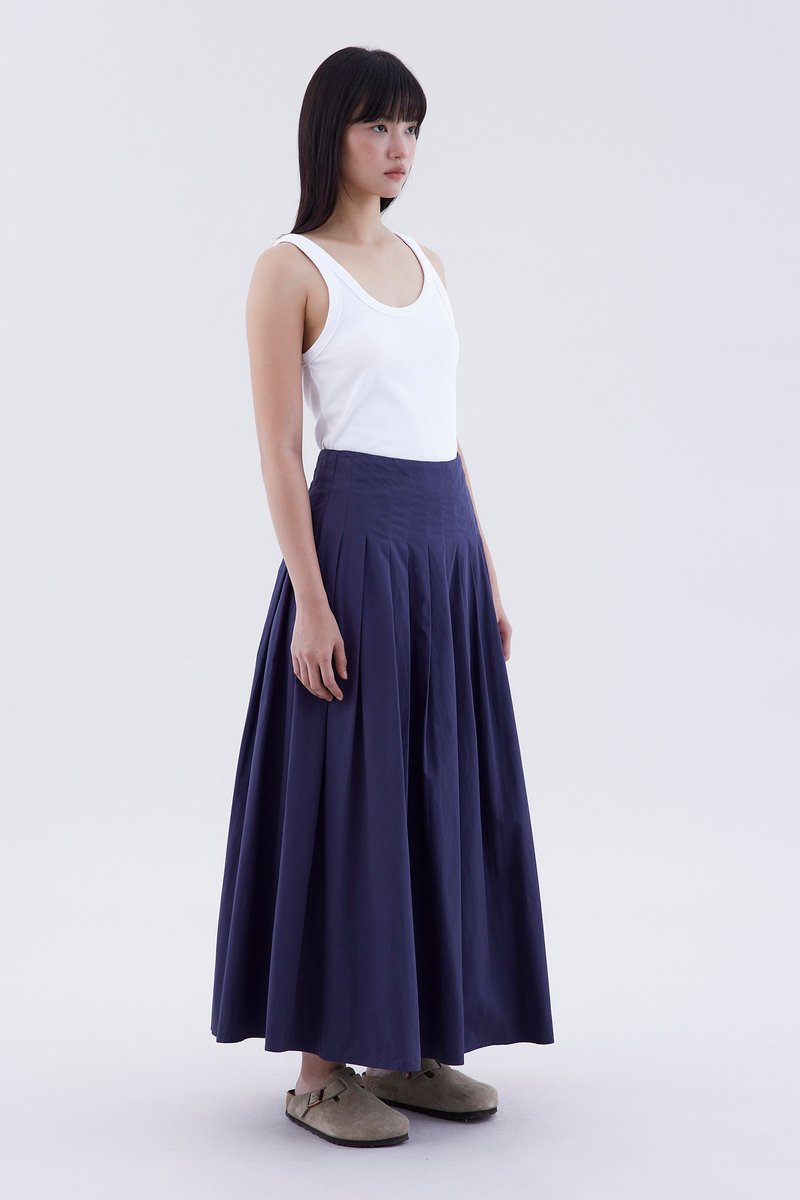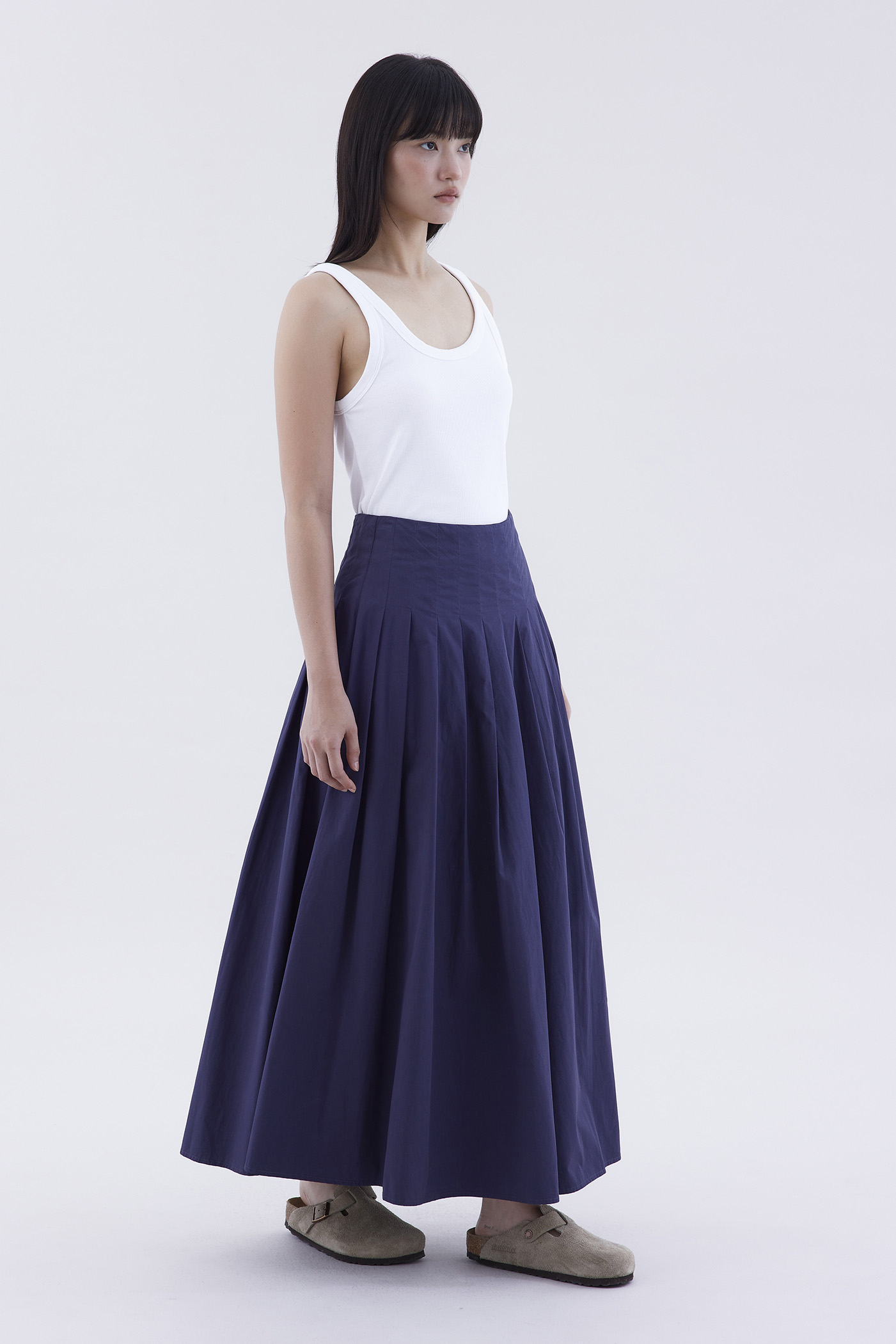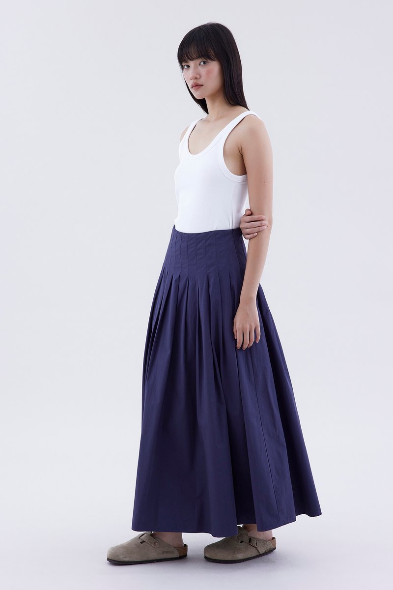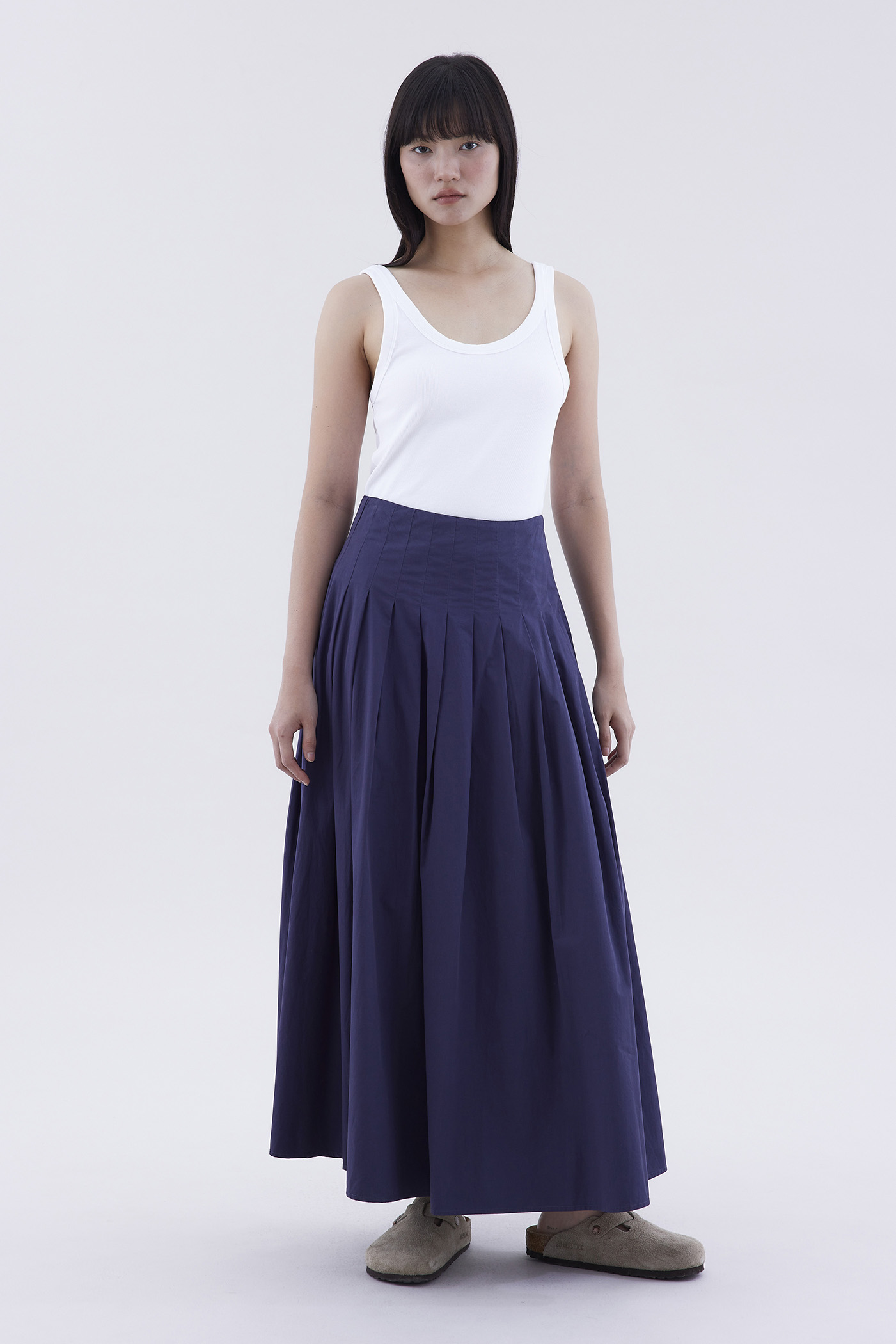Pleats please. Made from smooth and softly structured cotton, this maxi skirt features pleats and a side zip closure. Worn in a relaxed fit.