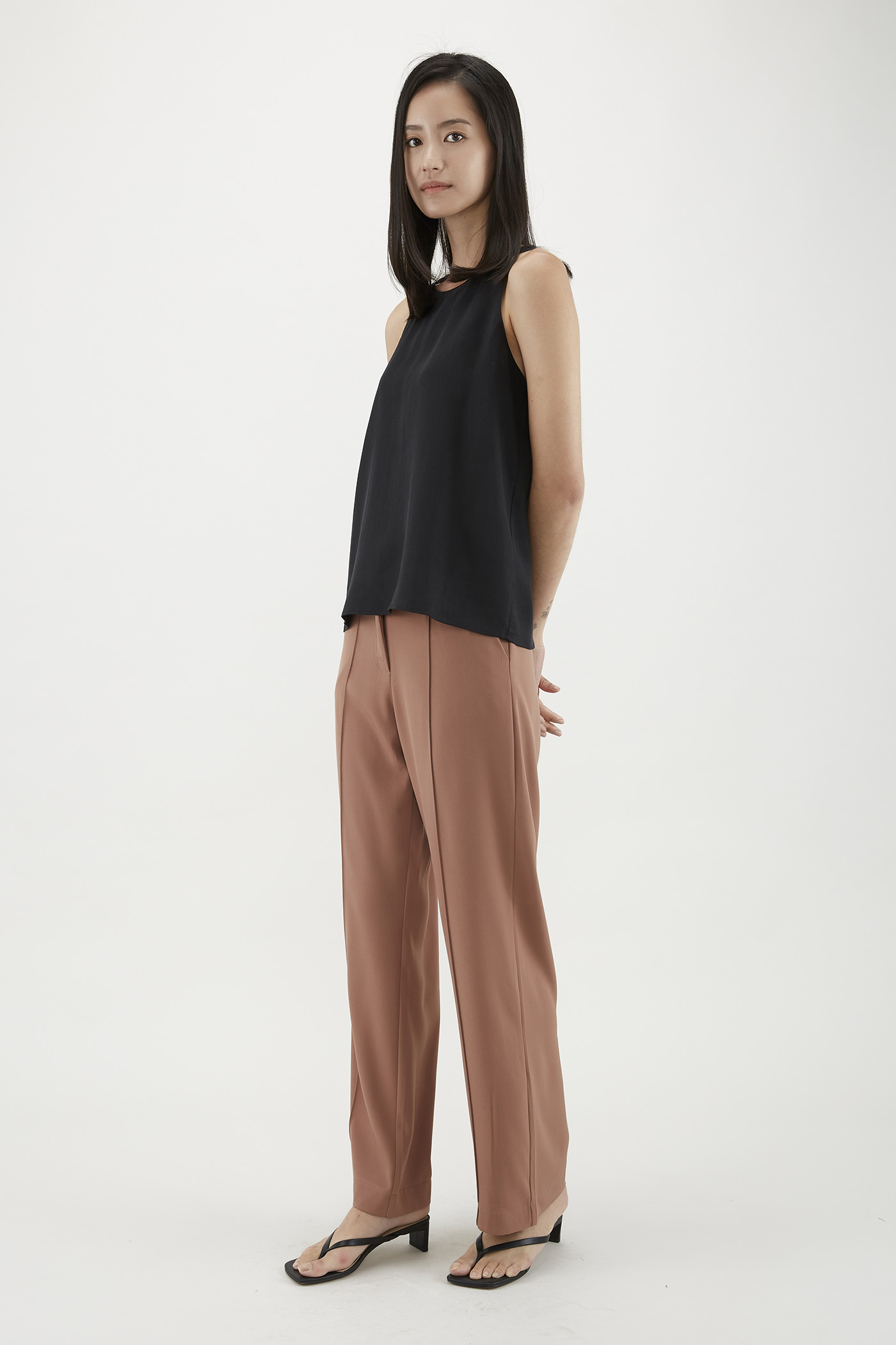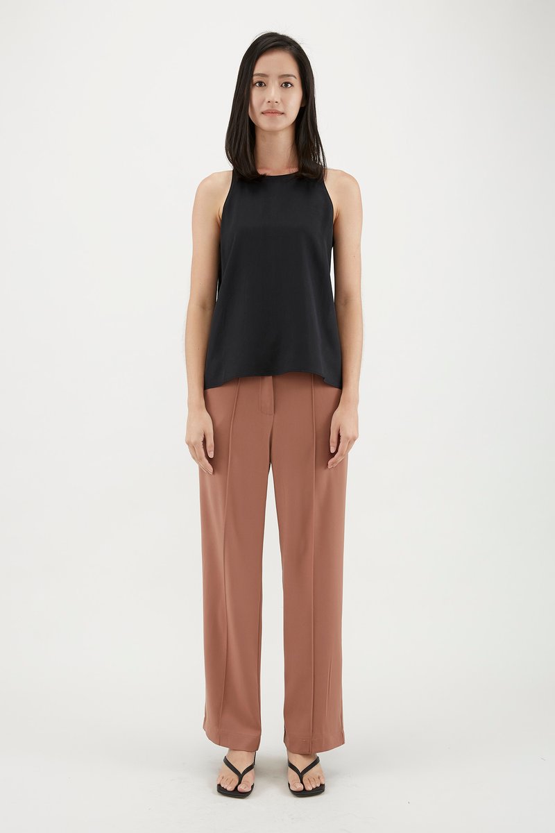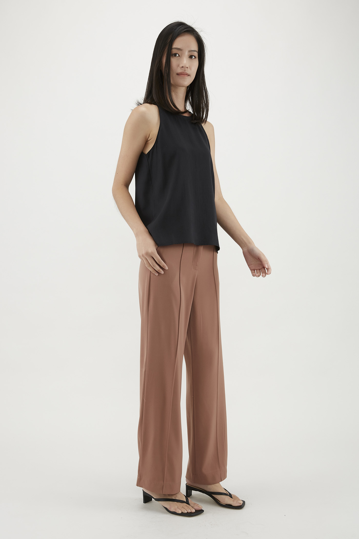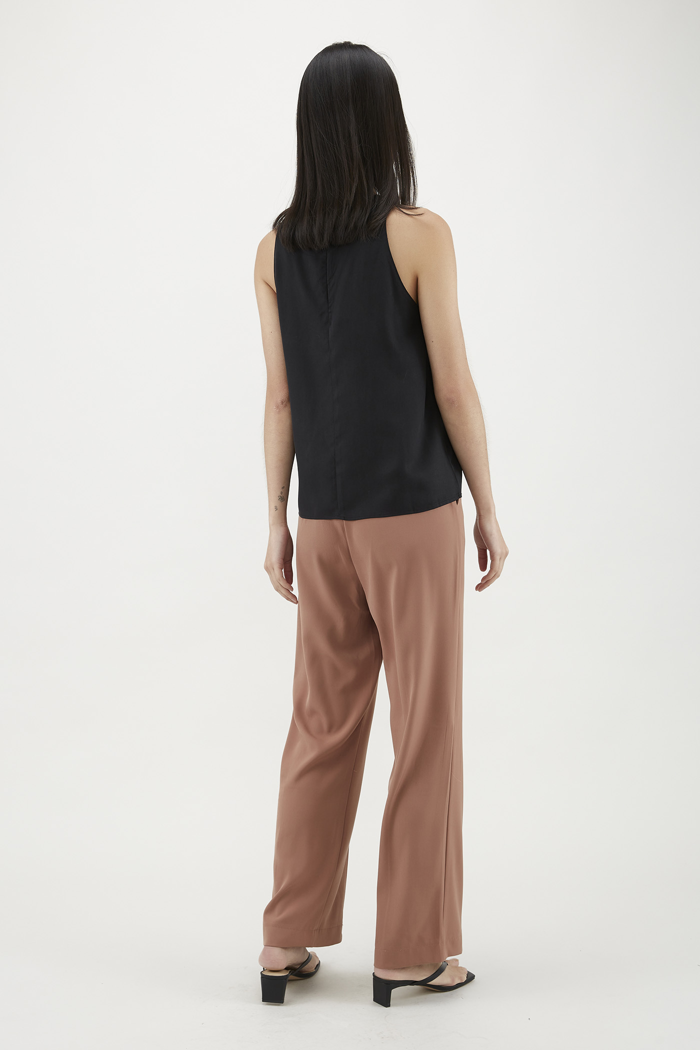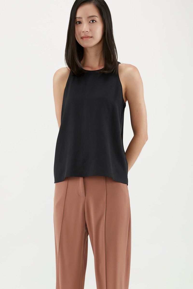 Your elevated tank. Made from flowy and non-sheer lyocell, this sleeveless top flaunts a round neckline, cut-in shoulders and a minimalist, straight-cut silhouette. Worn in a relaxed fit with a zip closure on the side.