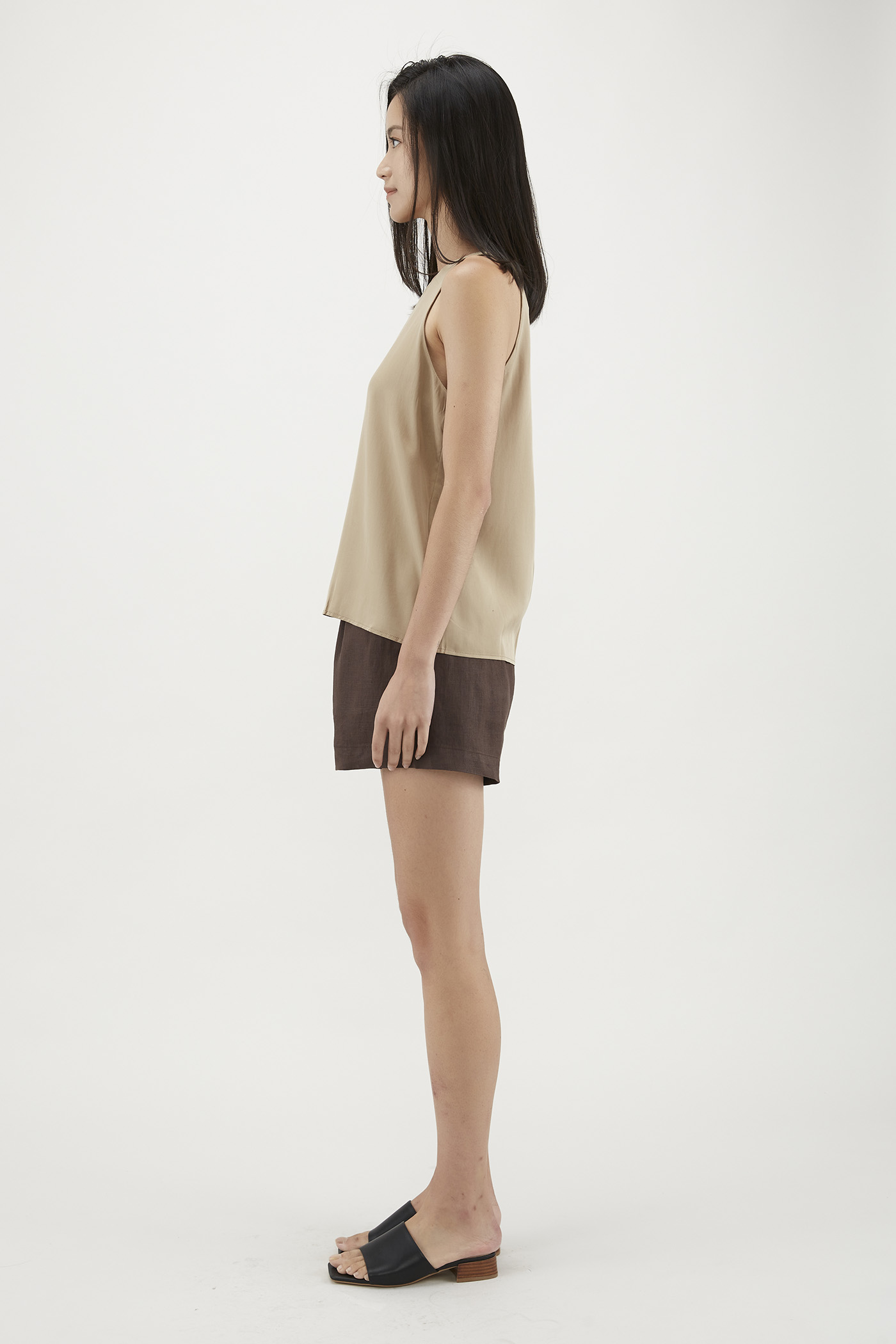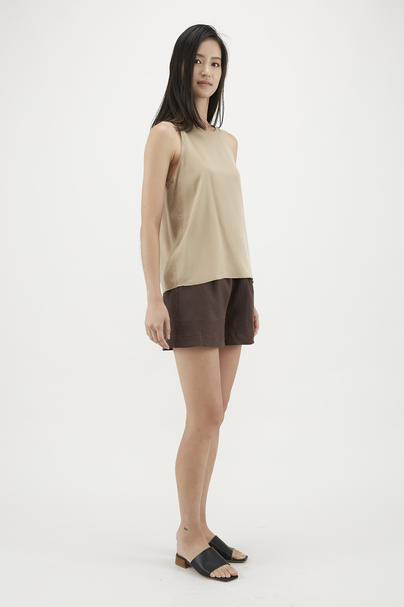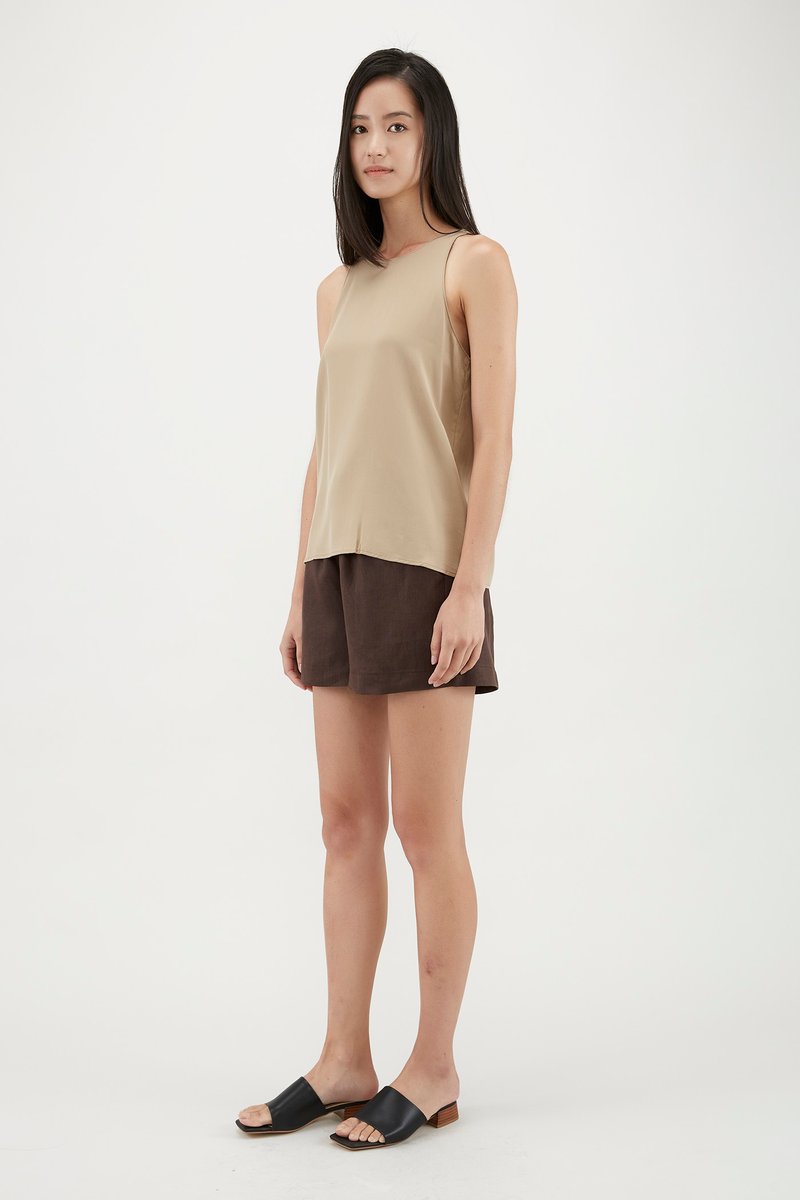 Your elevated tank. Made from flowy and non-sheer lyocell, this sleeveless top flaunts a round neckline, cut-in shoulders and a minimalist, straight-cut silhouette. Worn in a relaxed fit with a zip closure on the side.