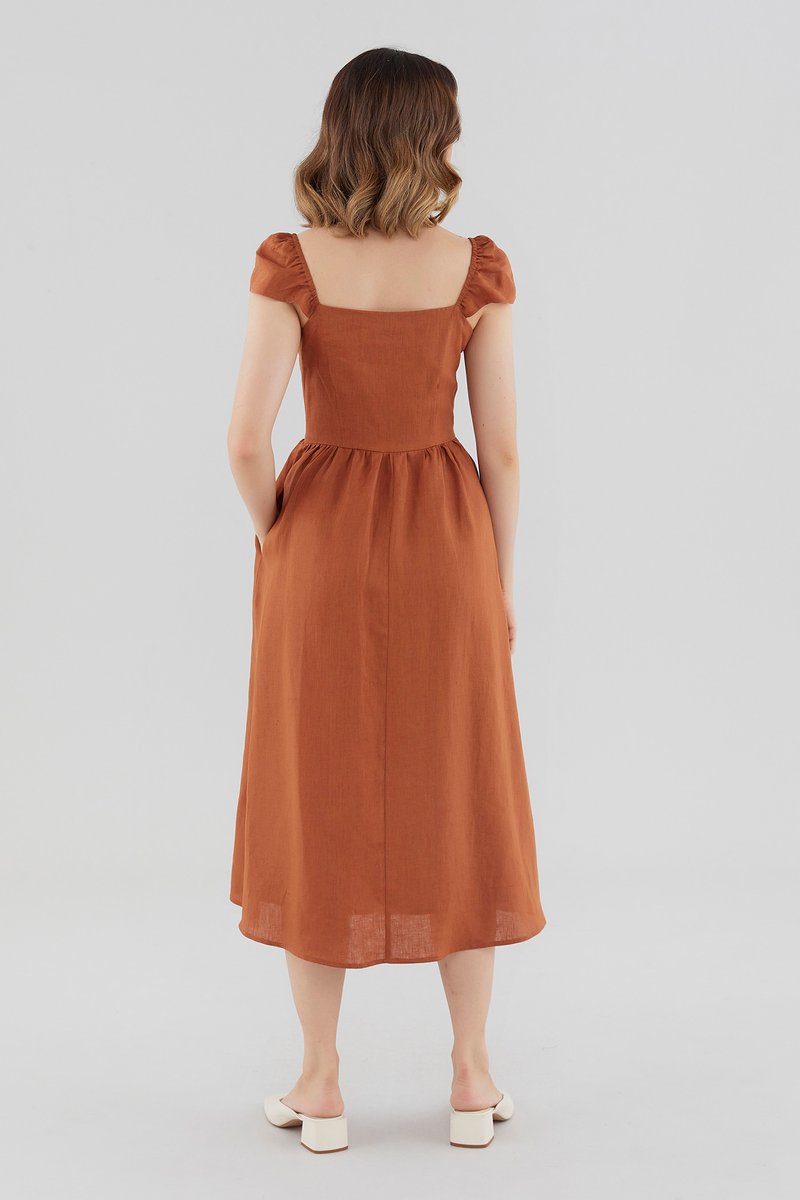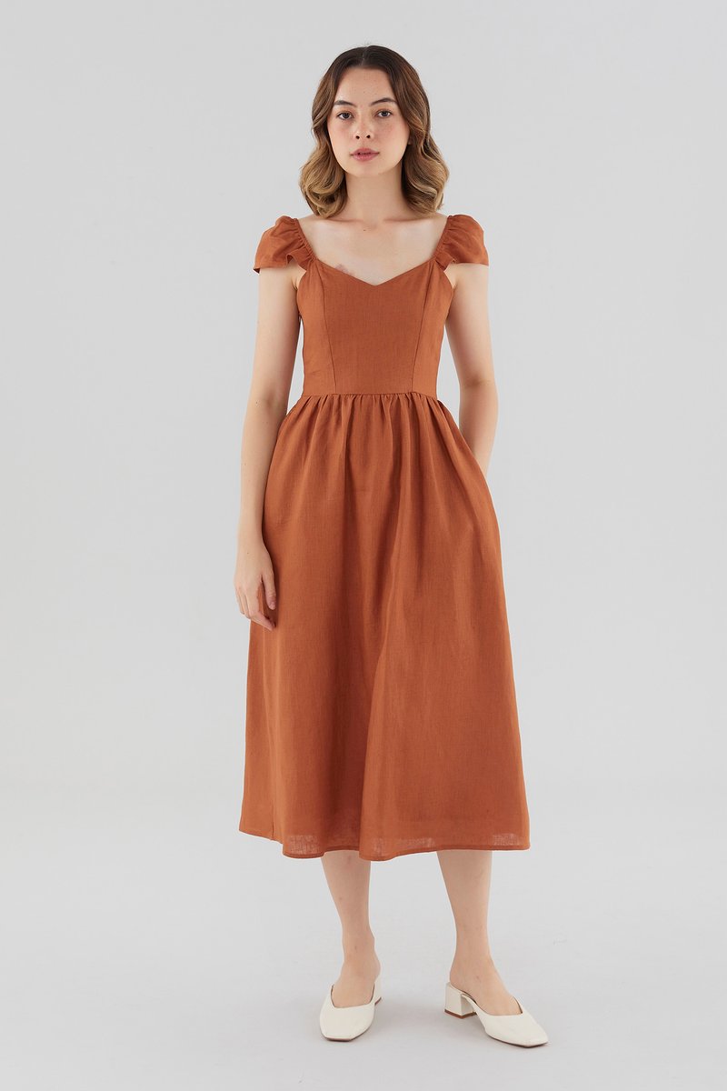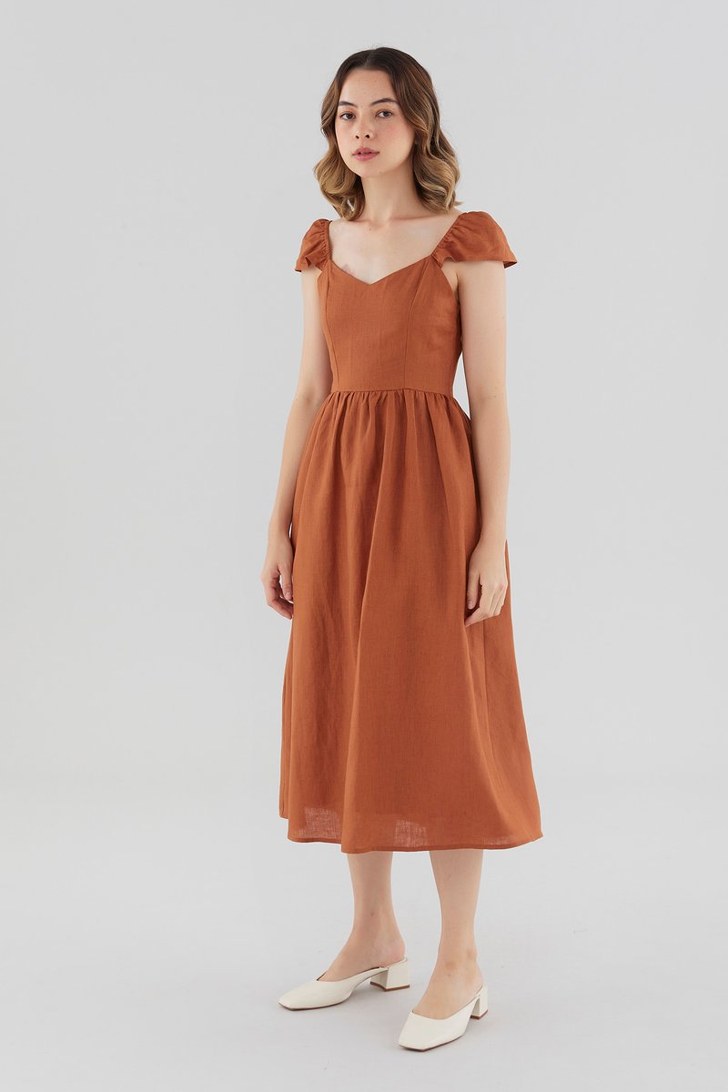 Sybil Linen Cap-Sleeve Dress