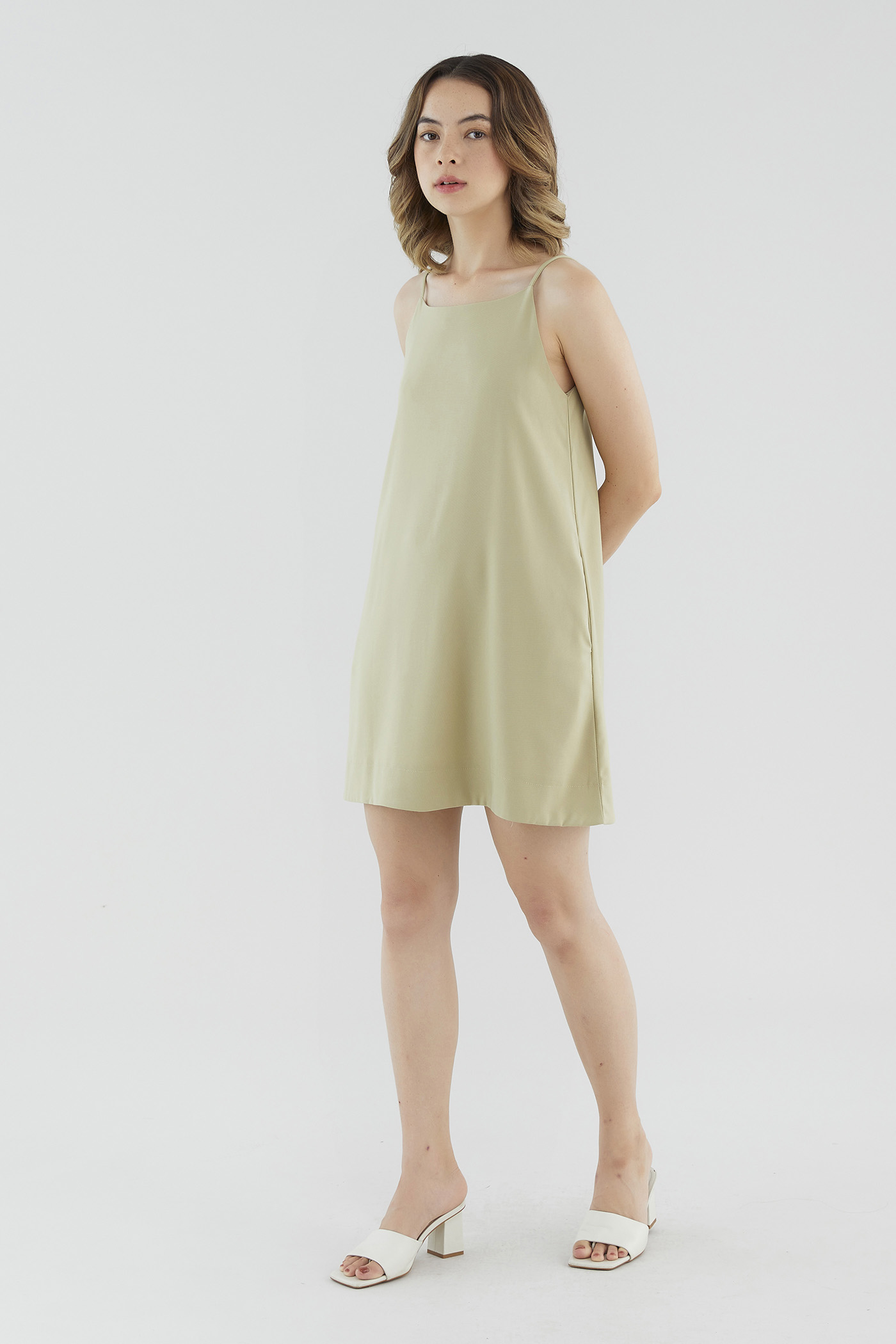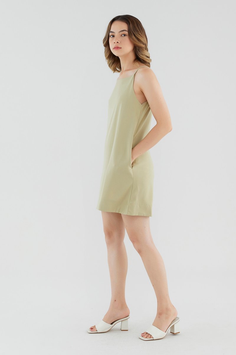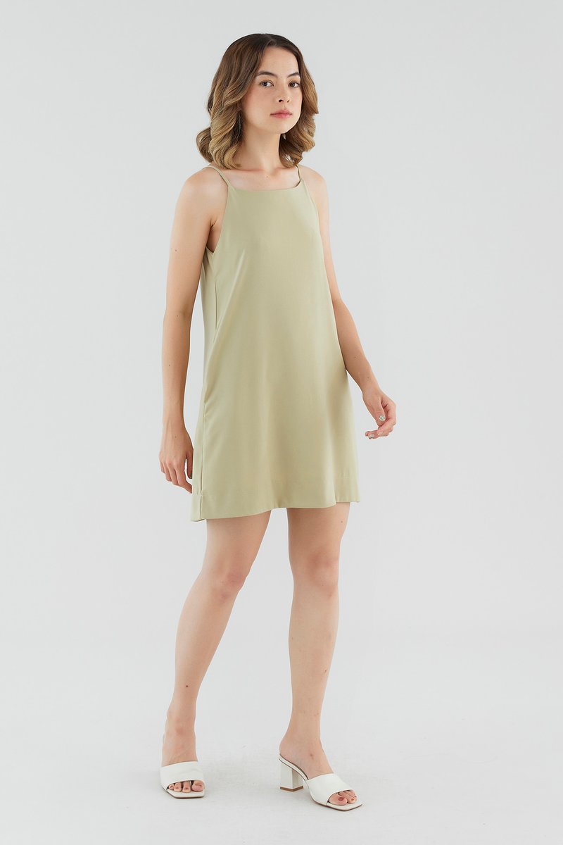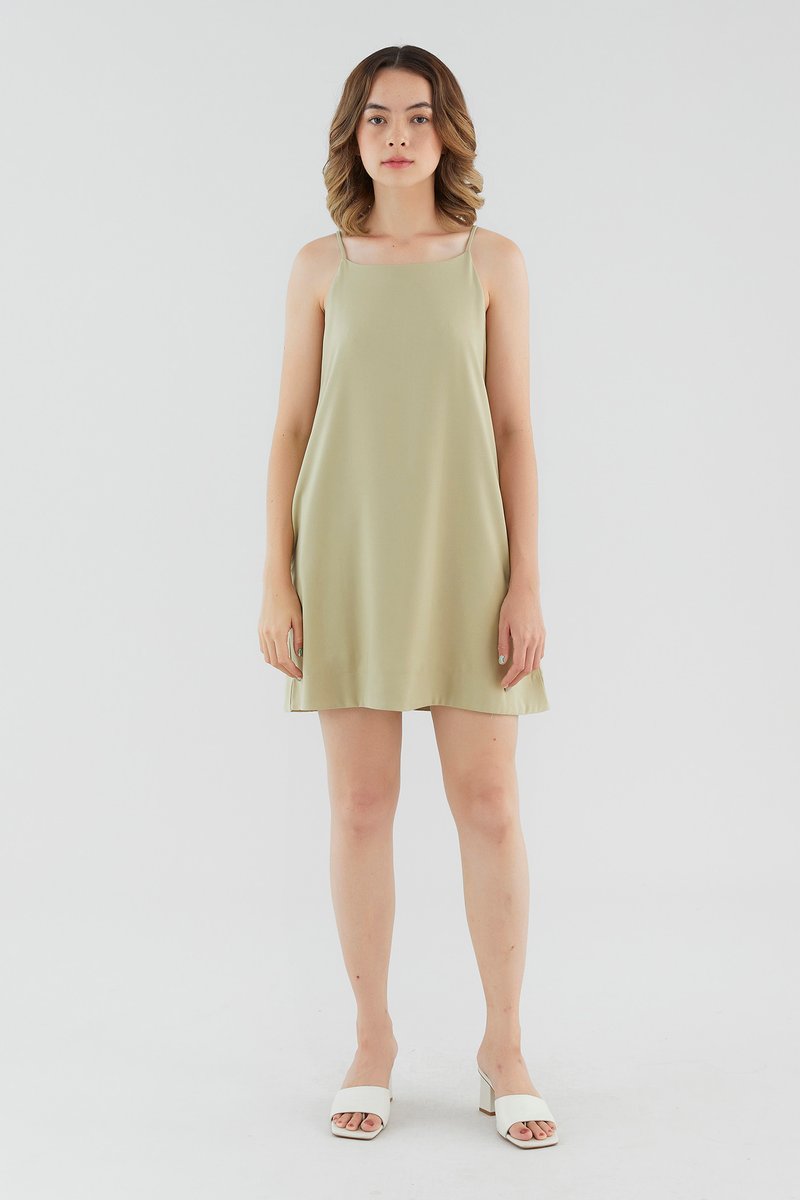 <p><span style="font-weight: 400;">Fabric Composition: 95% Polyester 5% Spandex</span></p> <p><span style="font-weight: 400;">Lining: Full</span></p> <p><span style="font-weight: 400;">Sheerness: None </span></p> <p><span style="font-weight: 400;">Pockets: None</span></p> <p><span style="font-weight: 400;">Ready for the weekend. Made from smooth fabric with a moderate stretch, this sleeveless mini dress features a round neckline, slim non-adjustable straps and a zip closure on the back. Fits relaxed in a waistless, A-line silhouette. </span></p> <p><span style="font-weight: 400;">Care Instructions: Do not soak / Do not bleach / Handwash or Machine wash on gentle mode / Do not machine dry / Iron using low heat</span></p>