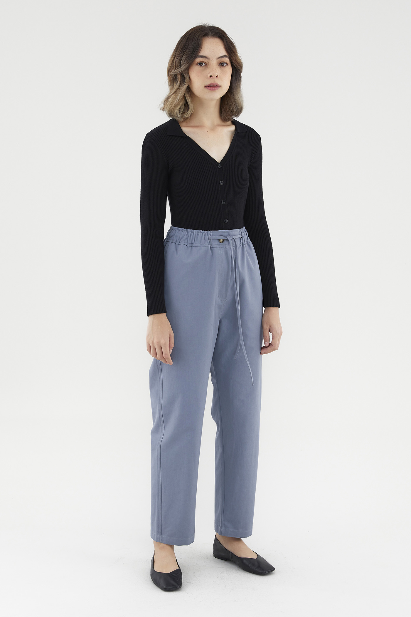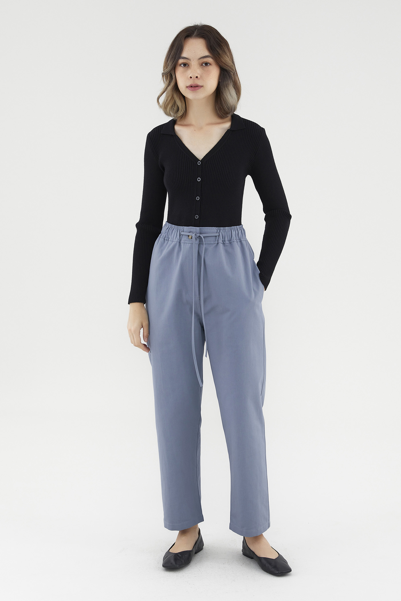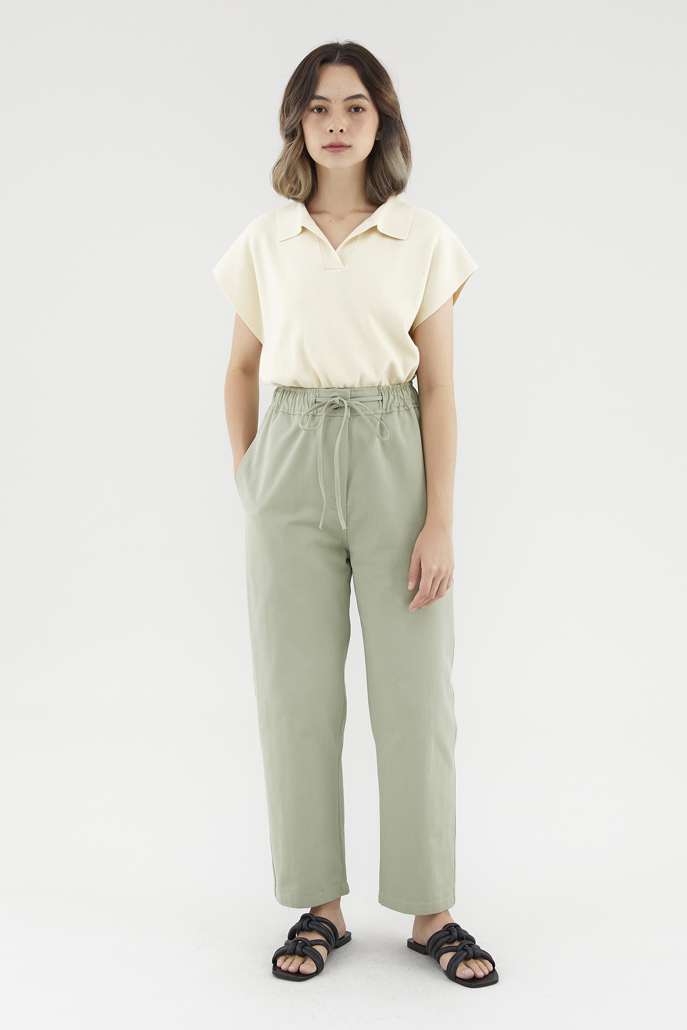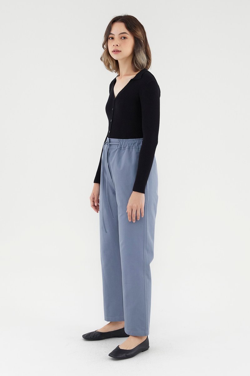<p><span style="font-weight: 400;">Fabric Composition: 100% Cotton</span></p> <p><span style="font-weight: 400;">Lining: None</span></p> <p><span style="font-weight: 400;">Sheerness: Opaque</span></p> <p><span style="font-weight: 400;">Pockets: Two pockets on the side</span></p> <p><span style="font-weight: 400;">Pull on and go. Cut from non-stretch and gently tailored cotton, these pants feature a high and elasticated waist with an adjustable drawstring, a front zip and button closure, and sleek, tapered legs. Worn in a slim fit. </span></p> <p><span style="font-weight: 400;">Care Instructions: Do not soak / Do not bleach / Handwash or Machine wash on gentle mode / Do not machine dry / Iron using low heat</span></p>
