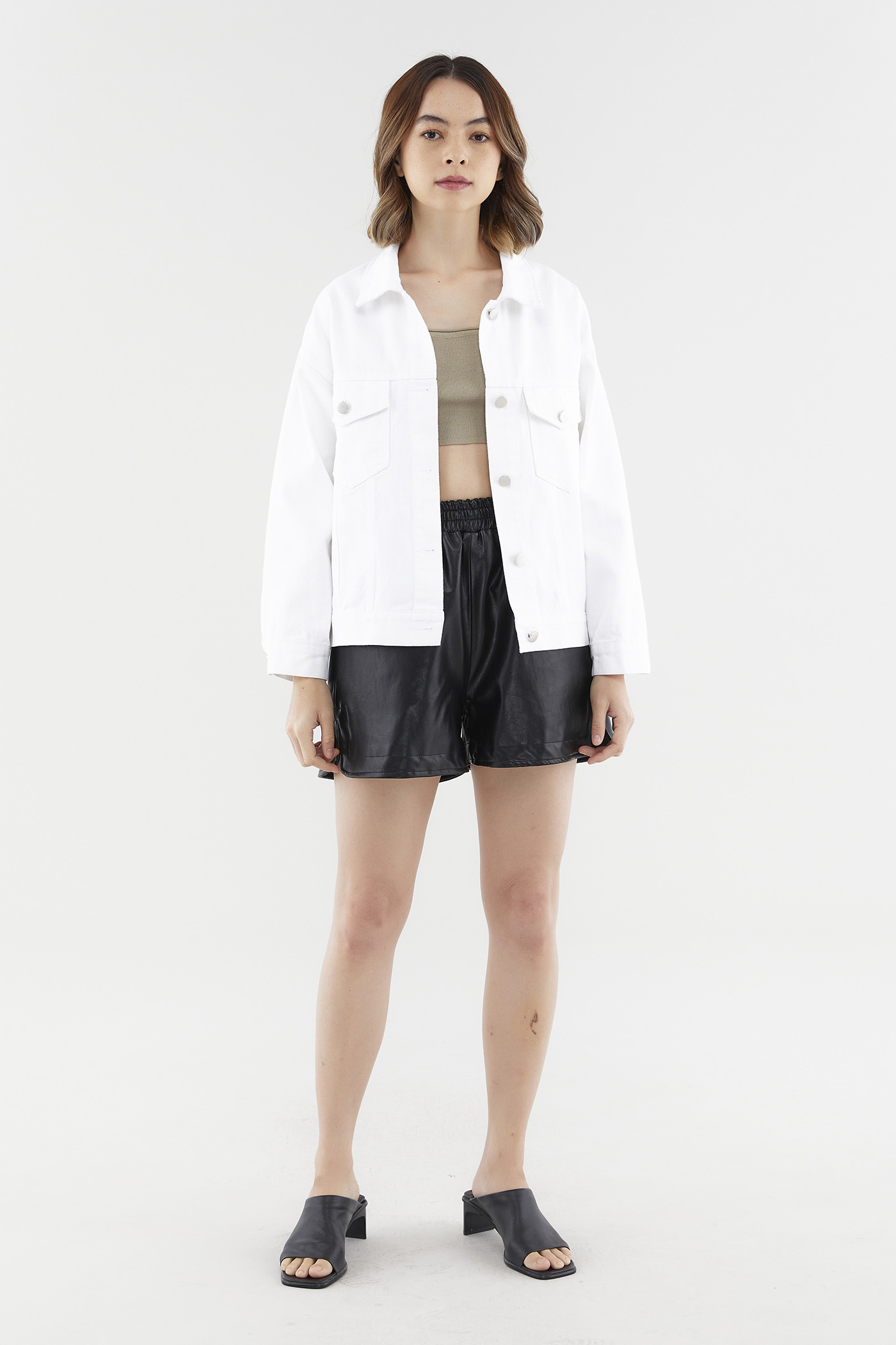 Your staple outfit topper. Cut from sturdy and non-sheer cotton, this denim jacket features wide collars, two patch pockets on the front and long, cuffed sleeves with buttoned hems. Worn in a slightly oversized fit, with a front button closure.
