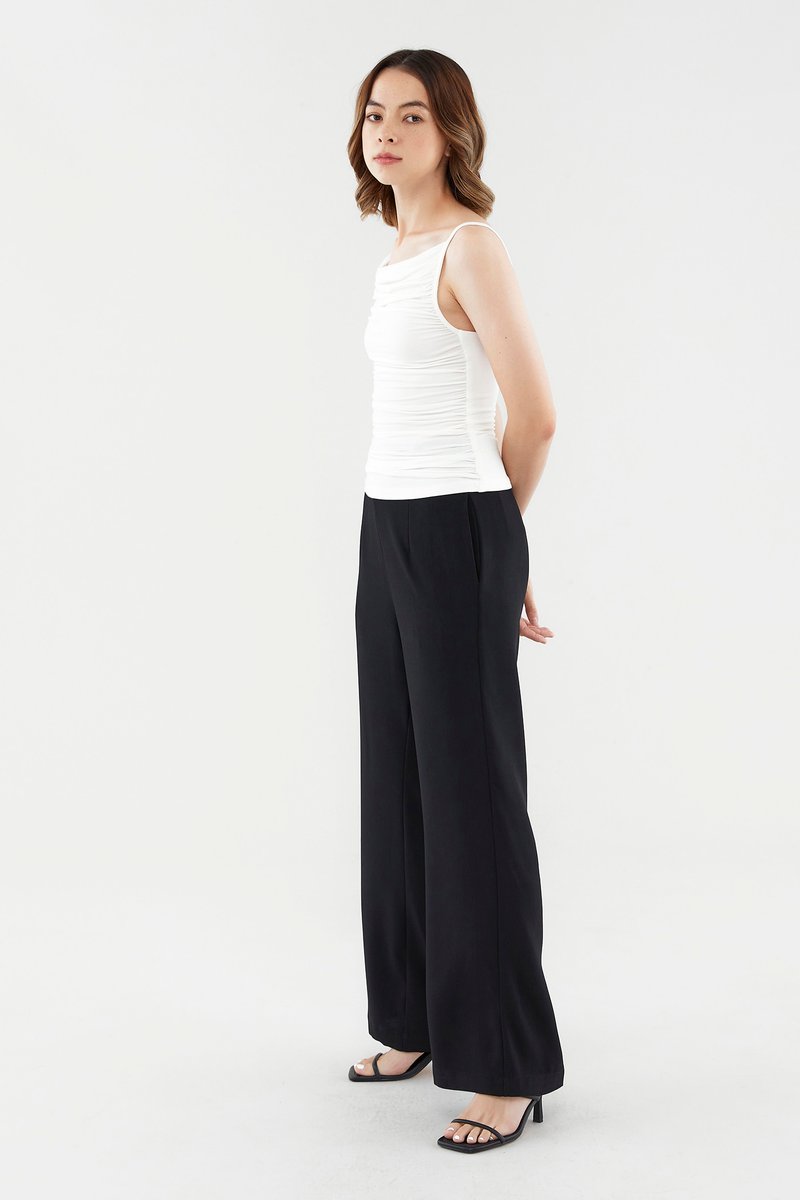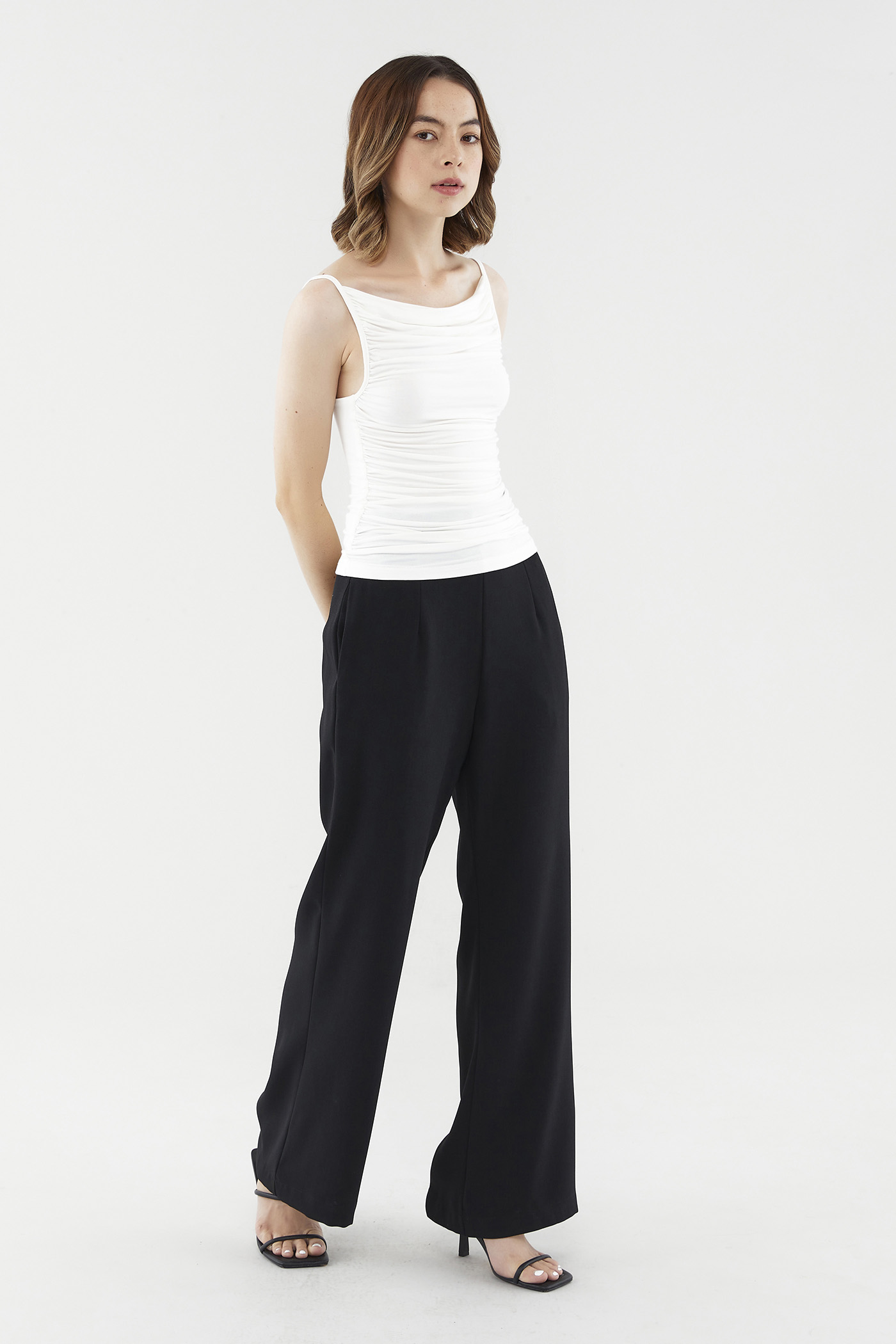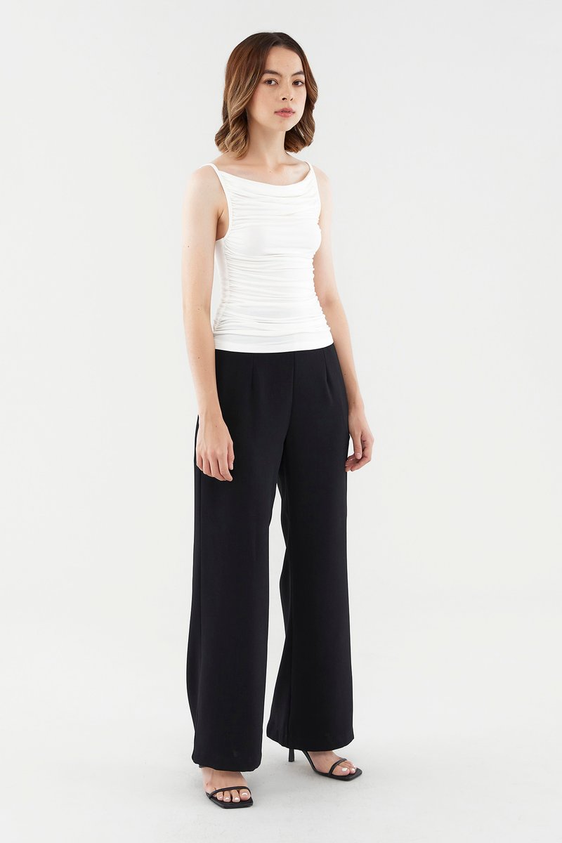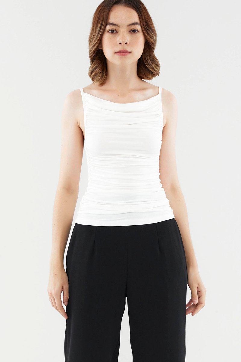 Endlessly flattering. Made from soft and unlined fabric, this sleeveless top features a cowl neckline, draped front and slim, adjustable shoulder straps. Worn in a snug fit.