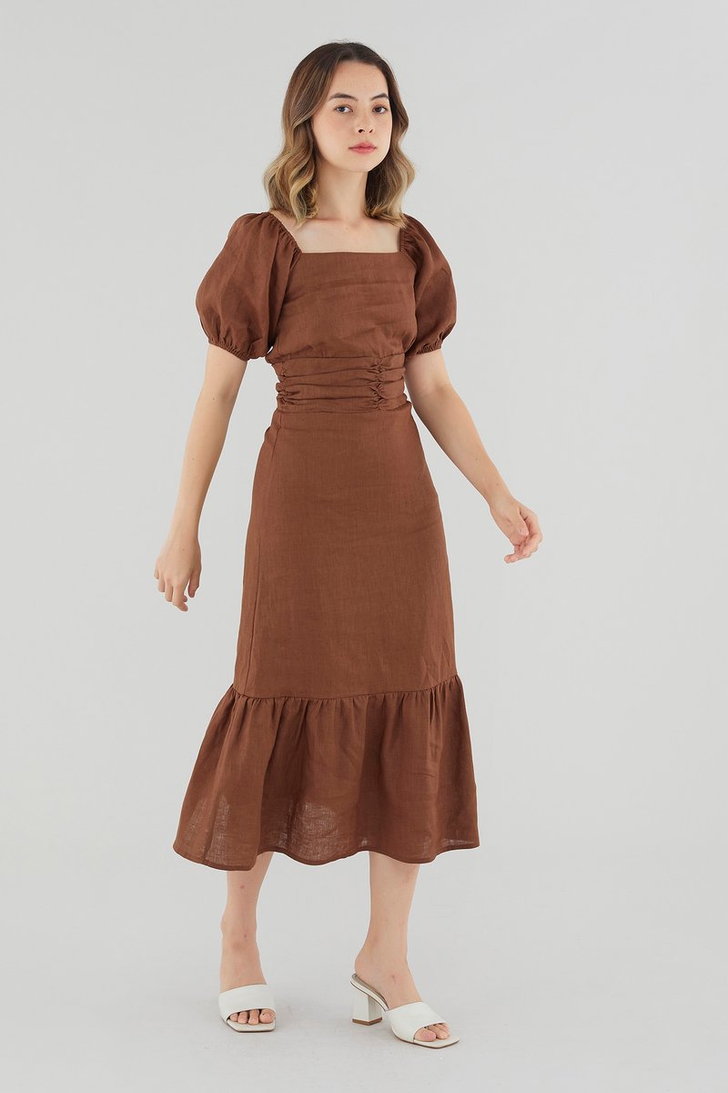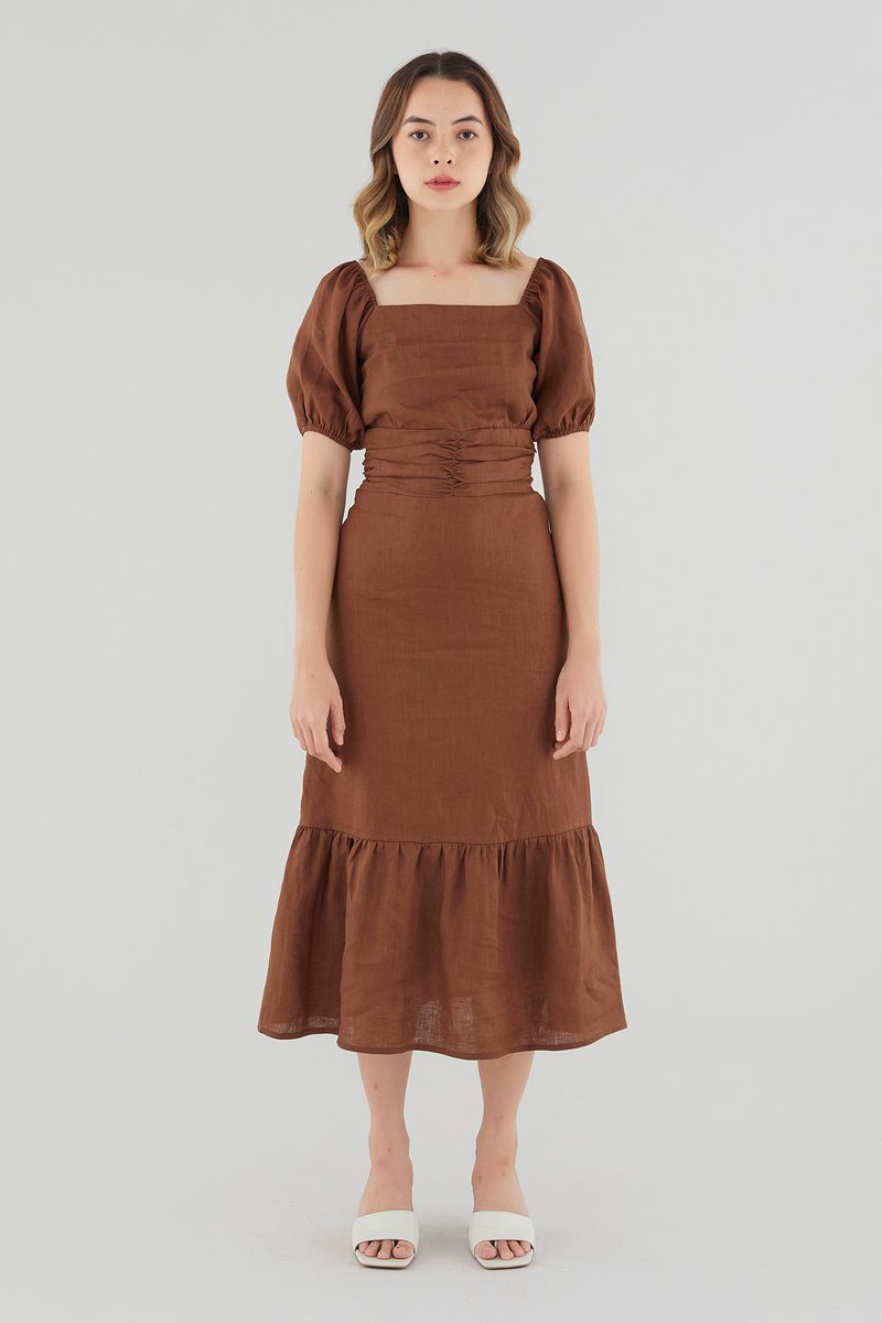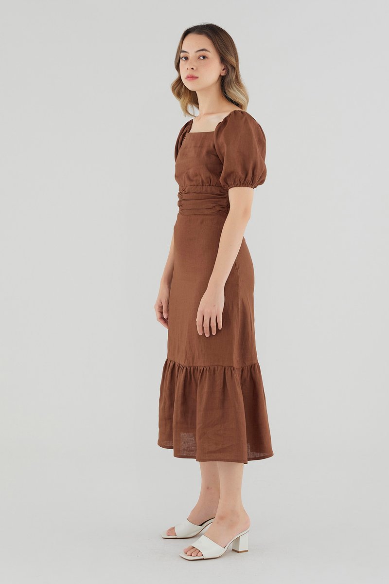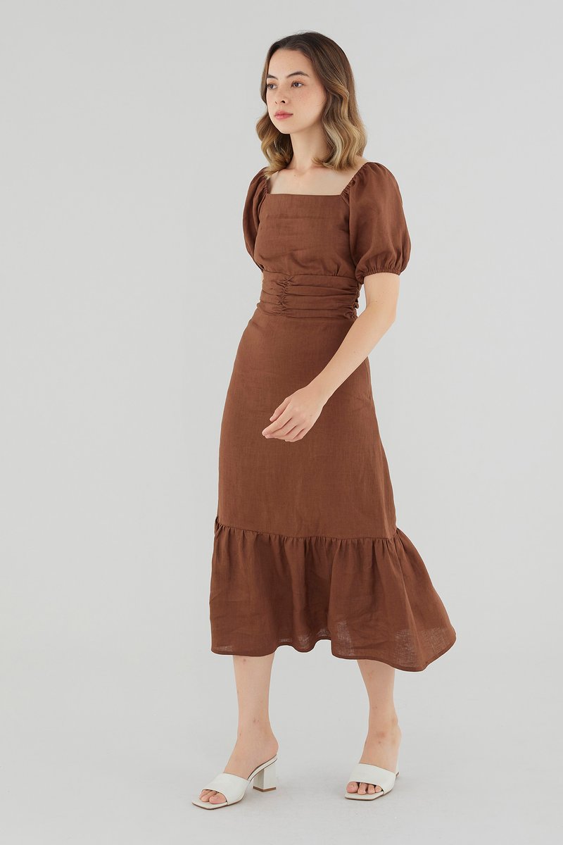 Ulyssa Linen Ruched Waist Dress