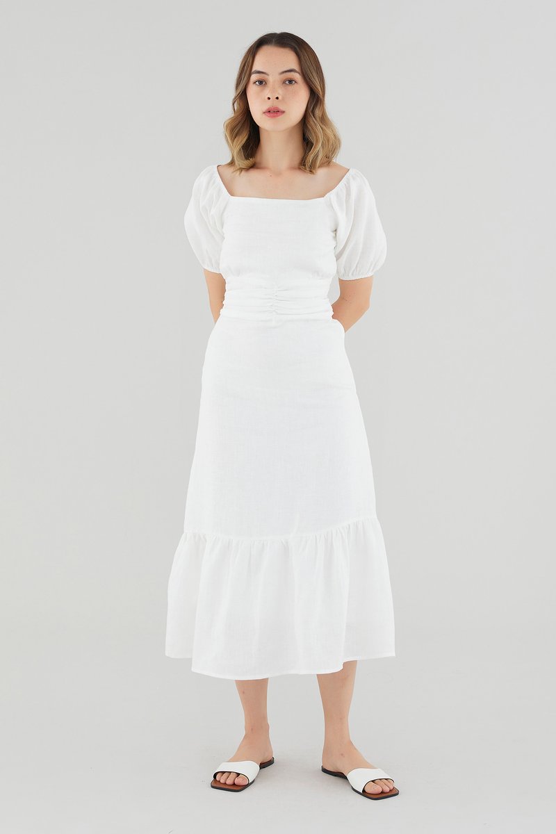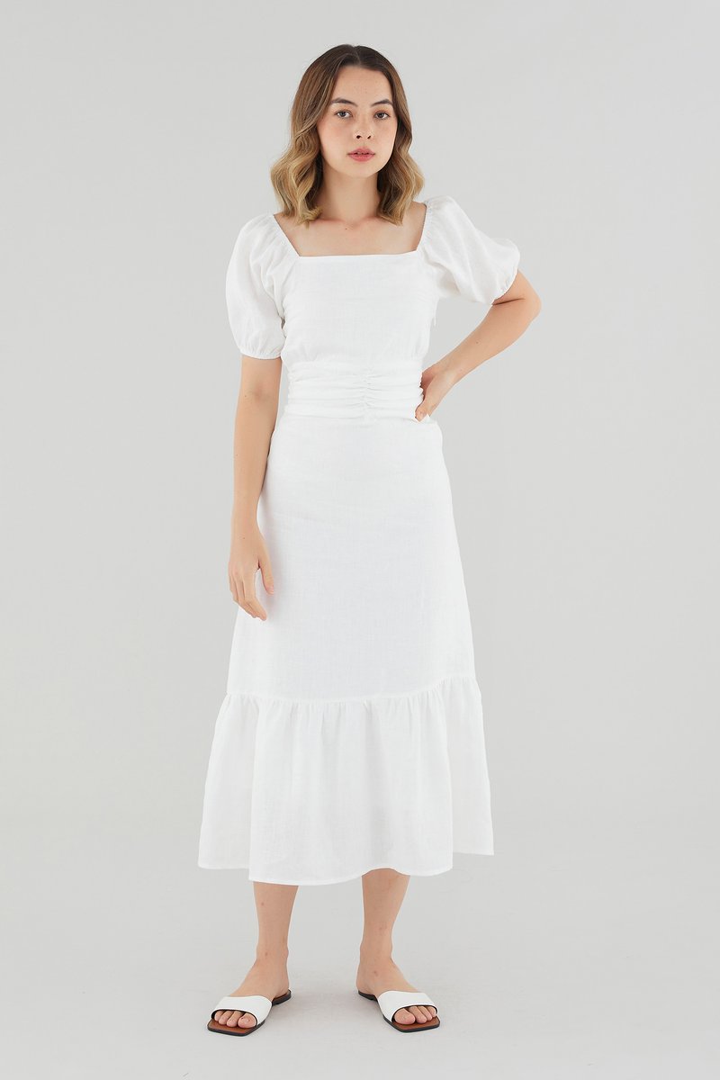 Ulyssa Linen Ruched Waist Dress