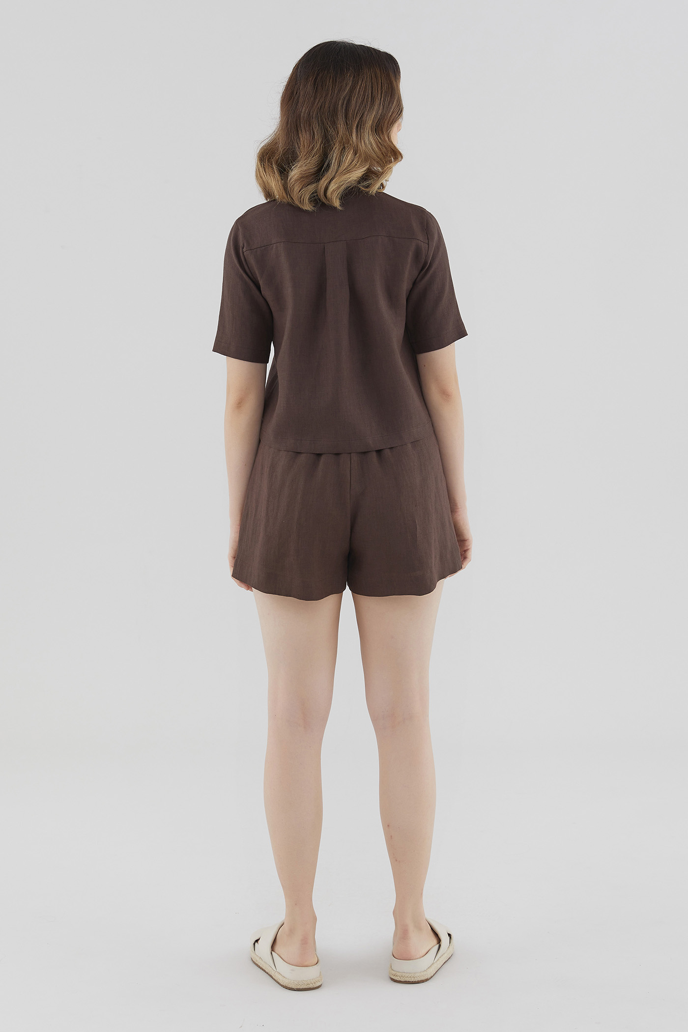 Rotation ready. Cut from airy and lightweight 100% linen, this short-sleeved shirt features slim collars, front button-down closure and back pleat. Worn in a boxy, relaxed silhouette.