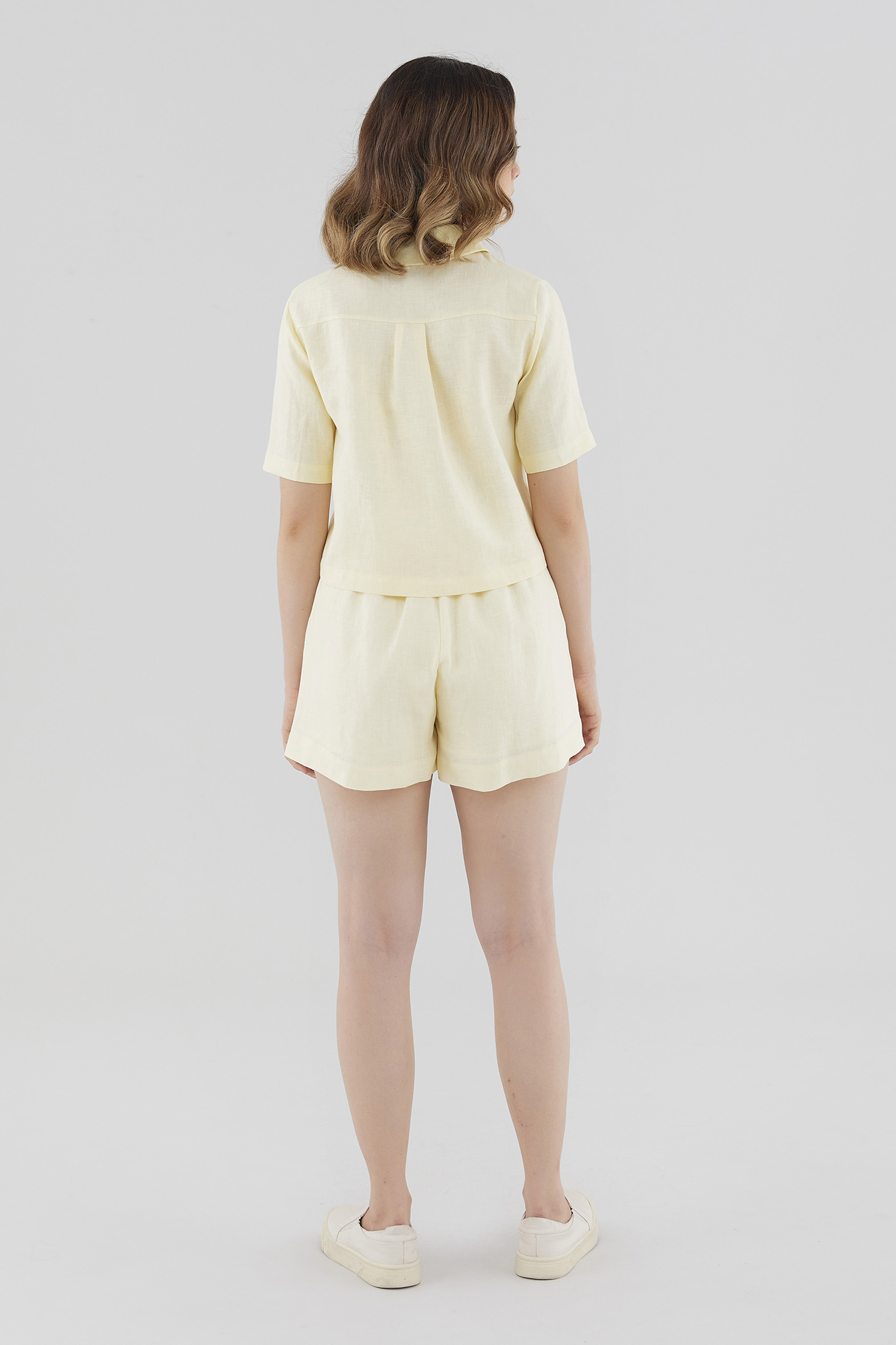 Rotation ready. Cut from airy and lightweight 100% linen, this short-sleeved shirt features slim collars, front button-down closure and back pleat. Worn in a boxy, relaxed silhouette.