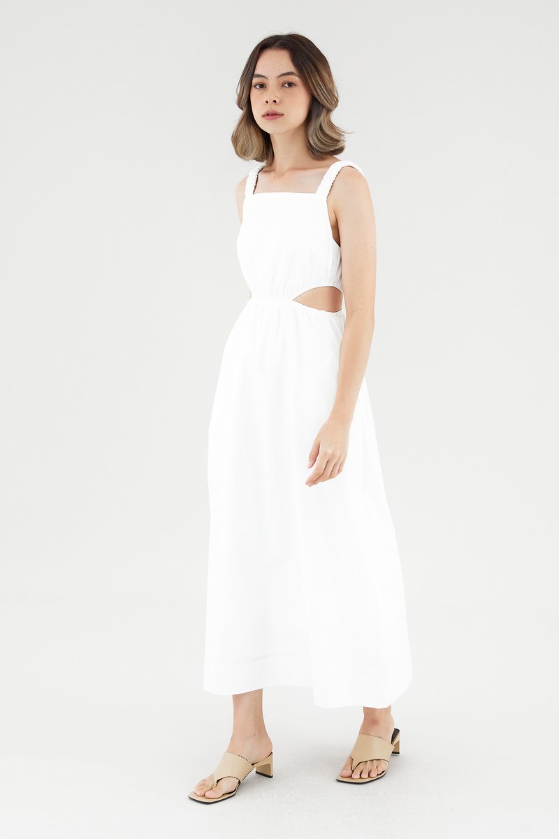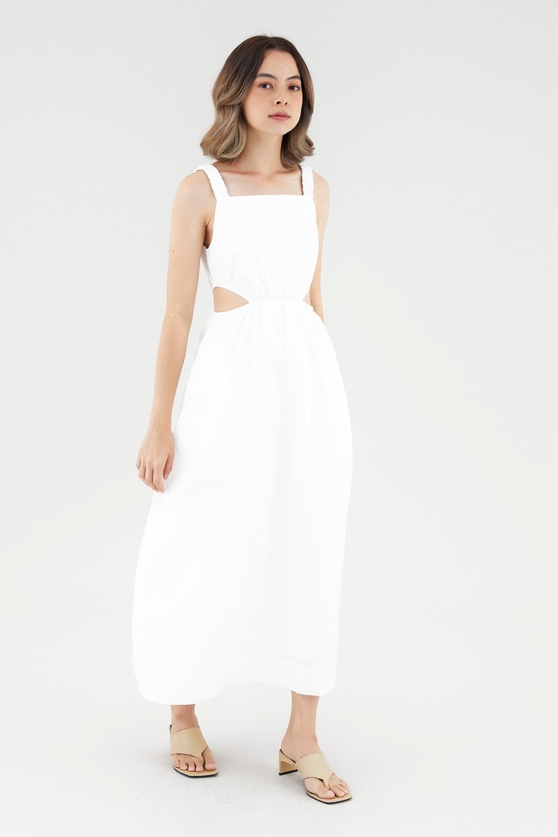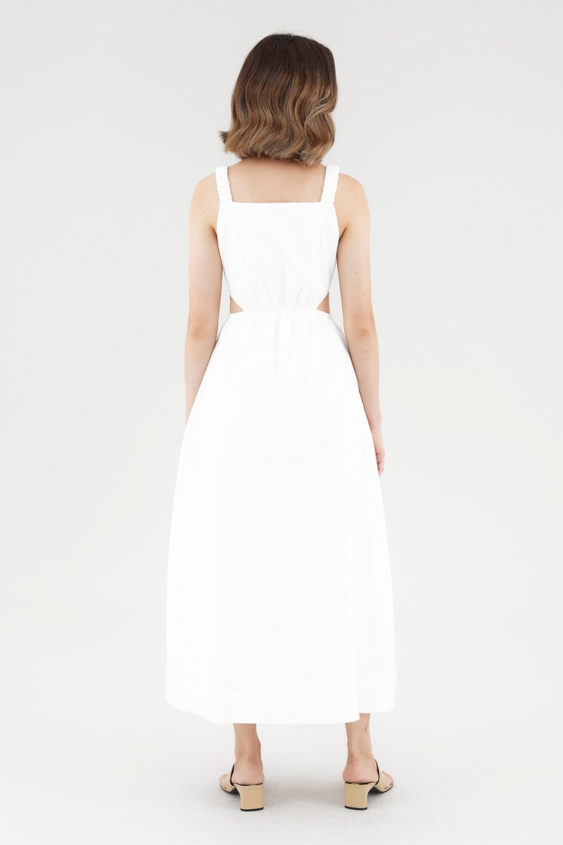 <p><span style="font-weight: 400;">Fabric Composition: 100% Cotton</span></p> <p><span style="font-weight: 400;">Lining: Full</span></p> <p><span style="font-weight: 400;">Sheerness: Opaque</span></p> <p><span style="font-weight: 400;">Pockets: Two pockets on the side</span></p> <p><span style="font-weight: 400;">Peek-a-boo. Cut from crisp and non-stretch cotton, this sleeveless dress features a square neckline, ruched, elasticated shoulder straps and an elasticated waist with side cut-outs. Fits slim in a maxi length. </span></p> <p><span style="font-weight: 400;">Care Instructions: Do not soak / Do not bleach / Handwash or Machine wash on gentle mode / Do not machine dry / Iron using low heat</span></p>