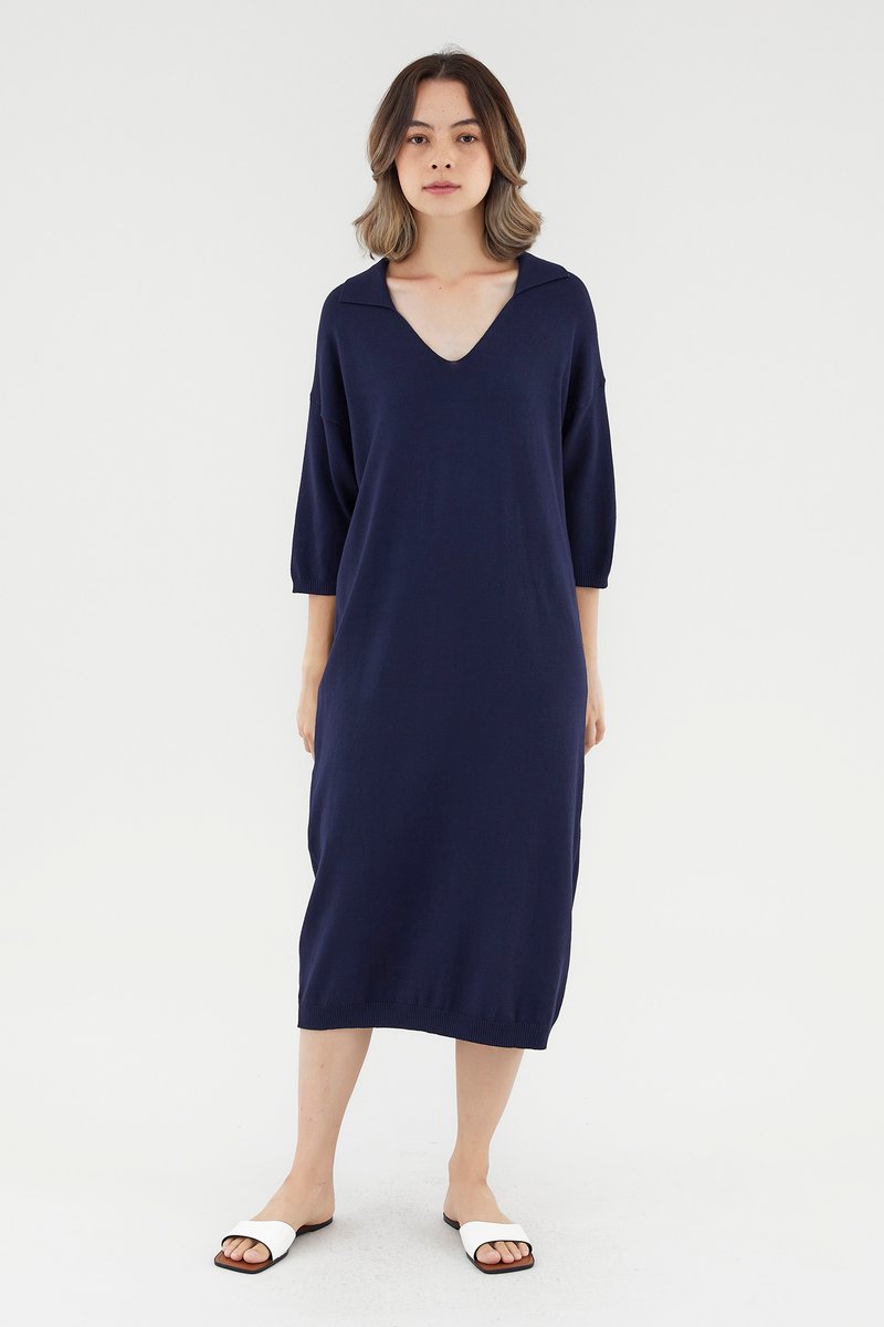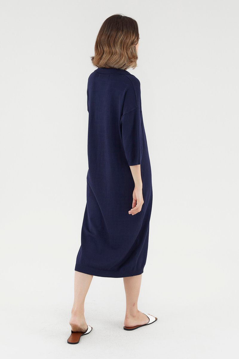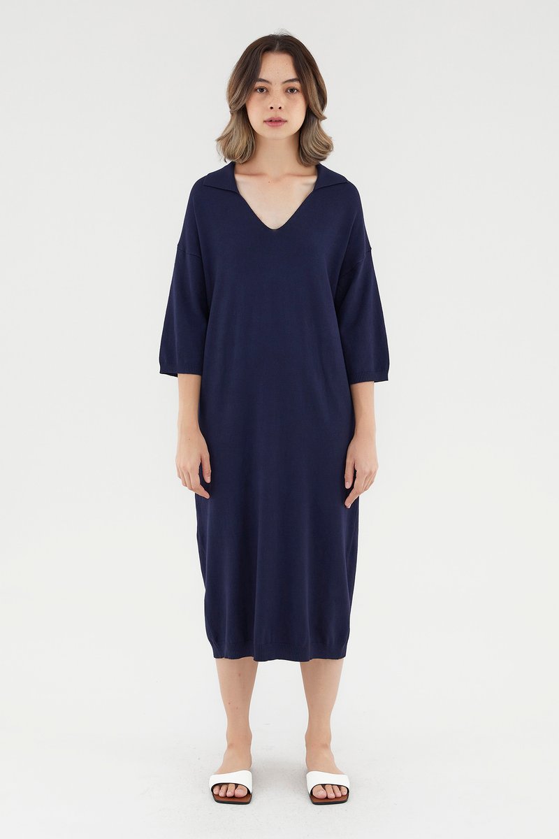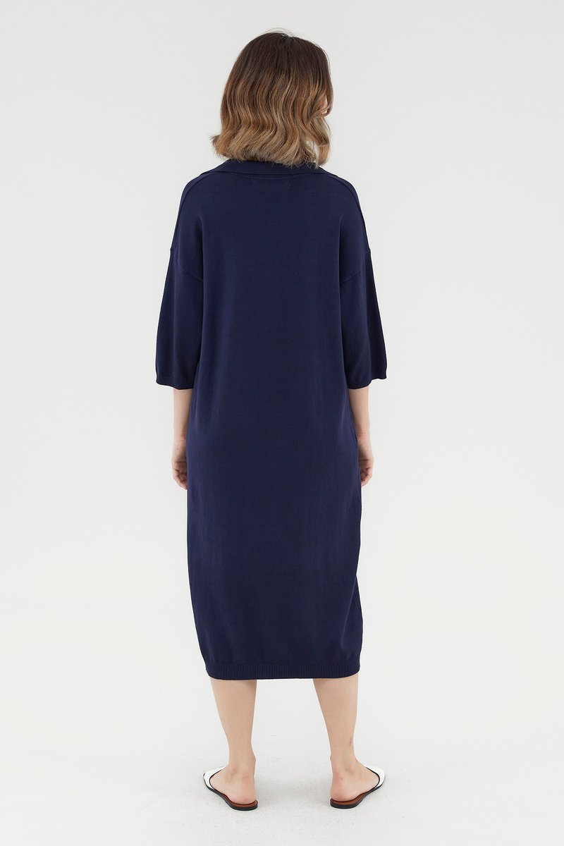 <p><span style="font-weight: 400;">Fabric Composition: 100% Viscose</span></p> <p><span style="font-weight: 400;">Lining: None</span></p> <p><span style="font-weight: 400;">Sheerness: Opaque</span></p> <p><span style="font-weight: 400;">Pockets: None</span></p> <p><span style="font-weight: 400;">Comfort first. Made from soft and stretchy knit fabric, this midi dress features half sleeves, dropped shoulders, a collared V-neckline and a ribbed hemline. Worn in a relaxed, oversized fit. </span></p> <p><span style="font-weight: 400;">Care Instructions: Do not soak / Do not bleach / Handwash or Machine wash on gentle mode / Do not machine dry / Iron using low heat</span></p>