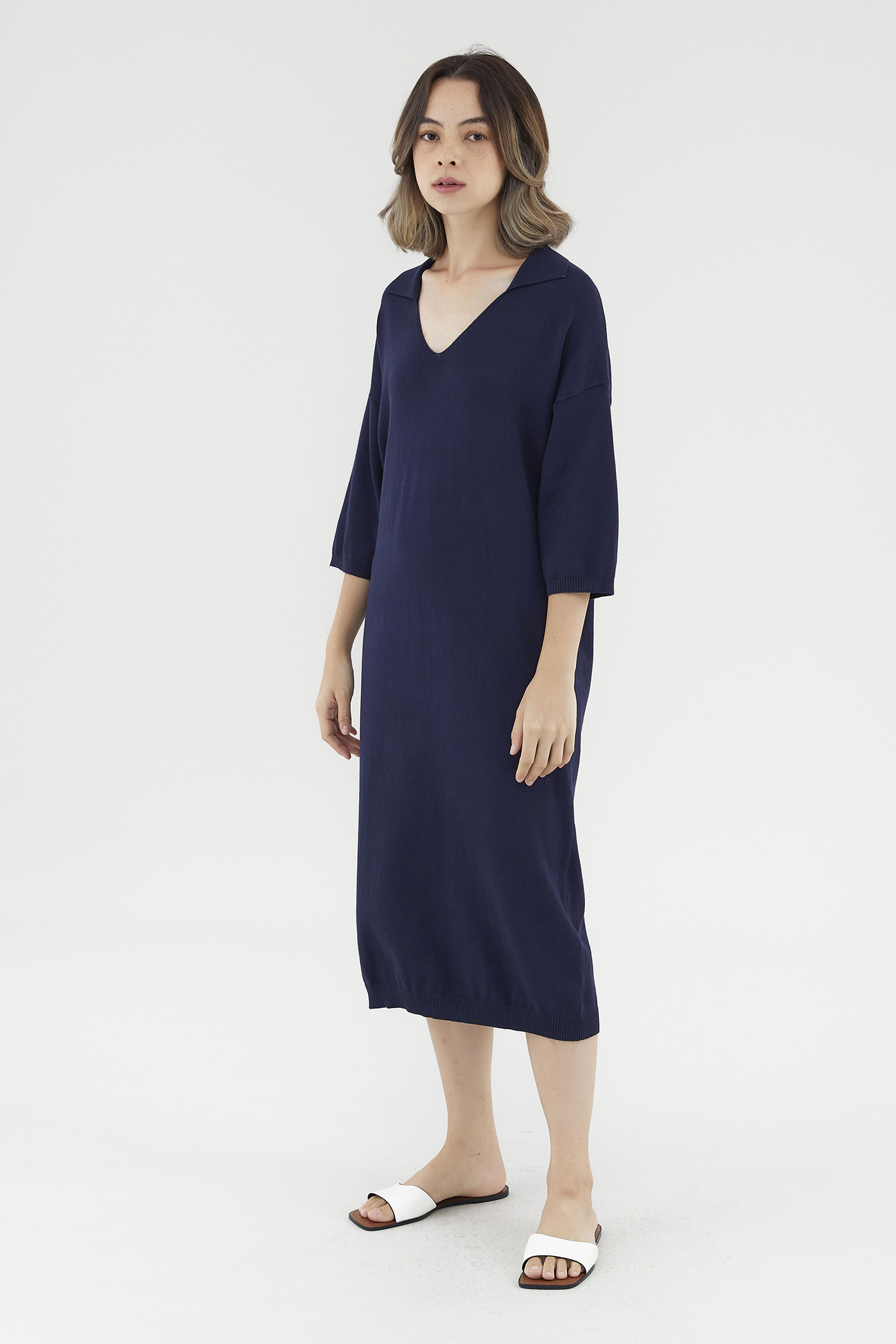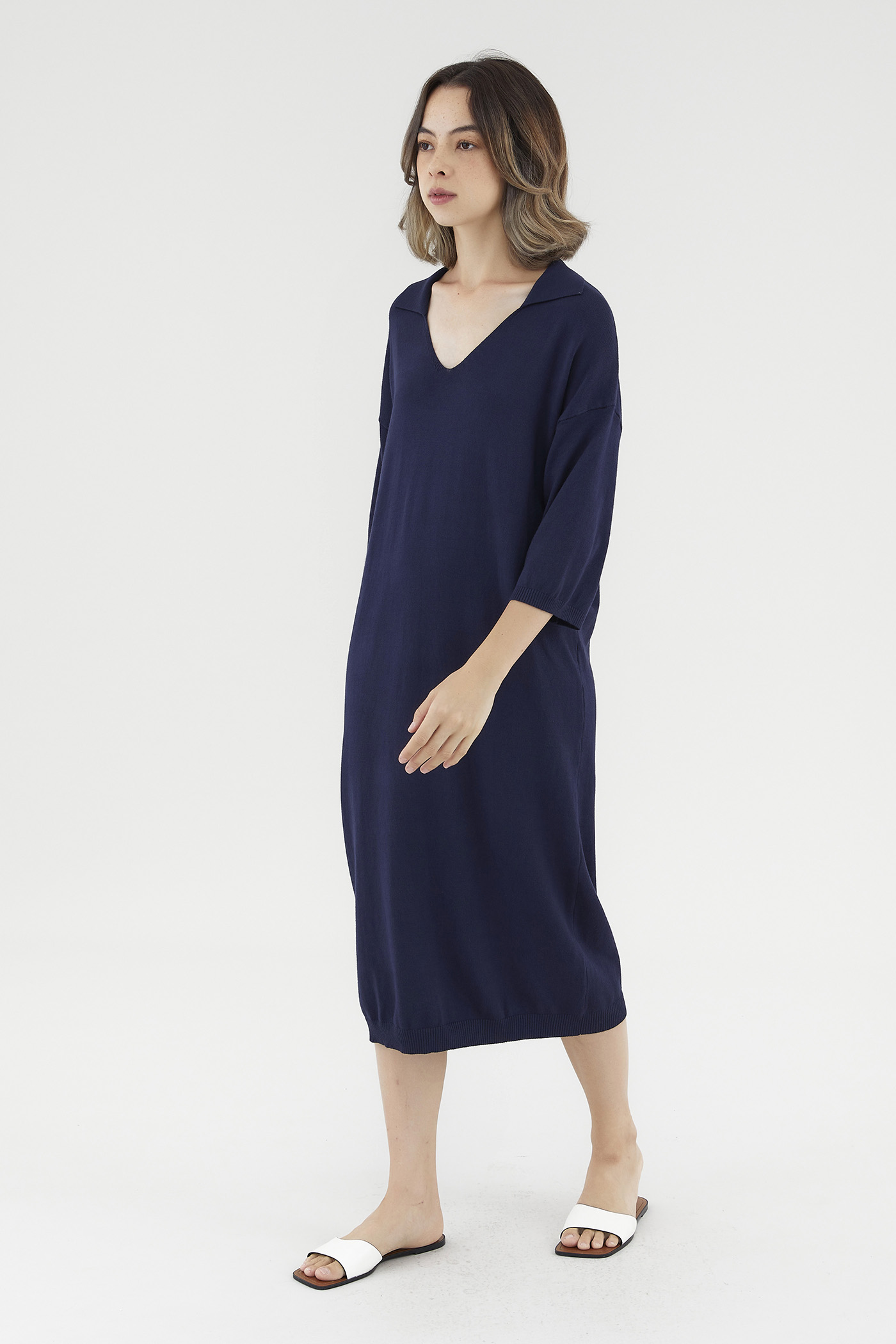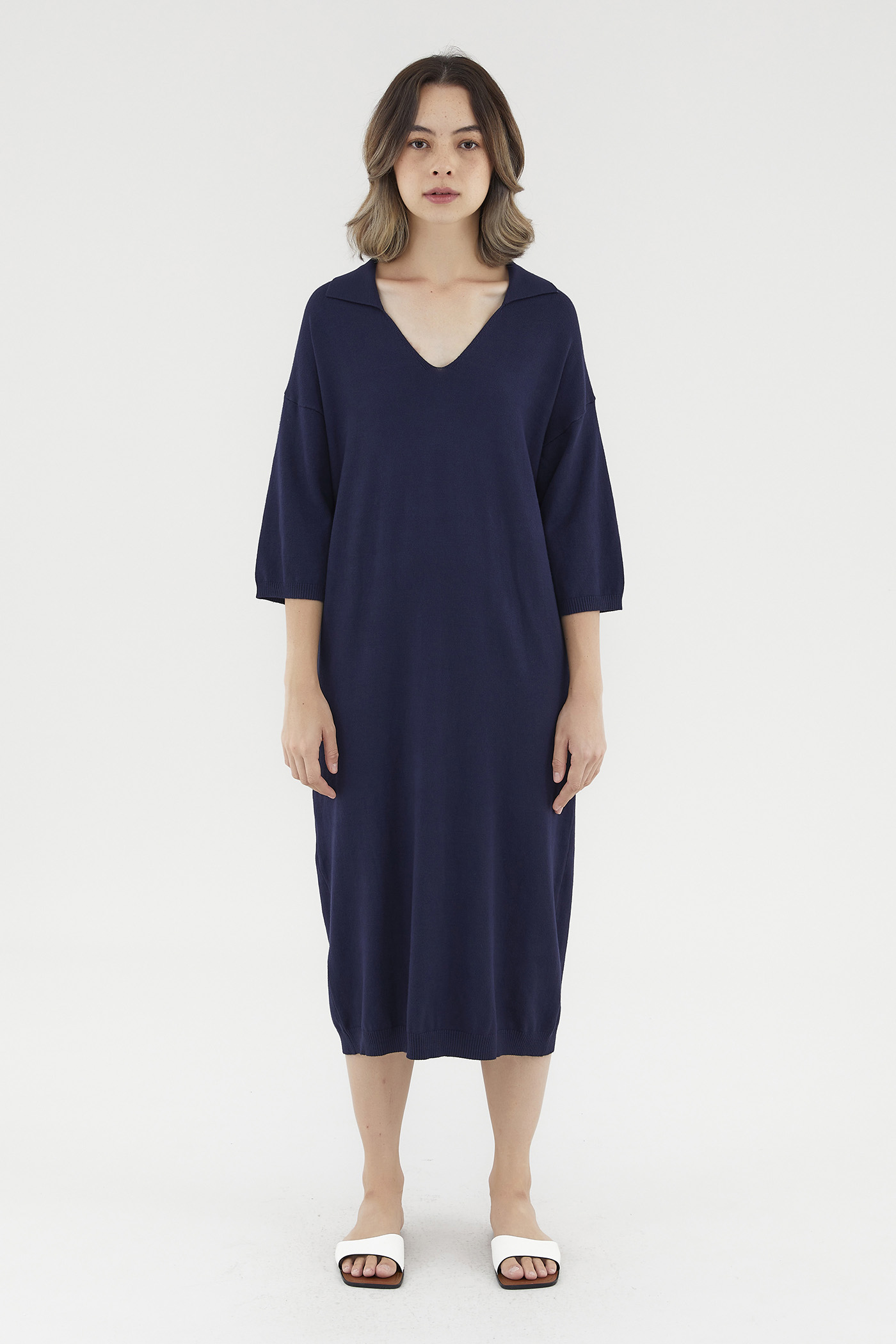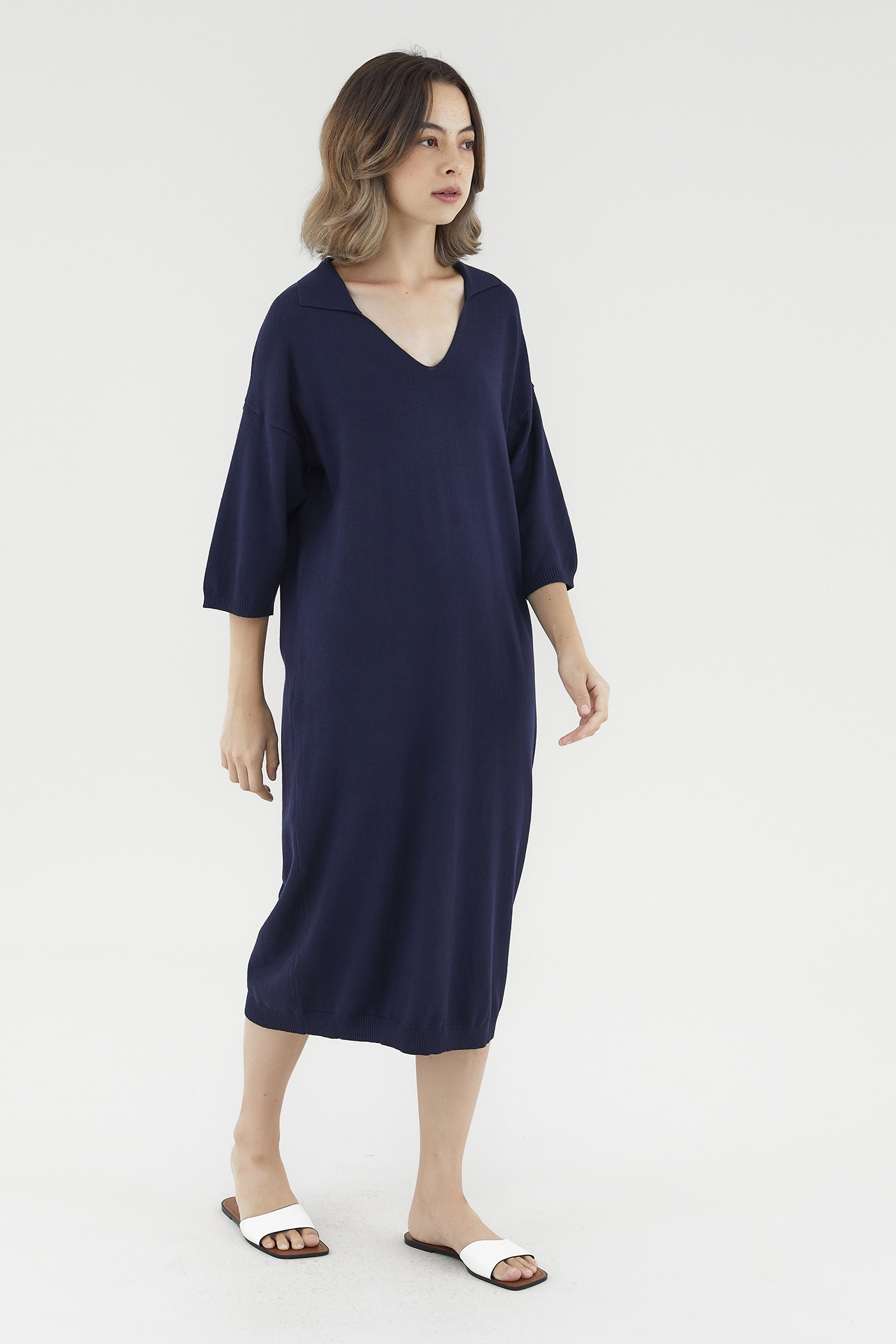 <p><span style="font-weight: 400;">Fabric Composition: 100% Viscose</span></p> <p><span style="font-weight: 400;">Lining: None</span></p> <p><span style="font-weight: 400;">Sheerness: Opaque</span></p> <p><span style="font-weight: 400;">Pockets: None</span></p> <p><span style="font-weight: 400;">Comfort first. Made from soft and stretchy knit fabric, this midi dress features half sleeves, dropped shoulders, a collared V-neckline and a ribbed hemline. Worn in a relaxed, oversized fit. </span></p> <p><span style="font-weight: 400;">Care Instructions: Do not soak / Do not bleach / Handwash or Machine wash on gentle mode / Do not machine dry / Iron using low heat</span></p>