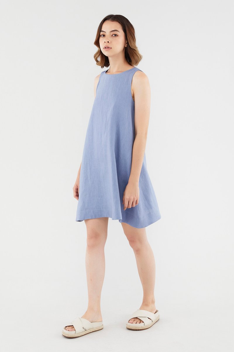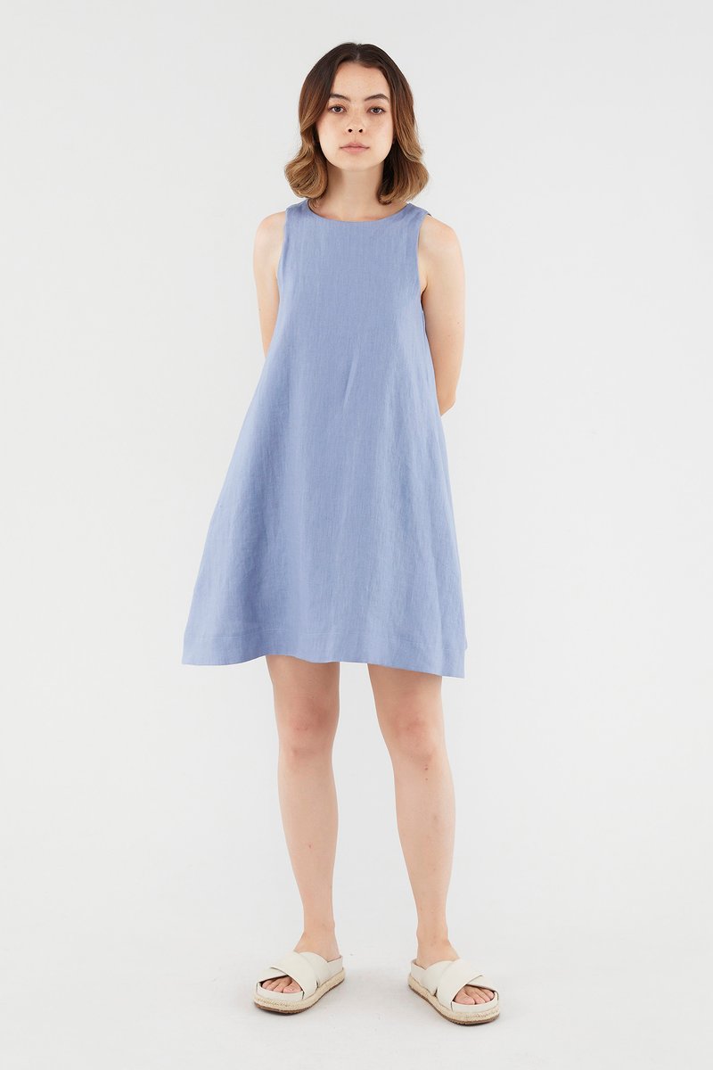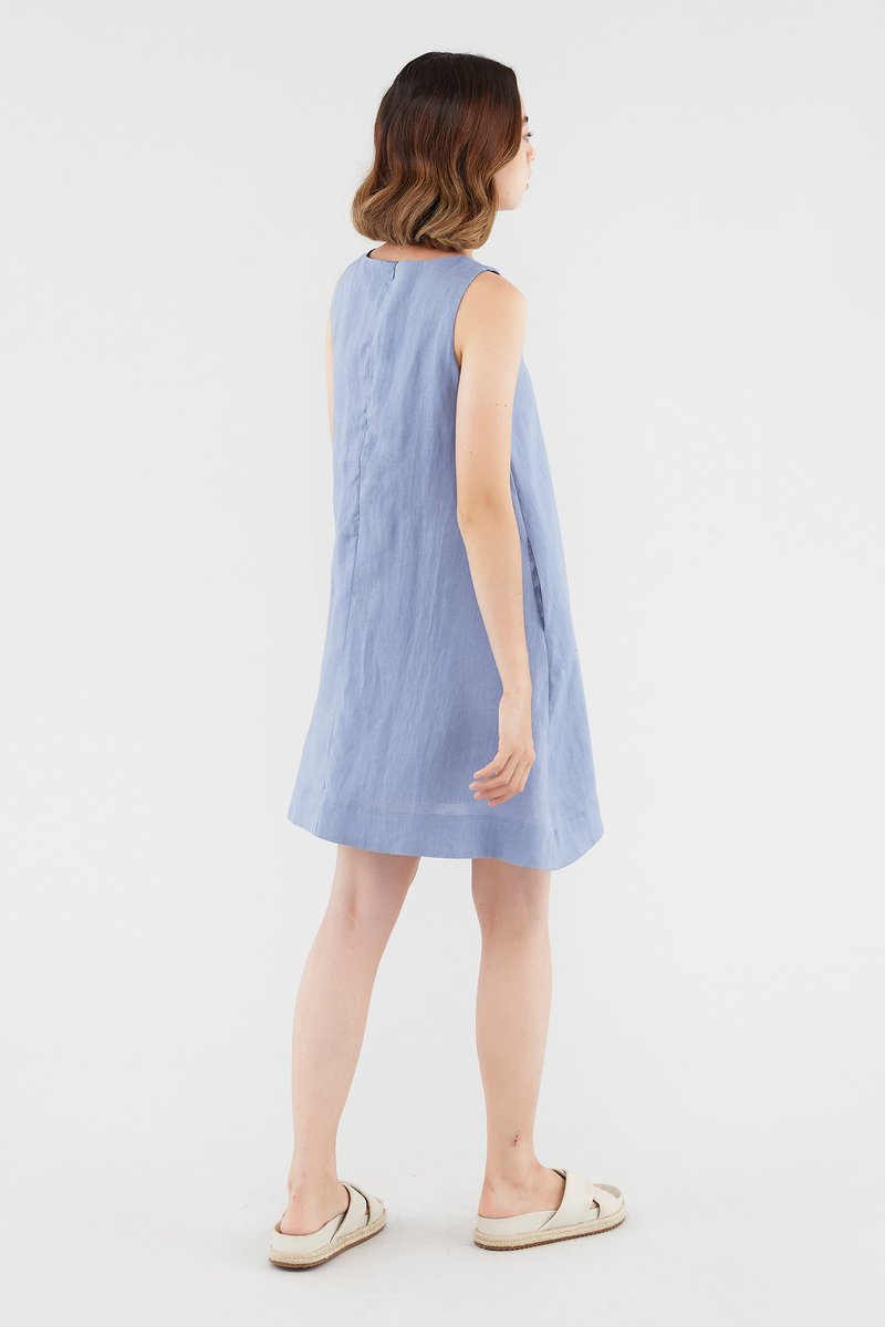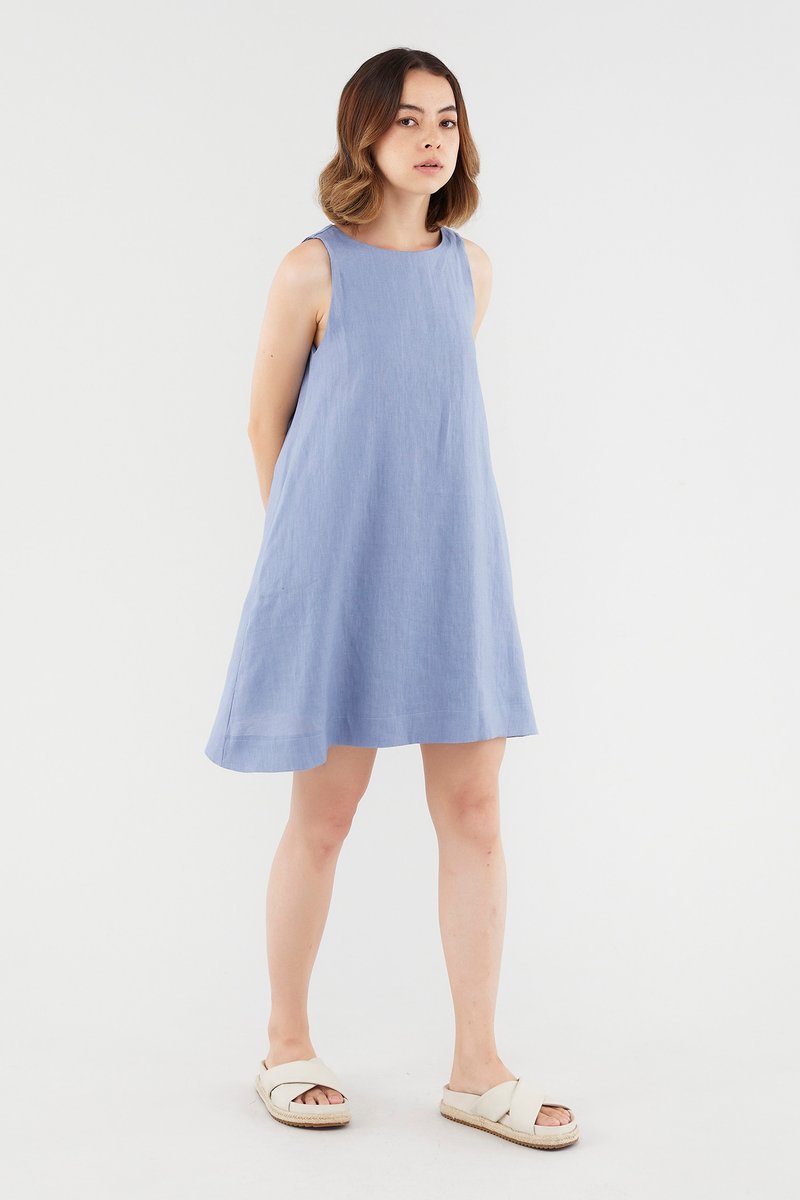 <p><span style="font-weight: 400;">Fabric composition: 100% Linen</span></p> <p><span style="font-weight: 400;">Lining: Full</span></p> <p><span style="font-weight: 400;">Sheerness: Opaque</span></p> <p><span style="font-weight: 400;">Pockets: Two pockets on the side</span></p> <p><span style="font-weight: 400;">Your Monday to Sunday dress. Cut from airy and non-stretch linen, this knee-length dress features a round neckline, dropped arm holes and subtle cut-in shoulders. Worn in a relaxed fit with a zip closure on the back.</span></p> <p><i><span style="font-weight: 400;">This piece is made from 100% linen, the unsung hero of hot days and one of the least environmentally damaging fabrics. Derived from the unfussy flax plant, not only does its cultivation consume significantly less water, pesticides and arable land — but linen’s excellent durability and biodegradable nature also means your clothes have a longer, more waste-free life cycle.</span></i></p> <p><span style="font-weight: 400;">Care Instructions: Do not soak / Do not bleach / Handwash or Machine wash on gentle mode / Do not machine dry / Iron using low heat</span></p>