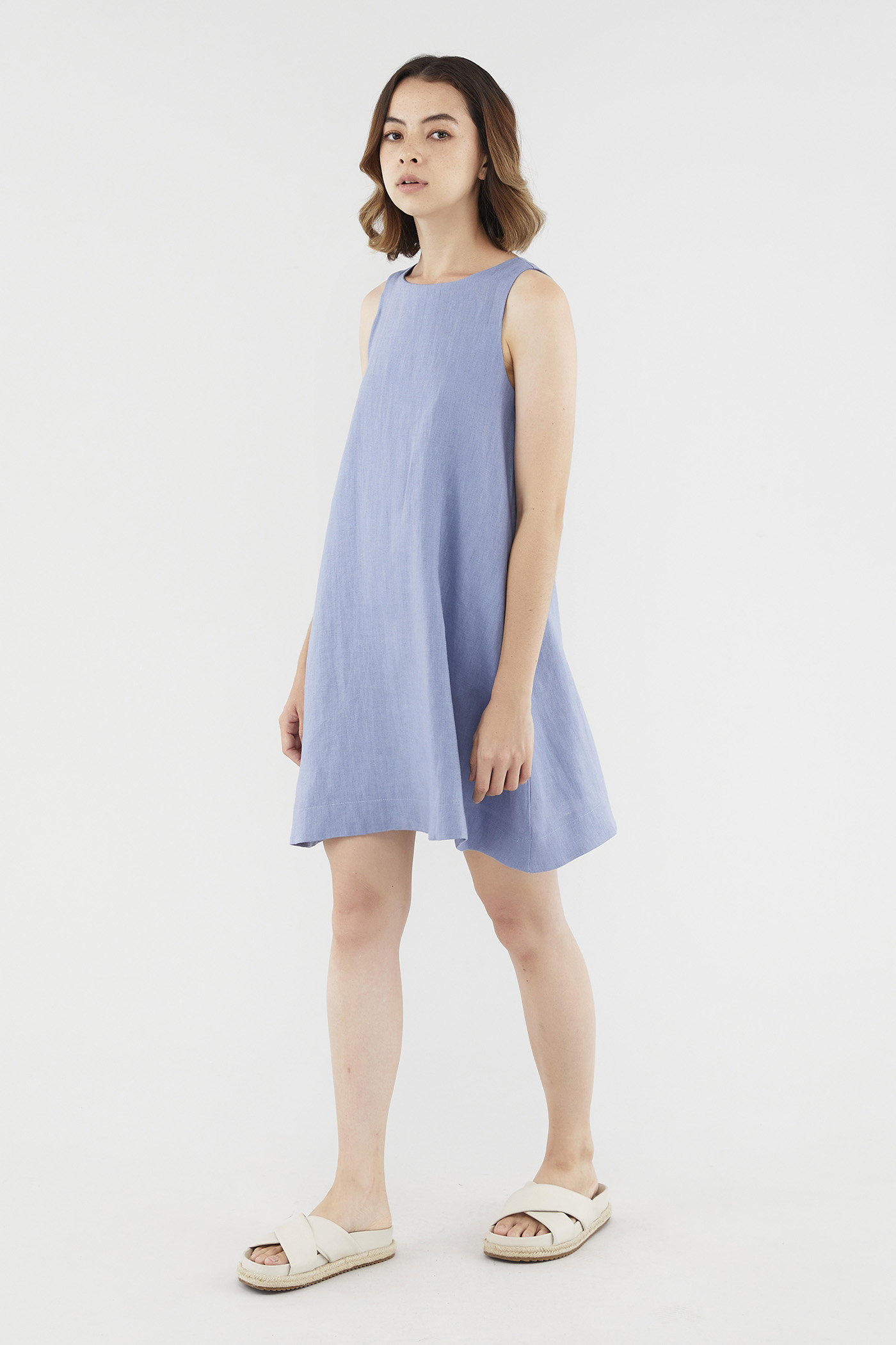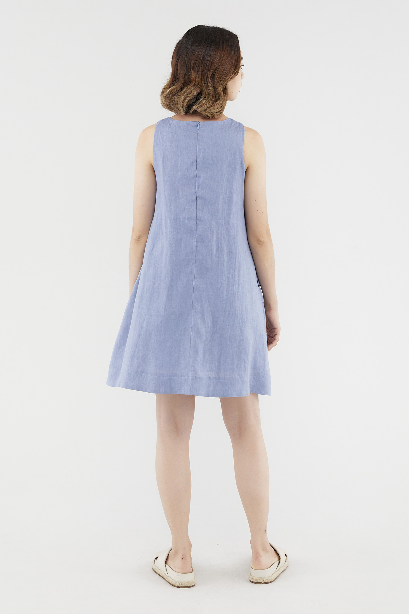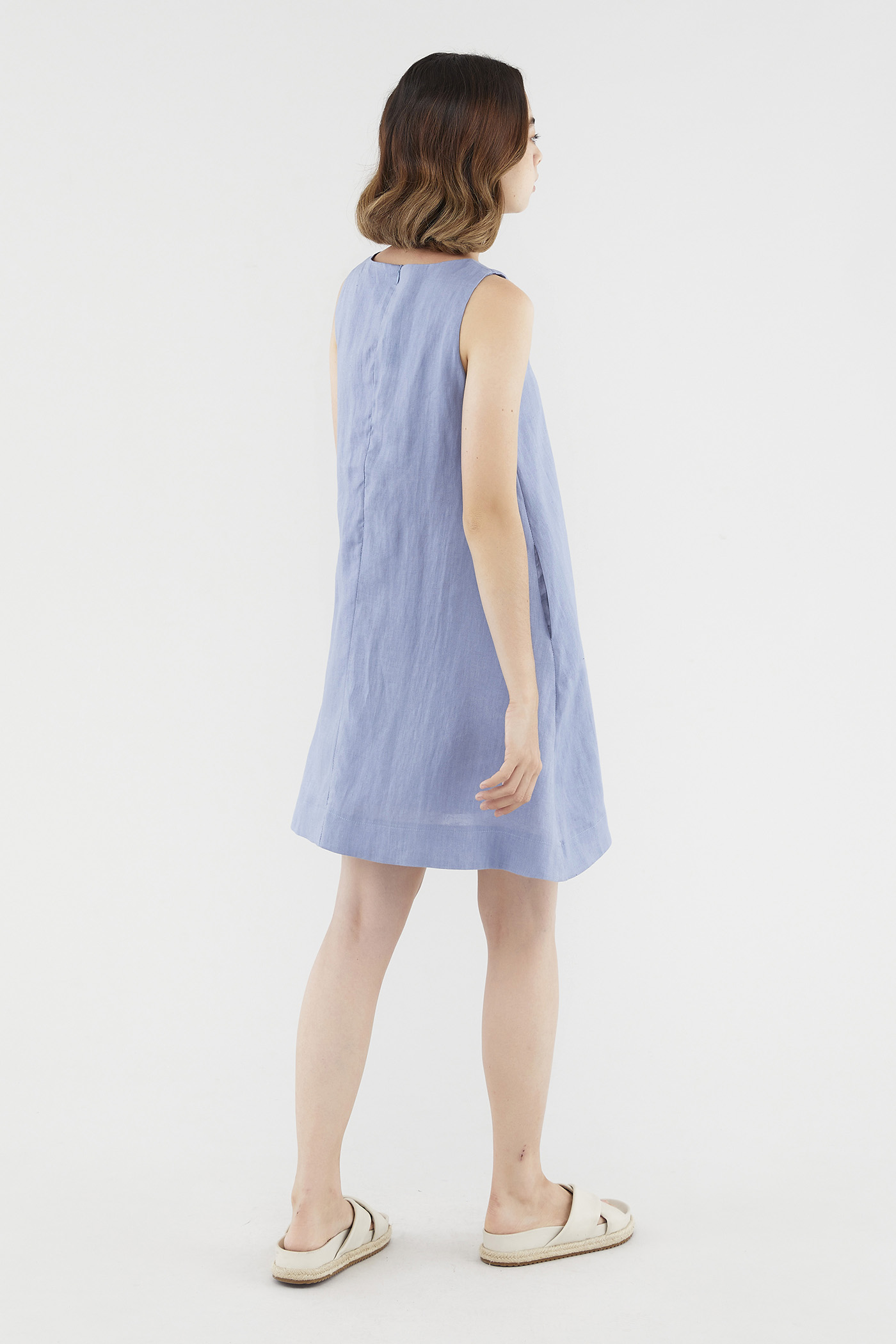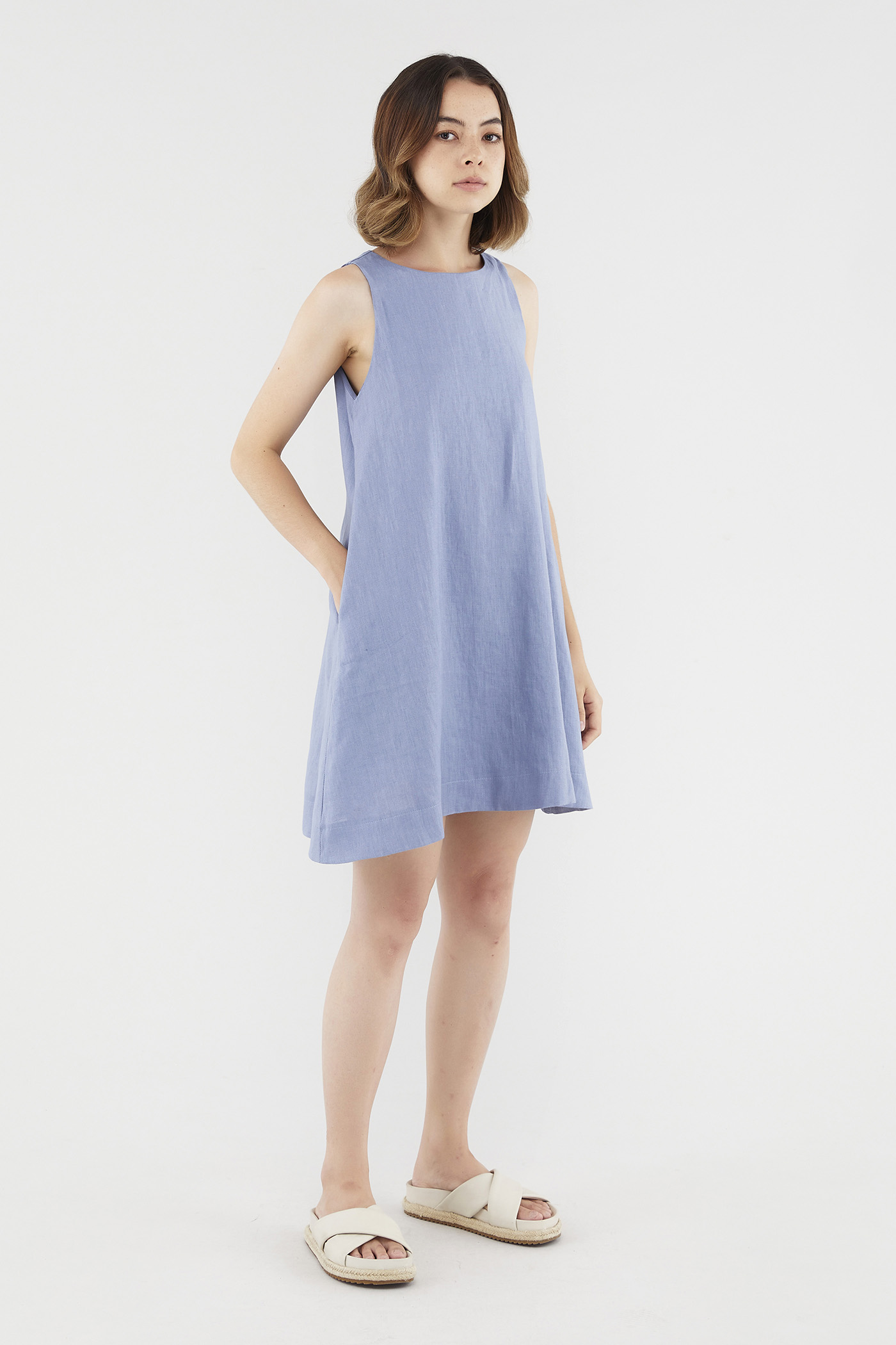 <p><span style="font-weight: 400;">Fabric composition: 100% Linen</span></p> <p><span style="font-weight: 400;">Lining: Full</span></p> <p><span style="font-weight: 400;">Sheerness: Opaque</span></p> <p><span style="font-weight: 400;">Pockets: Two pockets on the side</span></p> <p><span style="font-weight: 400;">Your Monday to Sunday dress. Cut from airy and non-stretch linen, this knee-length dress features a round neckline, dropped arm holes and subtle cut-in shoulders. Worn in a relaxed fit with a zip closure on the back.</span></p> <p><i><span style="font-weight: 400;">This piece is made from 100% linen, the unsung hero of hot days and one of the least environmentally damaging fabrics. Derived from the unfussy flax plant, not only does its cultivation consume significantly less water, pesticides and arable land — but linen’s excellent durability and biodegradable nature also means your clothes have a longer, more waste-free life cycle.</span></i></p> <p><span style="font-weight: 400;">Care Instructions: Do not soak / Do not bleach / Handwash or Machine wash on gentle mode / Do not machine dry / Iron using low heat</span></p>